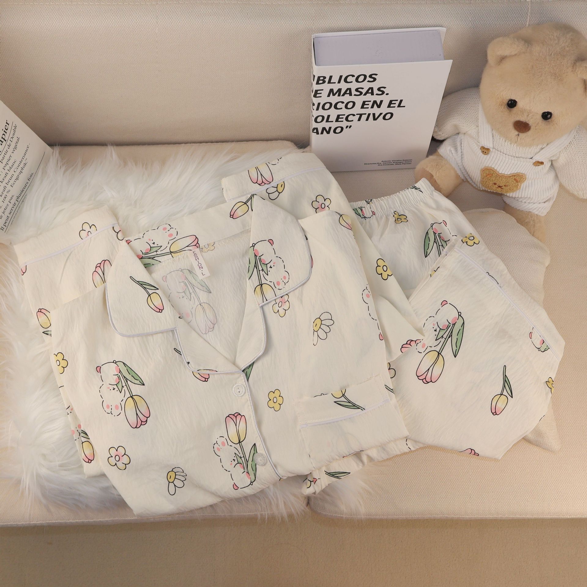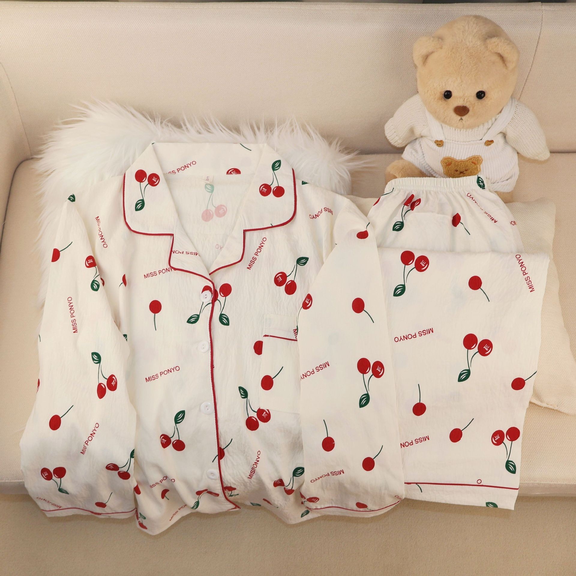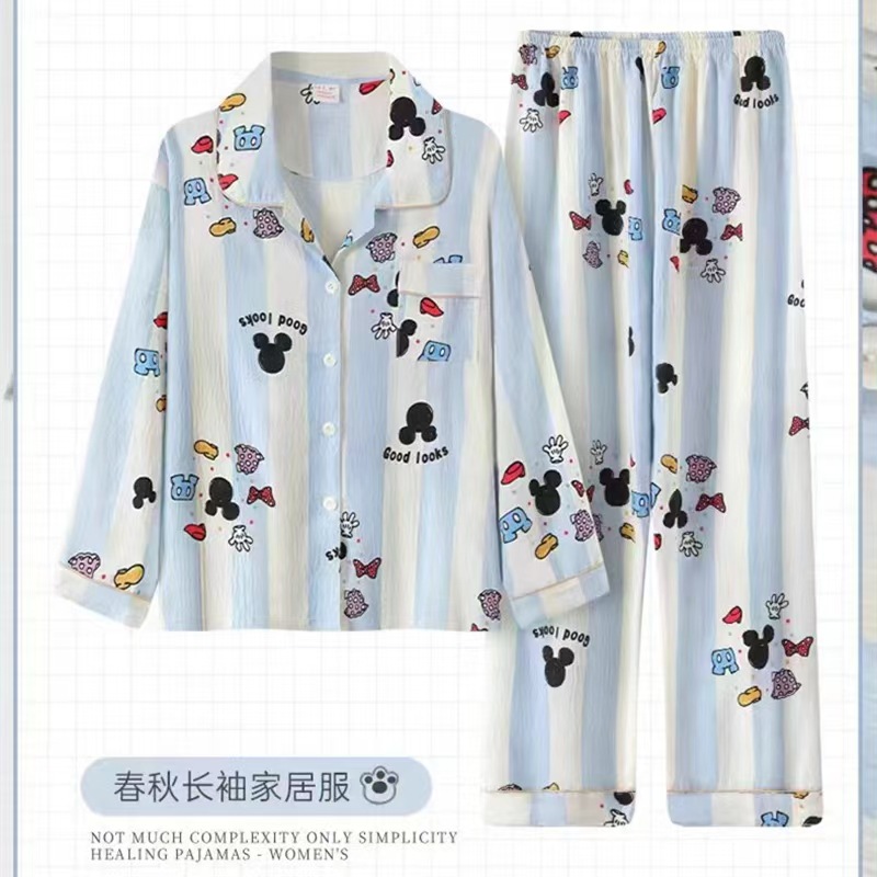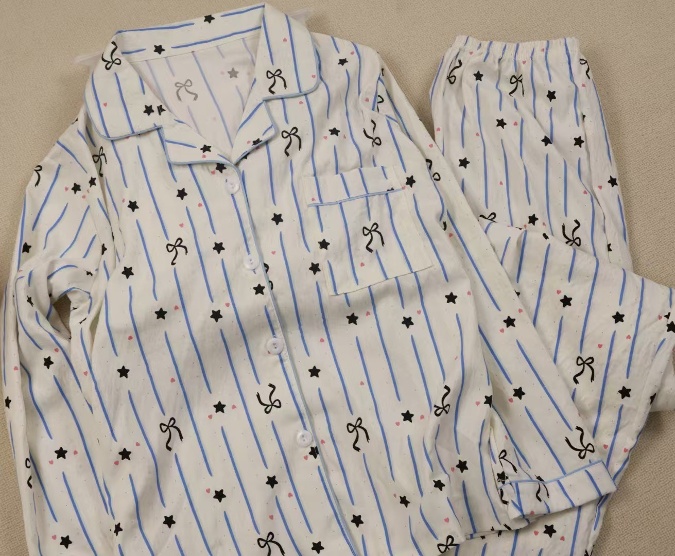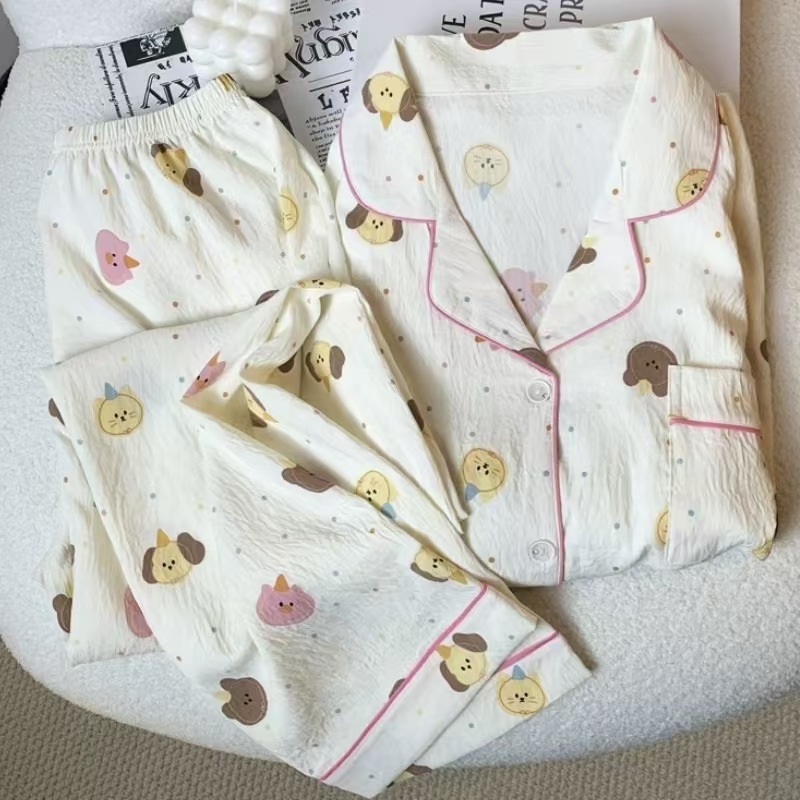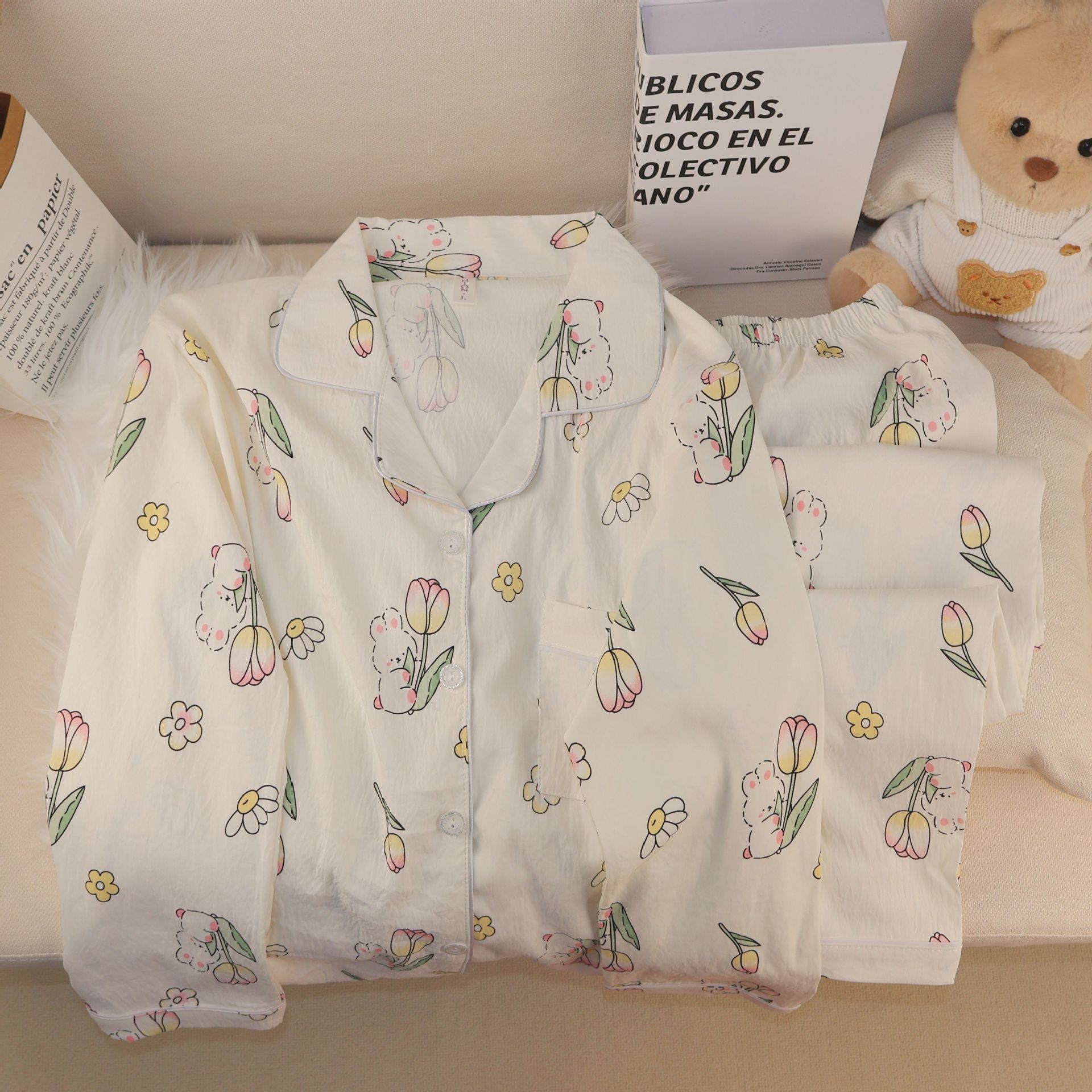 여성용 잠옷 2025 신상 구름무늬 봄 가을 긴팔 만화 캐릭터 귀여운 캐주얼 심플 홈웨어 세트