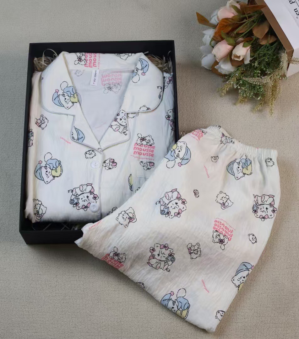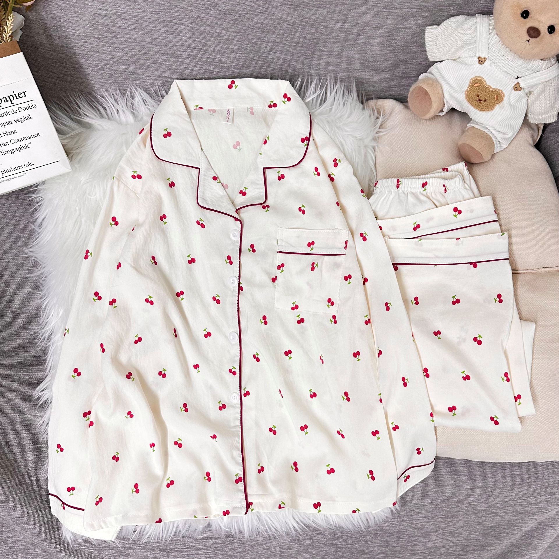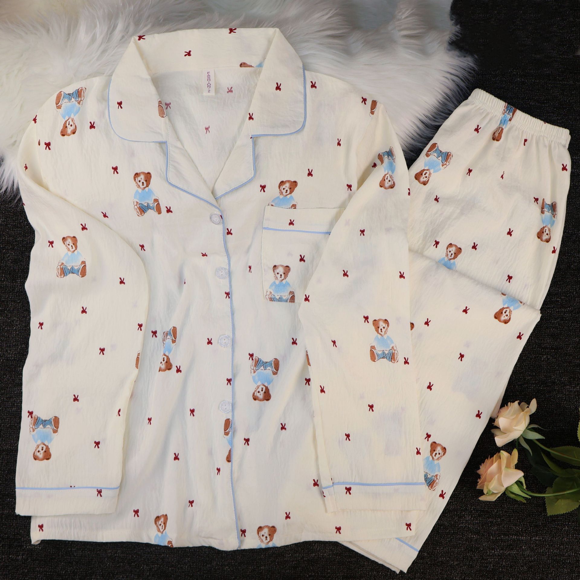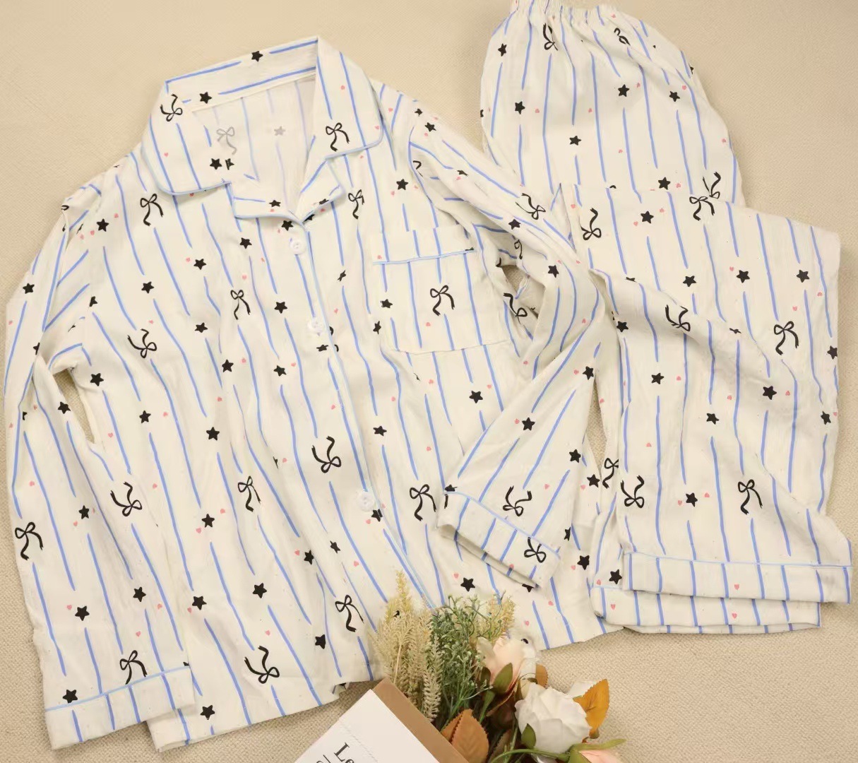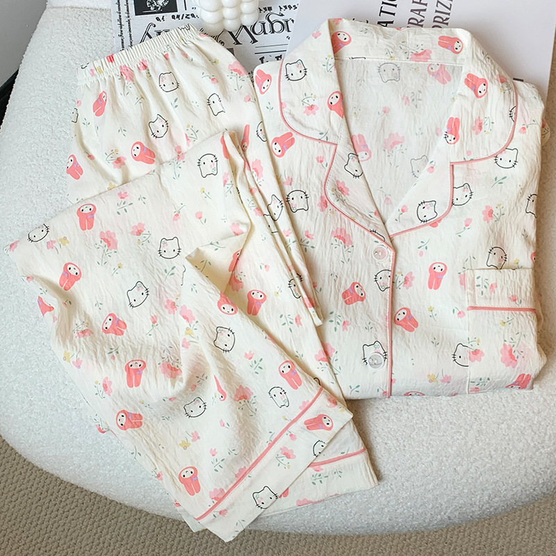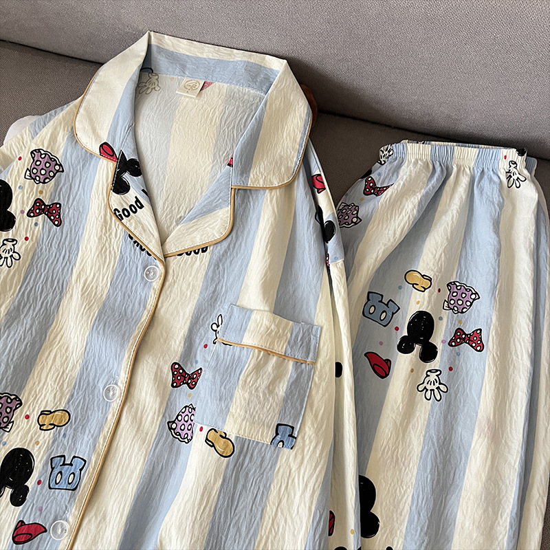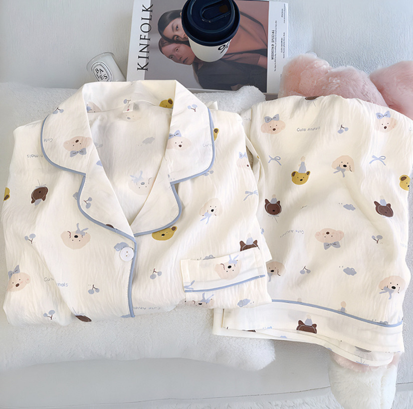 여성용 잠옷 2025 신상 구름무늬 봄 가을 긴팔 만화 캐릭터 귀여운 캐주얼 심플 홈웨어 세트