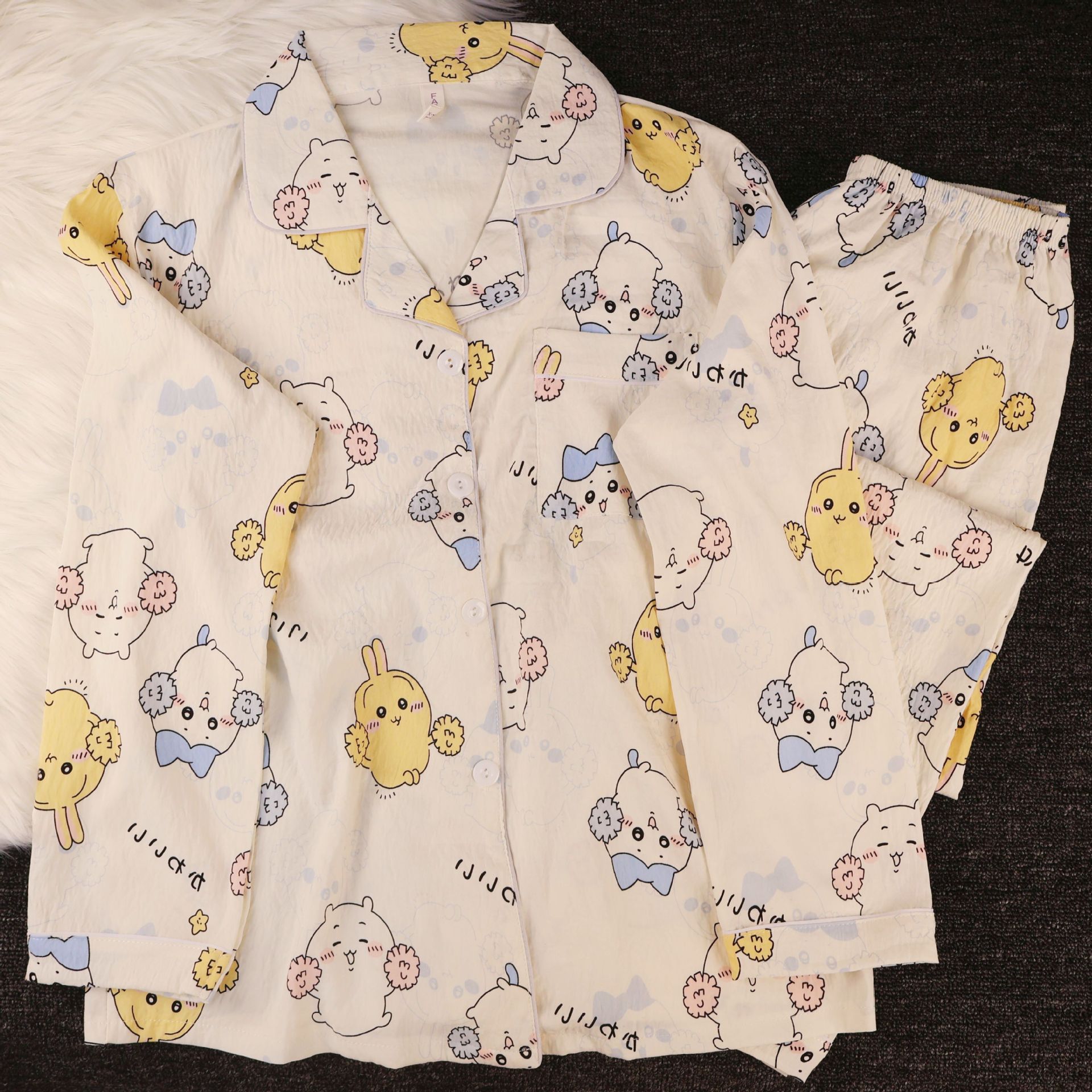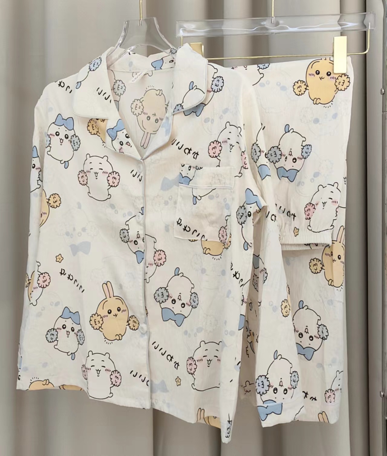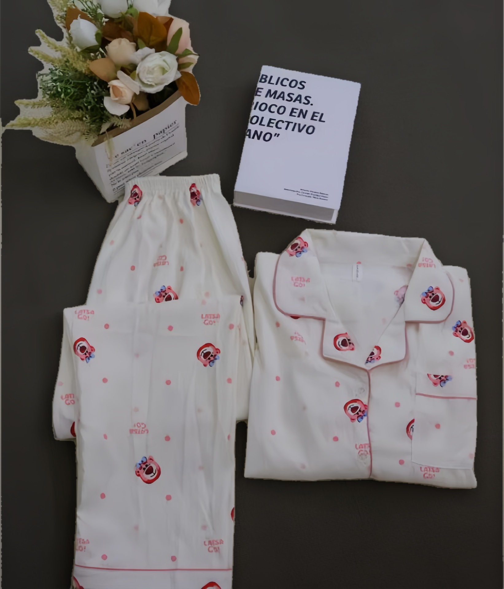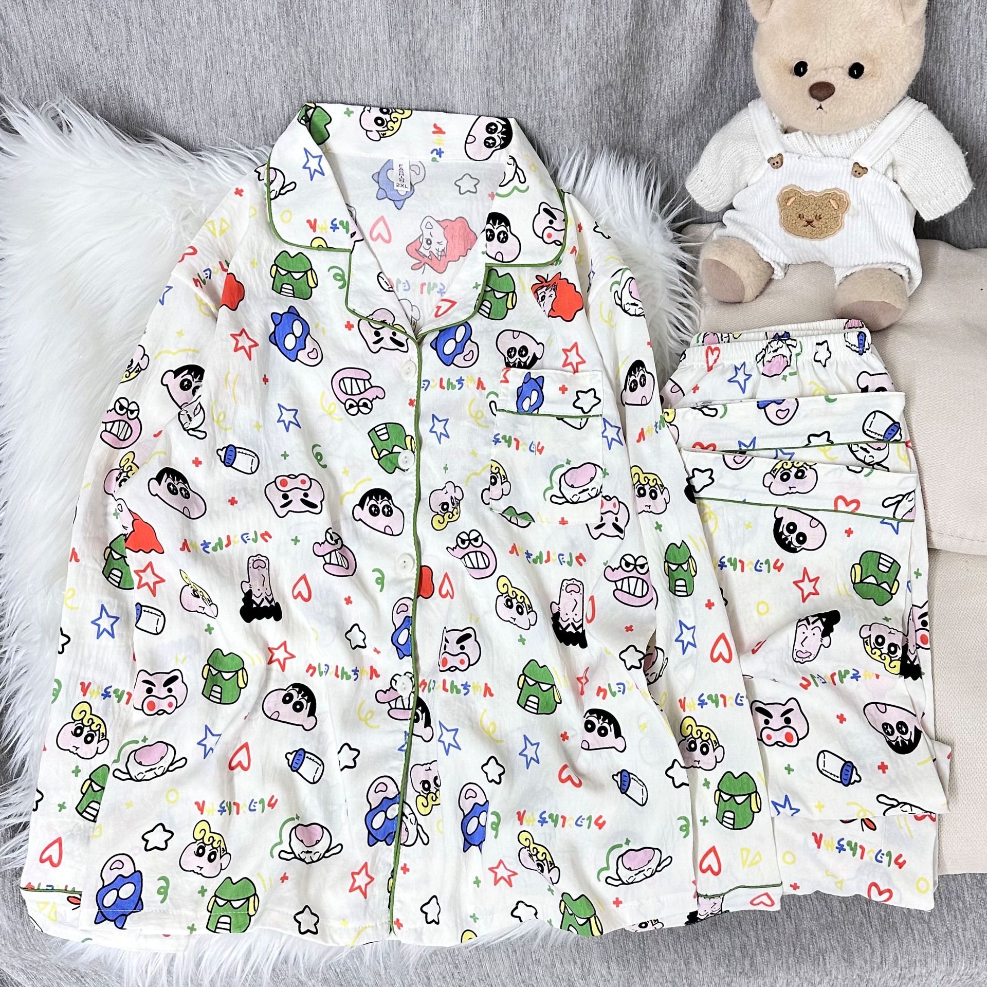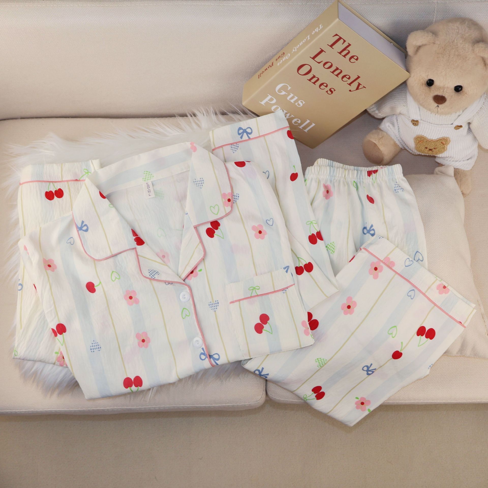 여성용 잠옷 2025 신상 구름무늬 봄 가을 긴팔 만화 캐릭터 귀여운 캐주얼 심플 홈웨어 세트