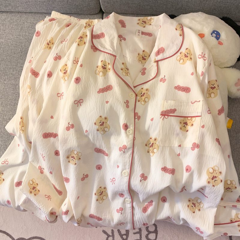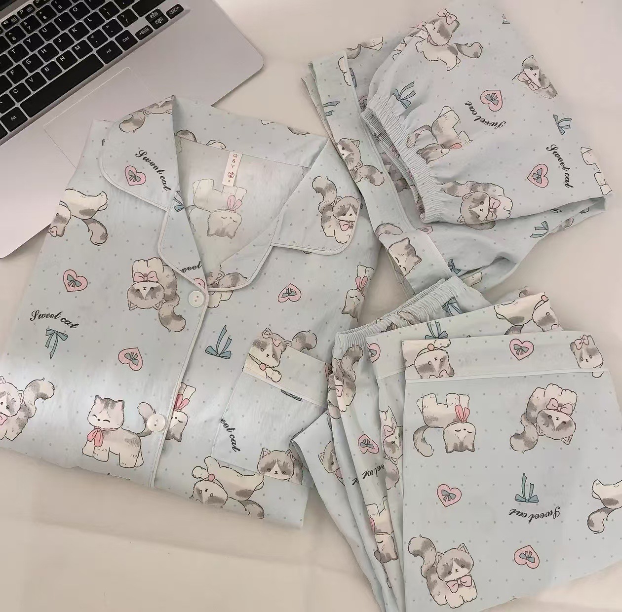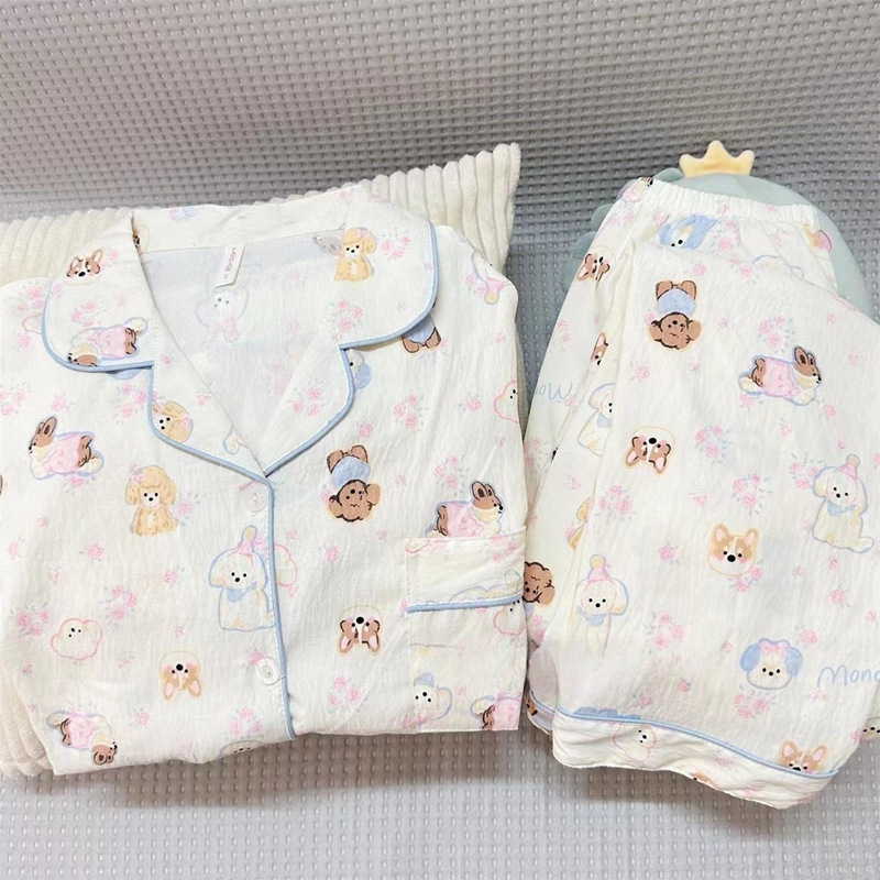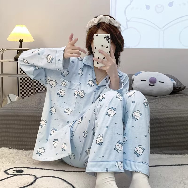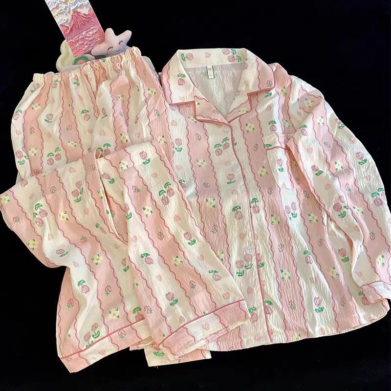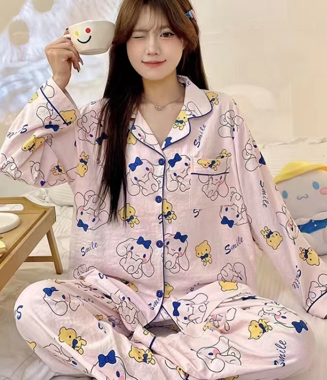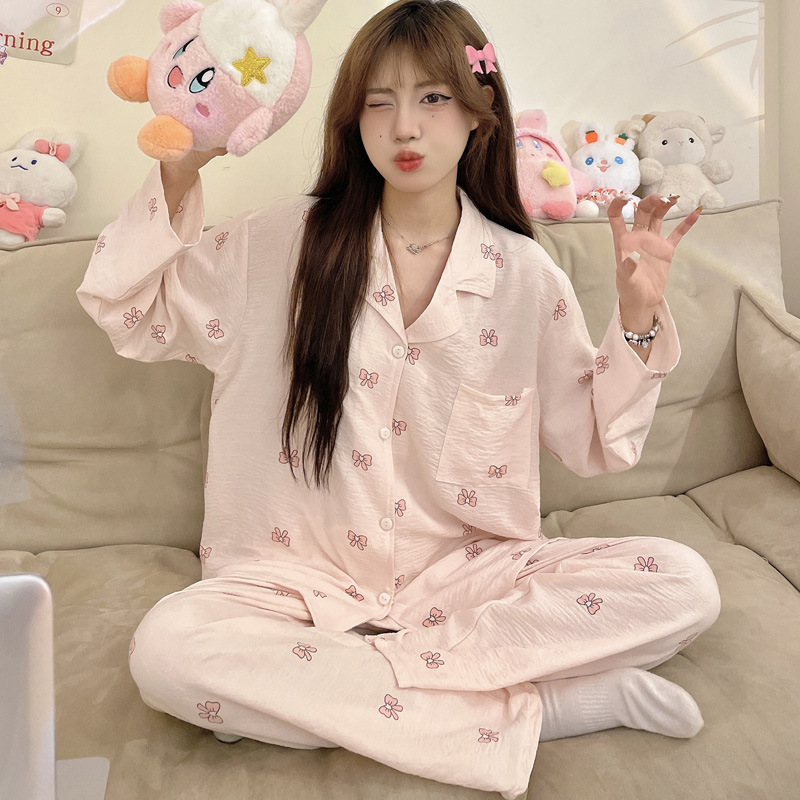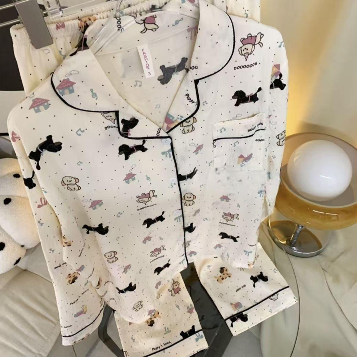 여성용 잠옷 2025 신상 구름무늬 봄 가을 긴팔 만화 캐릭터 귀여운 캐주얼 심플 홈웨어 세트스토어 가기