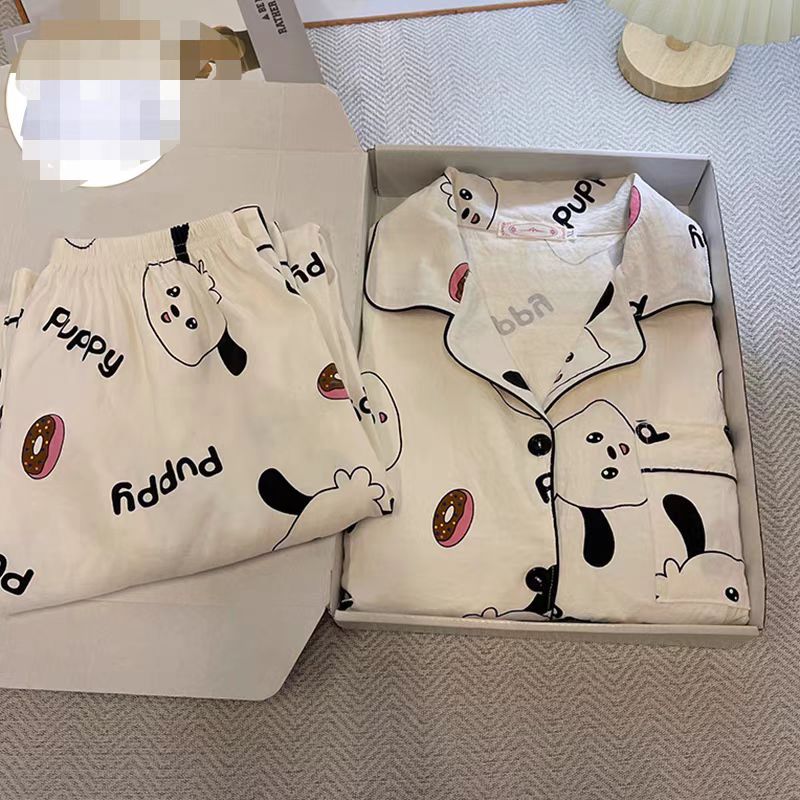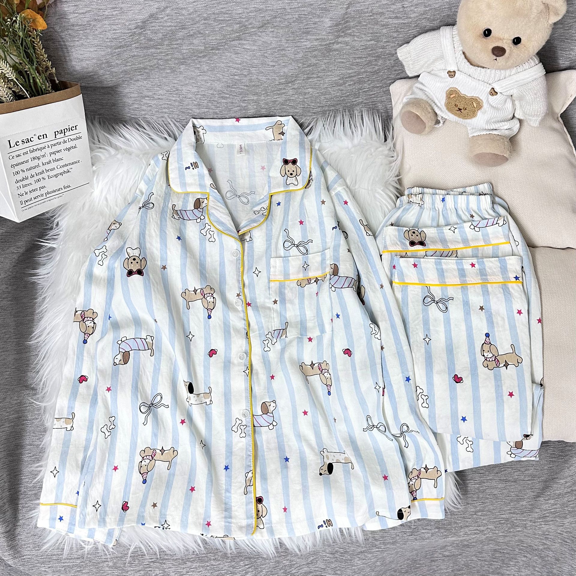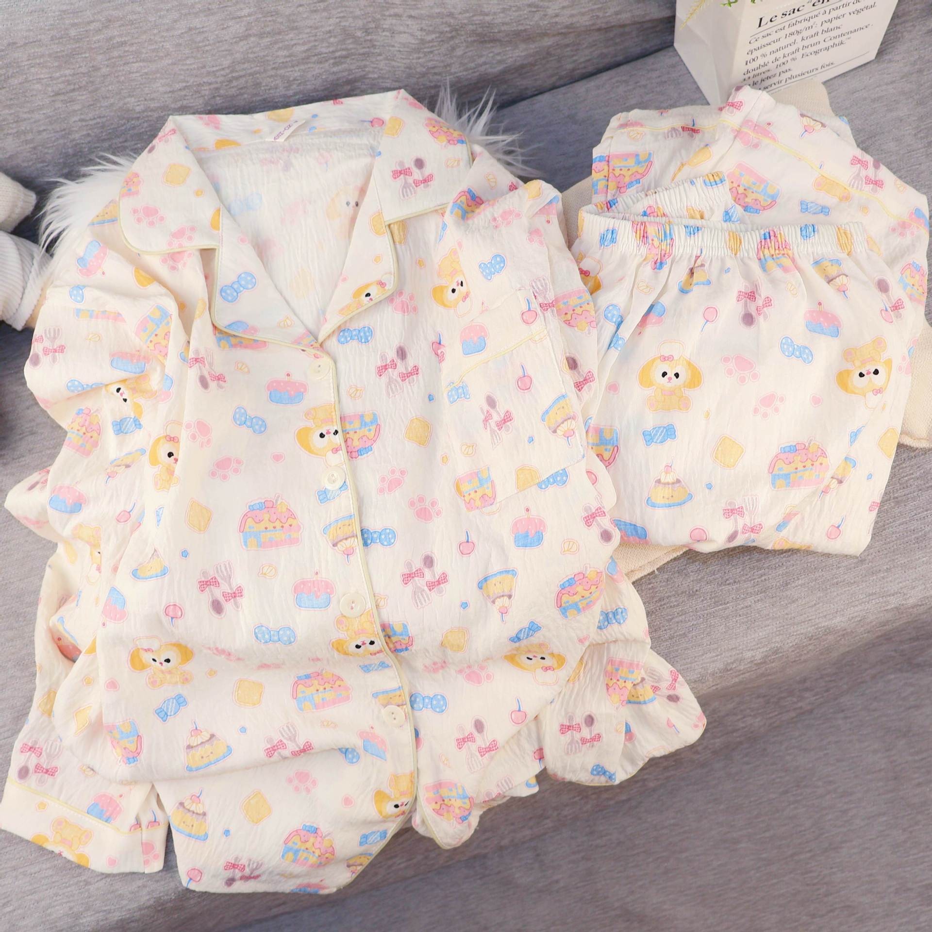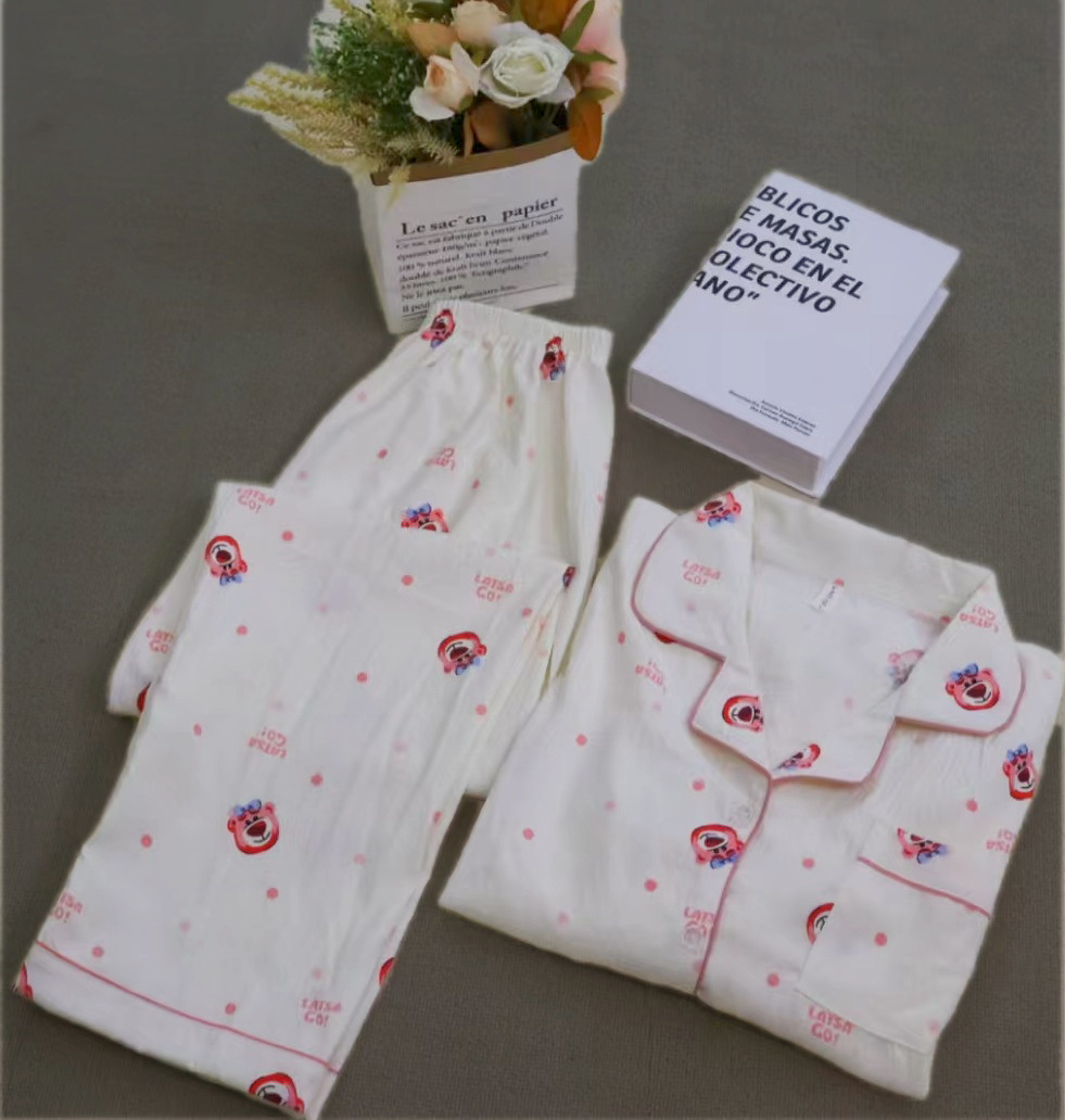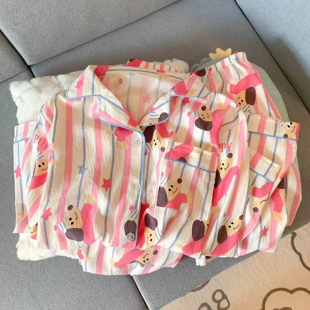 여성용 잠옷 2025 신상 구름무늬 봄 가을 긴팔 만화 캐릭터 귀여운 캐주얼 심플 홈웨어 세트스토어 가기