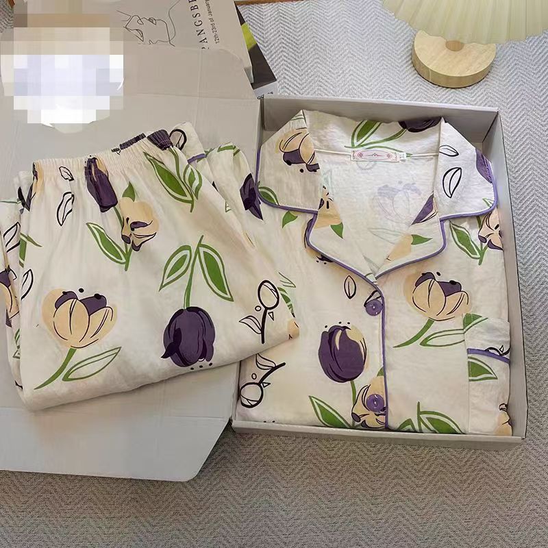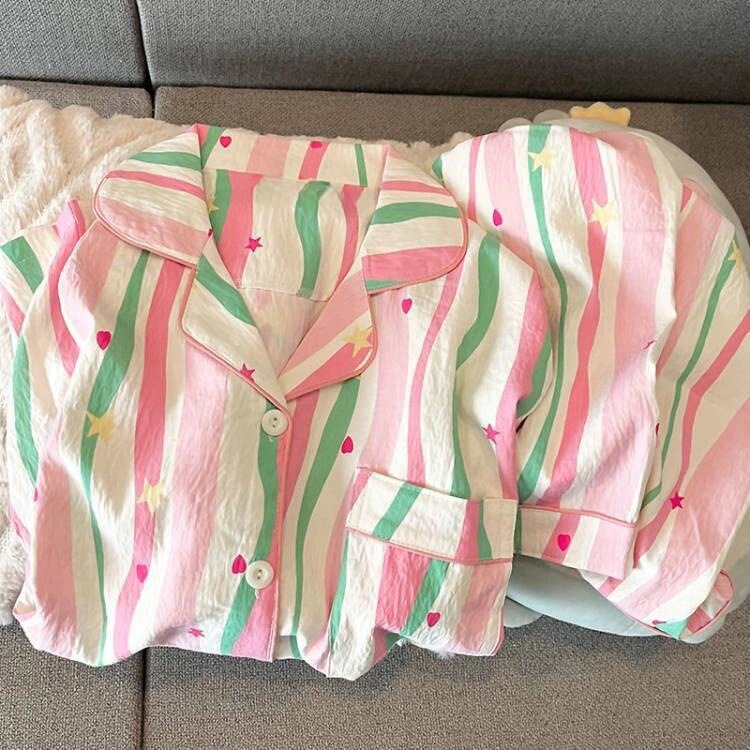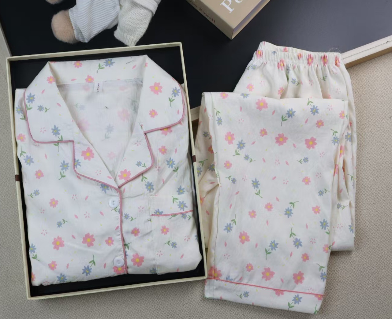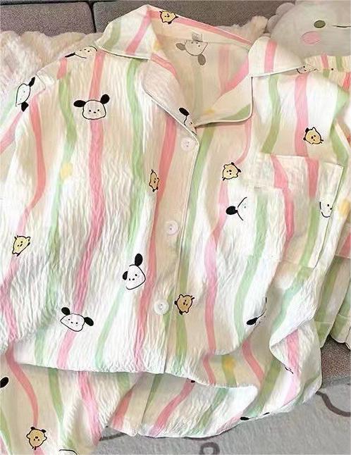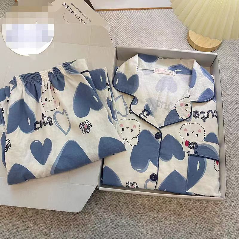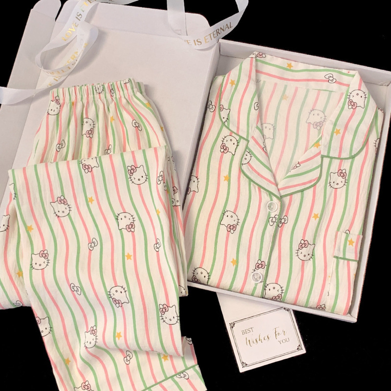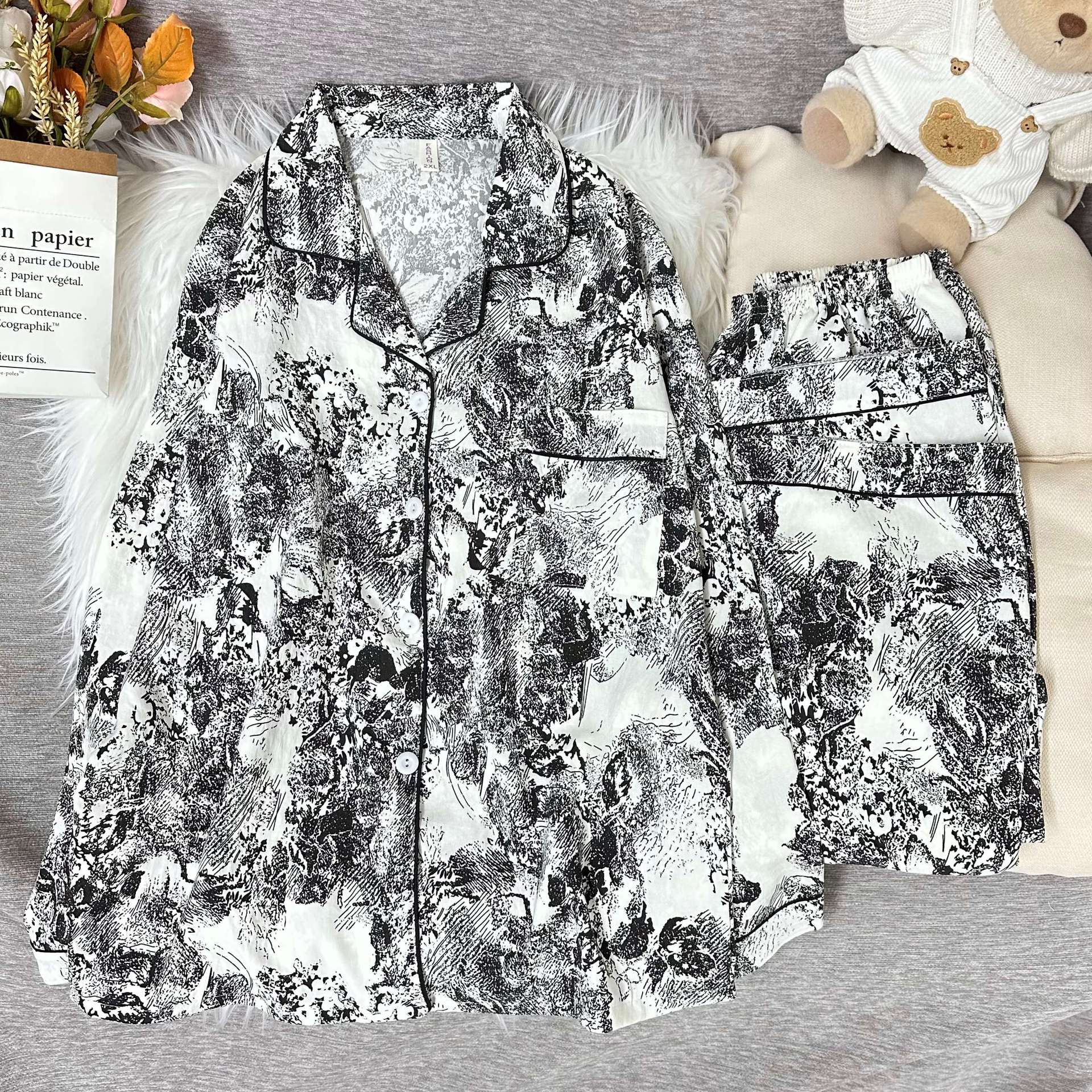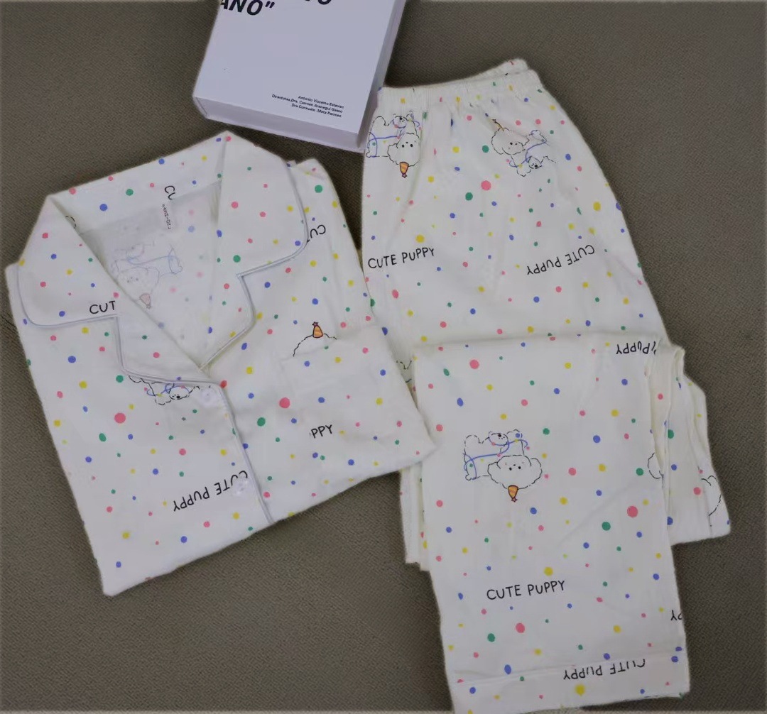 여성용 잠옷 2025 신상 구름무늬 봄 가을 긴팔 만화 캐릭터 귀여운 캐주얼 심플 홈웨어 세트스토어 가기