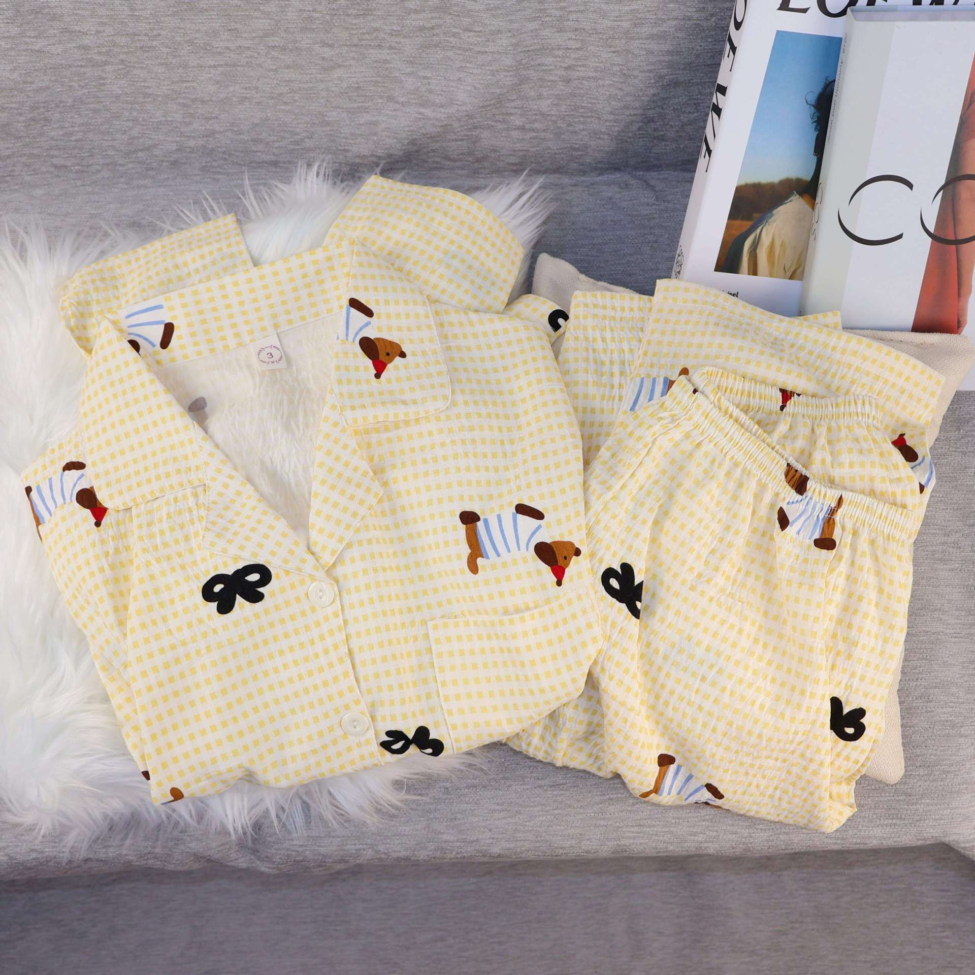 • Yunduo 면 노란색과 흰색 체크 무늬 닥스훈트 더블 길이