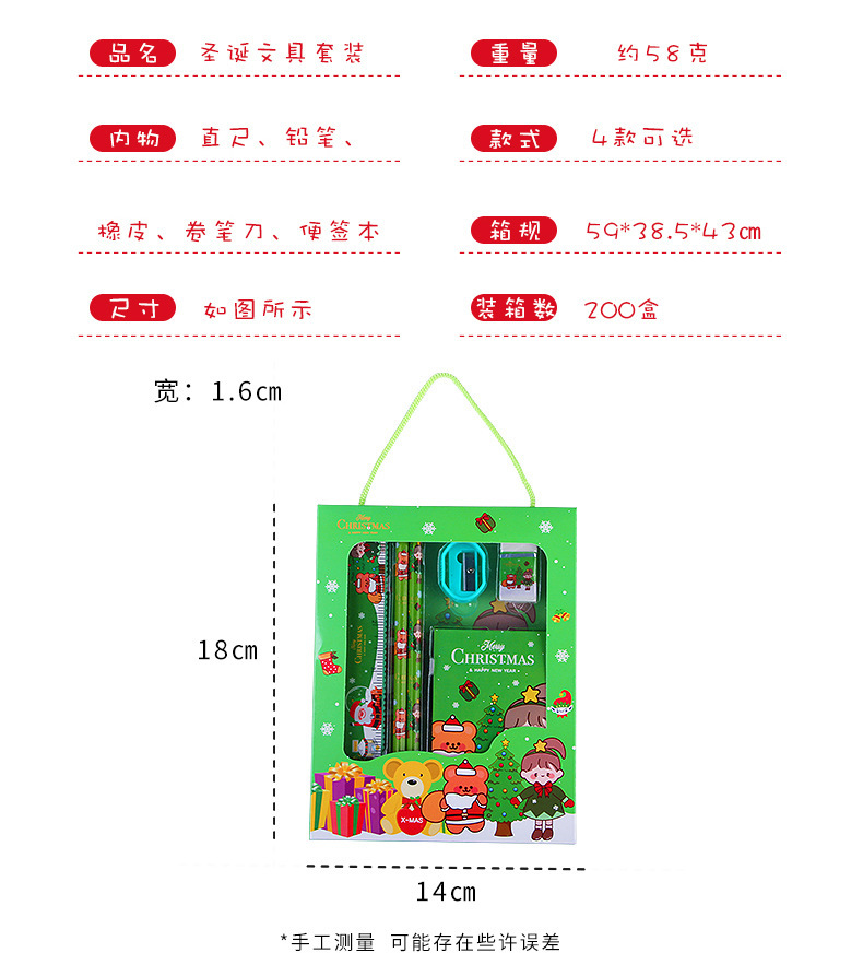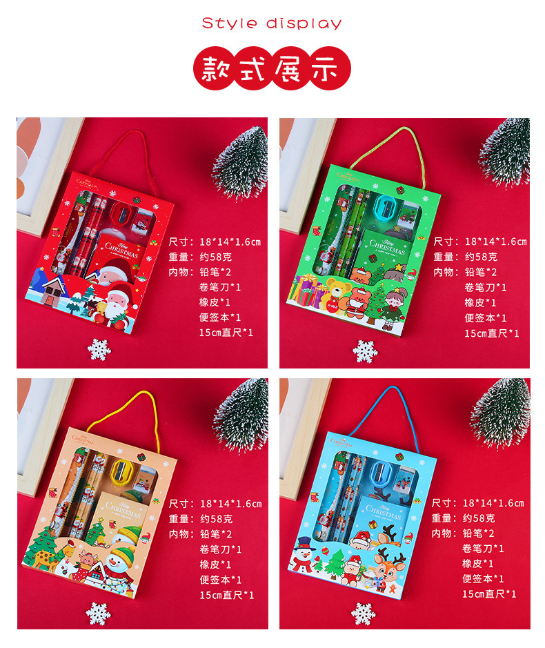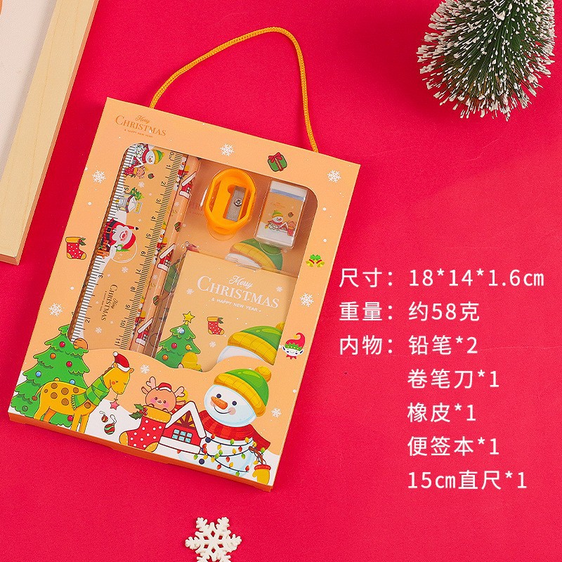 창조적 인 크리스마스 휴대용 문구 세트 남학생과 여학생 학교 용품 문구 상자 초등학생 작은 선물 6 피스 세트