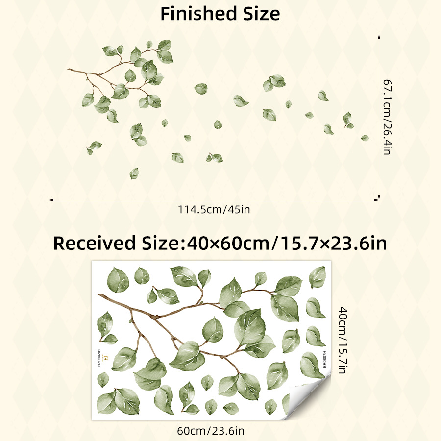 신선한 녹색 잎 가지 자체 접착 벽 스티커 간단한 스타일 방 배경 벽 홈 장식 스티커 BR0807H스토어 가기