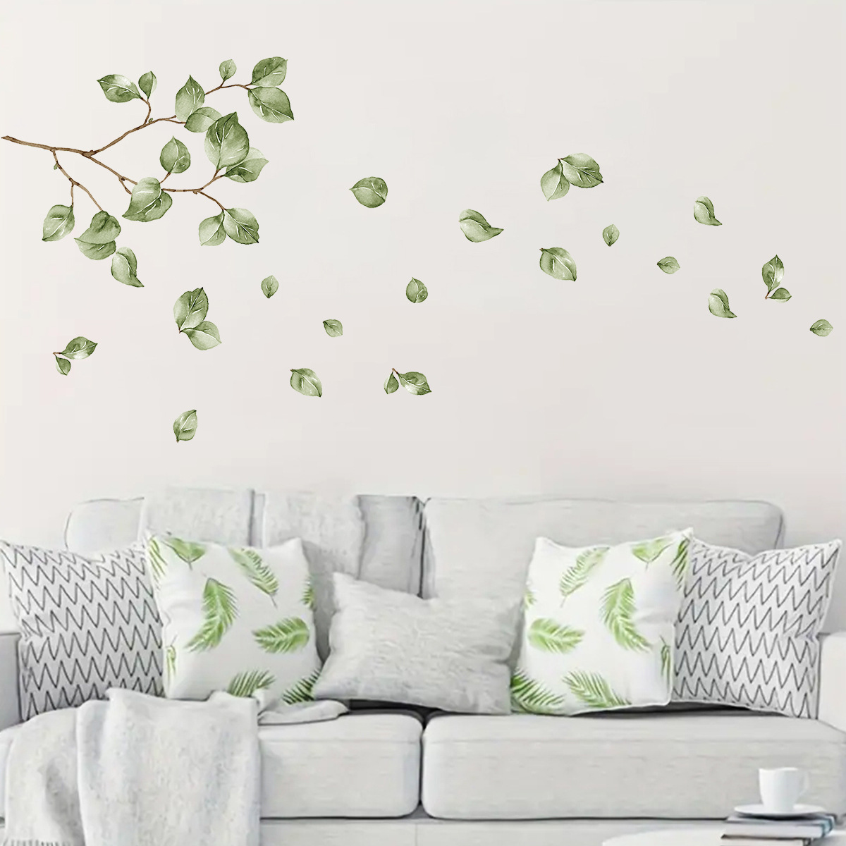 신선한 녹색 잎 가지 자체 접착 벽 스티커 간단한 스타일 방 배경 벽 홈 장식 스티커 BR0807H