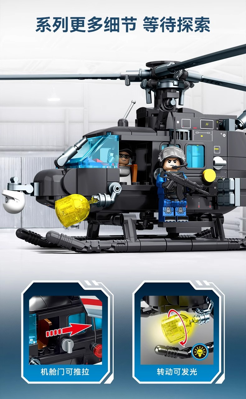 센바오 빌딩 블록 블랙 호크 액션 다람쥐 헬리콥터 무장 폭발 방지 차량 퍼즐 빌딩 블록 조립 군용 장난감스토어 가기