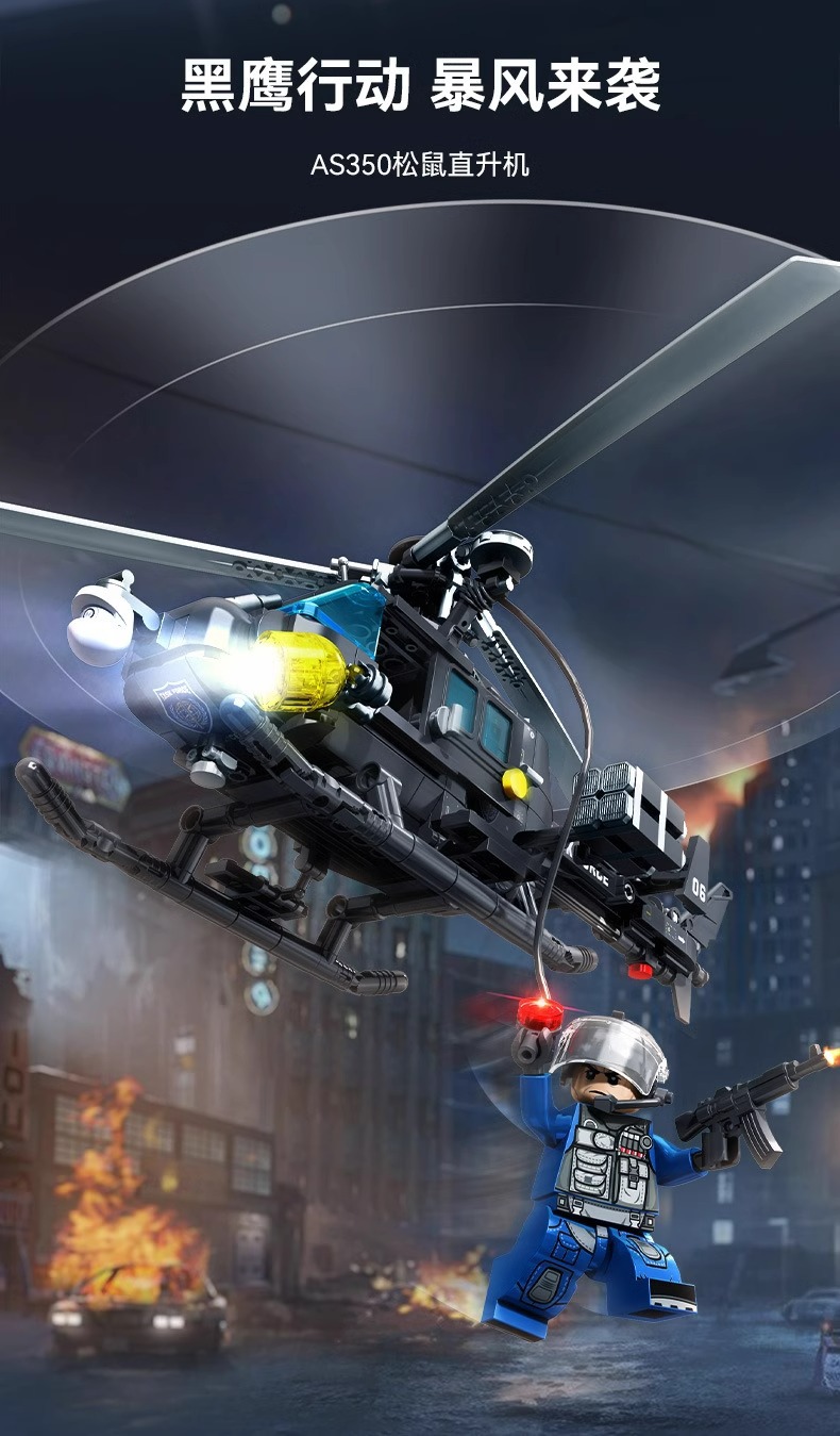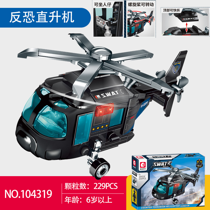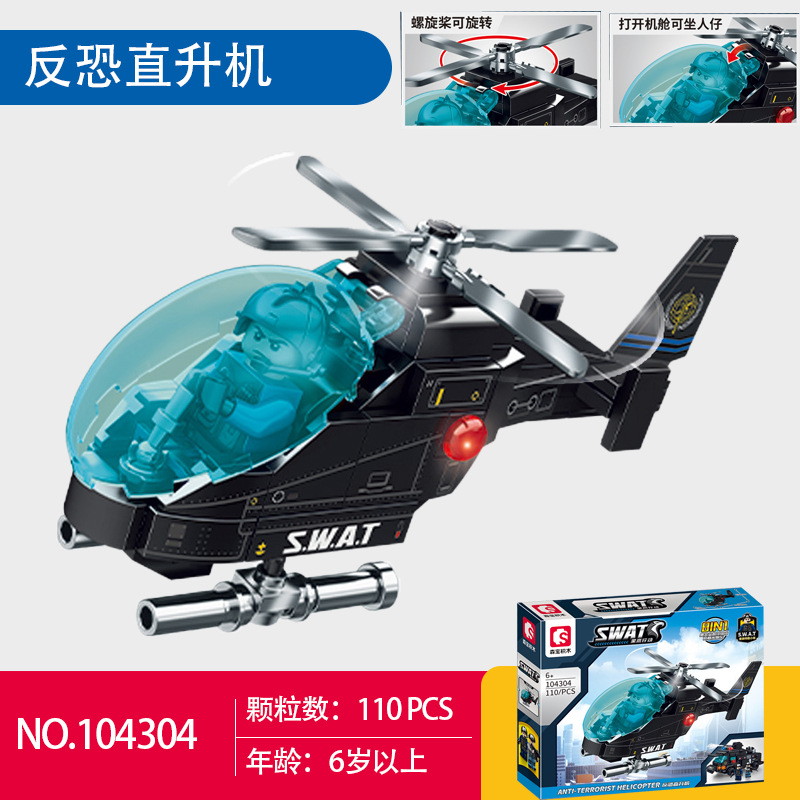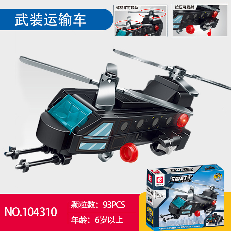 센바오 빌딩 블록 블랙 호크 액션 다람쥐 헬리콥터 무장 폭발 방지 차량 퍼즐 빌딩 블록 조립 군용 장난감