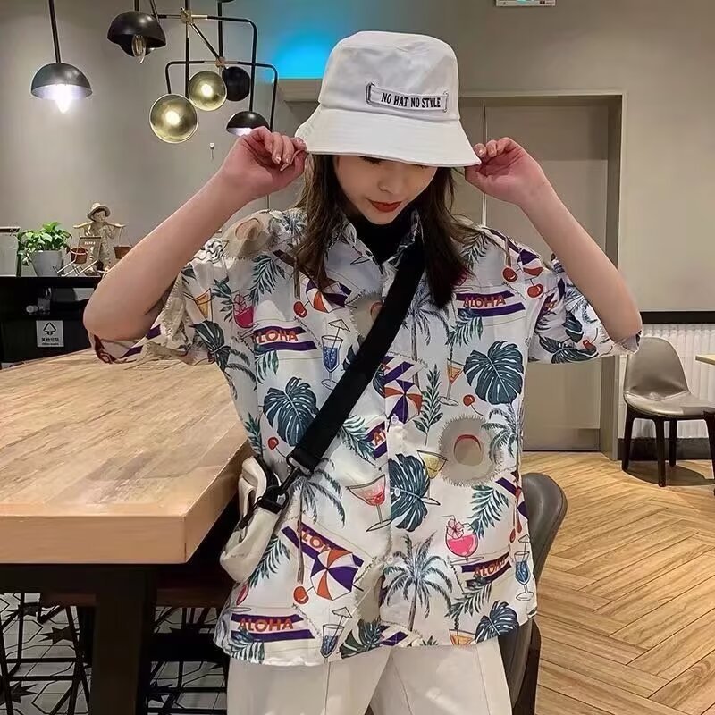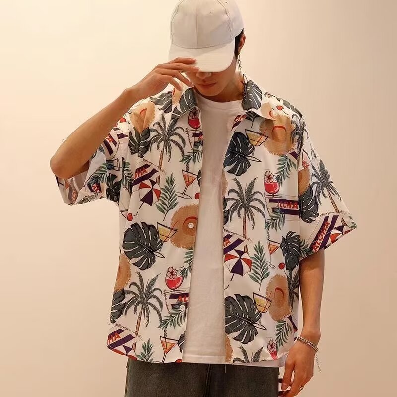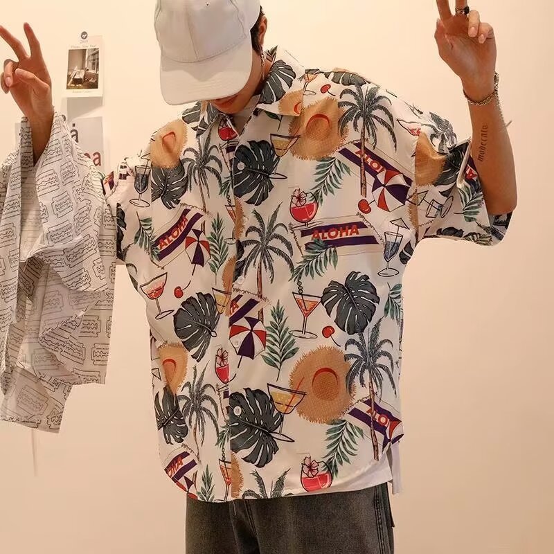 2024 하와이 셔츠 남자 홍콩 스타일 꽃 휴가 해변 반팔 느슨한 커플 유행 복고풍 인쇄 셔츠스토어 가기