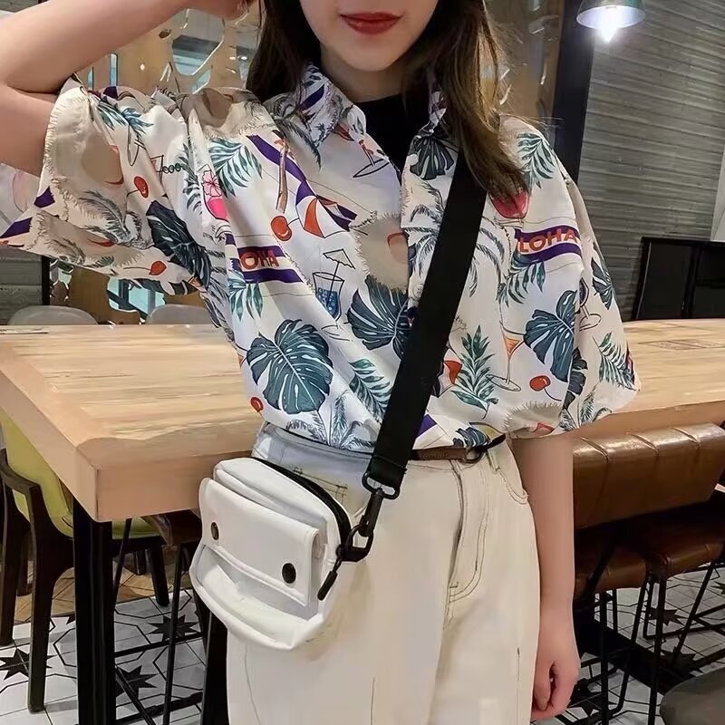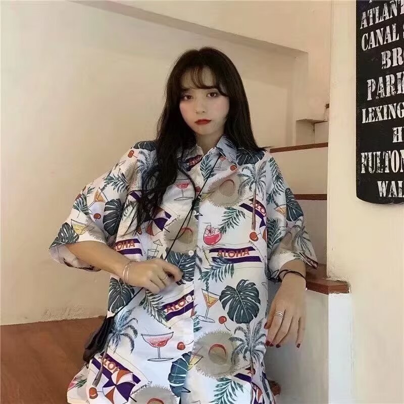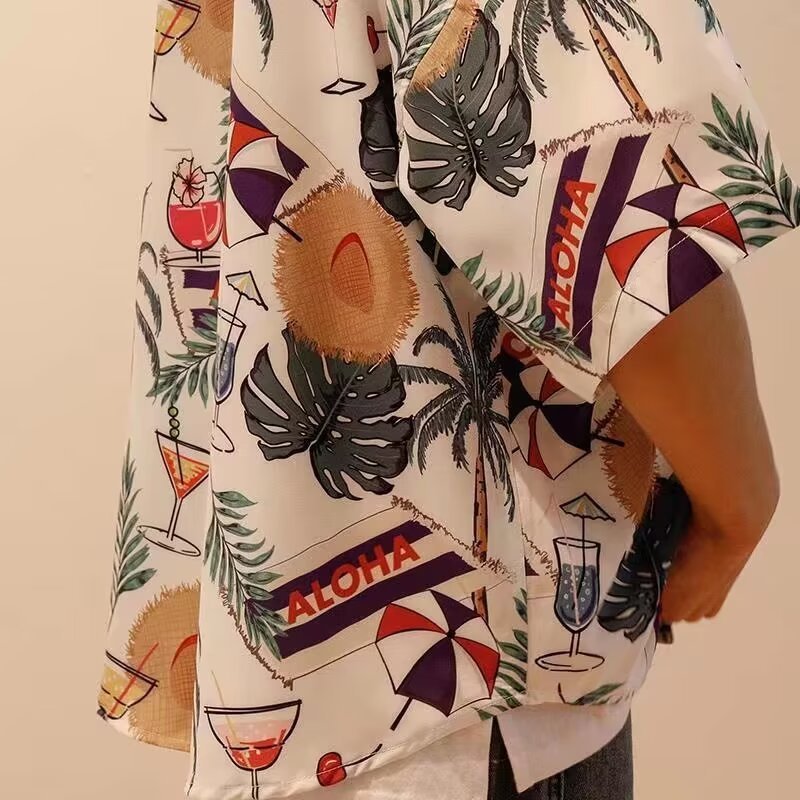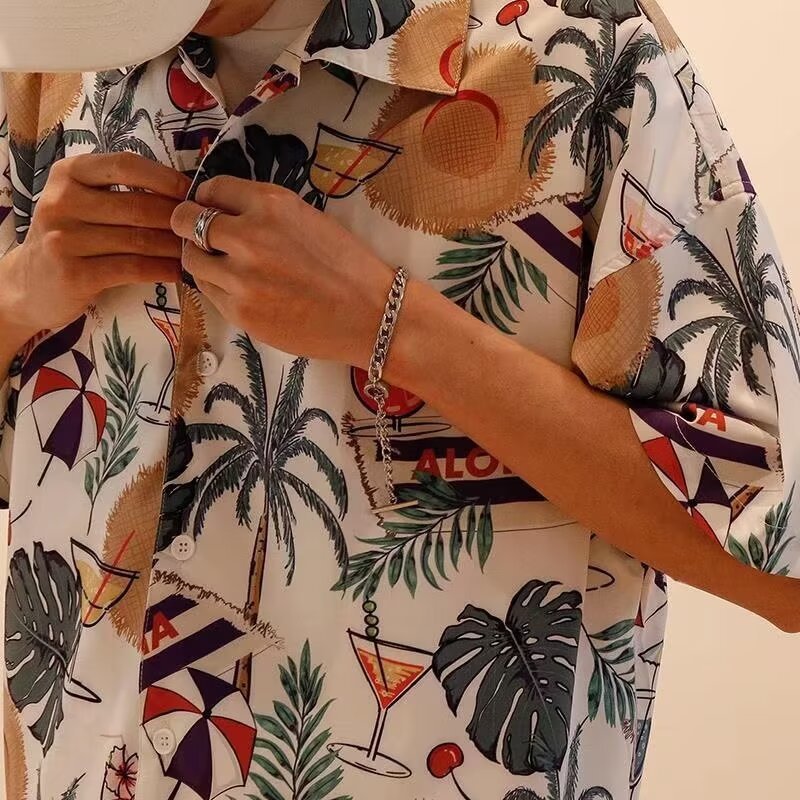 2024 하와이 셔츠 남자 홍콩 스타일 꽃 휴가 해변 반팔 느슨한 커플 유행 복고풍 인쇄 셔츠