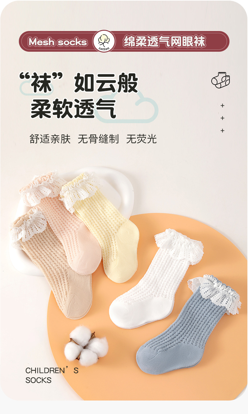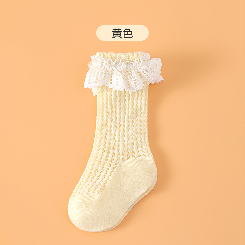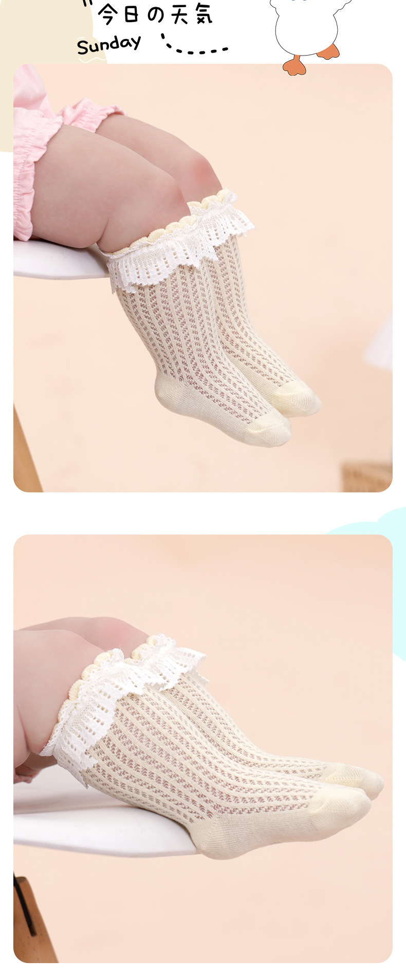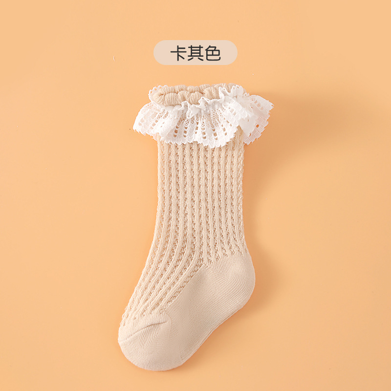 어린이 중간 튜브 양말 아기 메쉬 통기성 송아지 아기 봄 여름 가을 얇은 날 에어컨 안티 모기 양말 레이스
