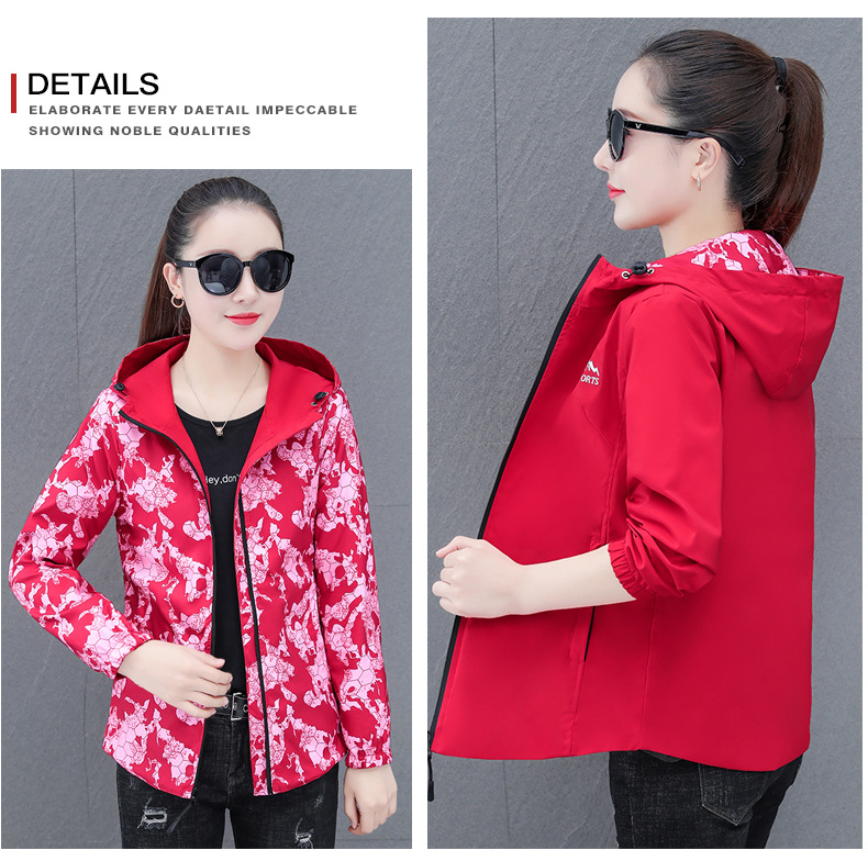 올 매치 양면 재킷 쇼트 코트 여자 봄과 가을 뉴 루즈 후드 코트 캐주얼 재킷 탑