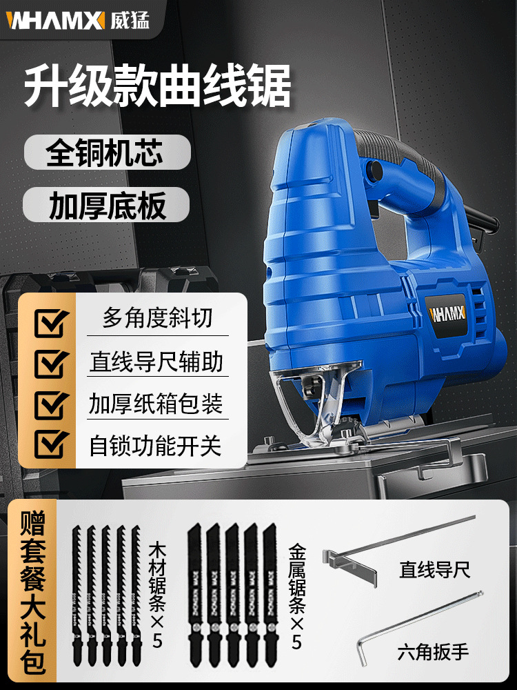 독일 Weimeng 전기 직소 가정용 전기 톱 다기능 핸드 헬드 우드 보드 와이어는 작은 절단 기계 목재 도구를 보았다