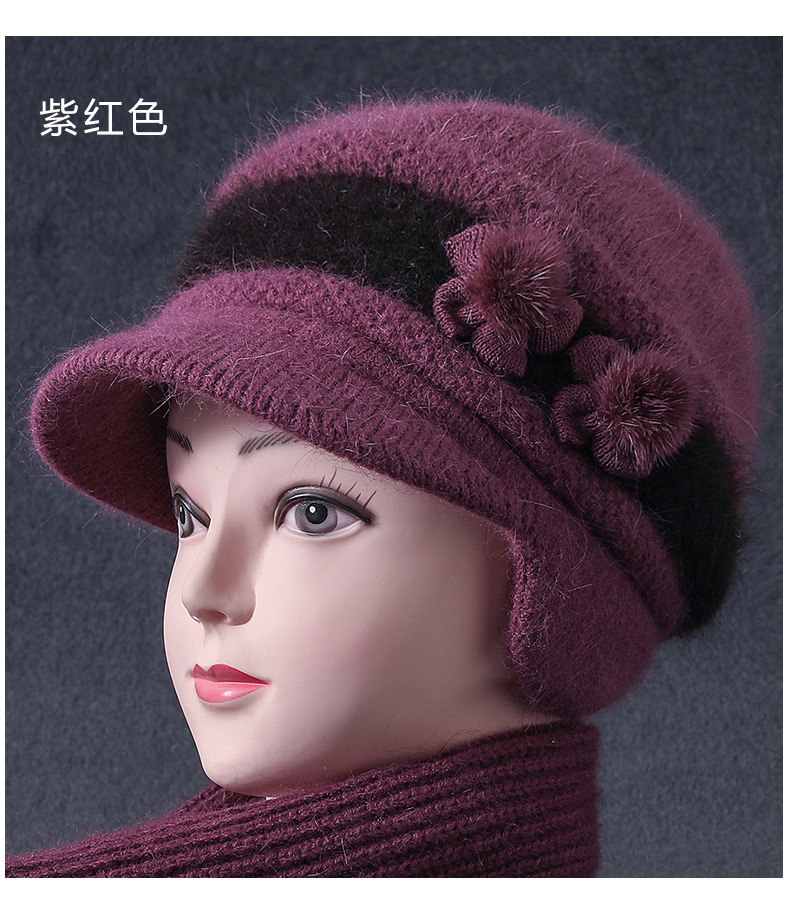 중년 및 노인 할머니를위한 여성 토끼 모피 니트 따뜻한 모자 기모 냉장 양모 귀 보호 모자 패션 어머니스토어 가기