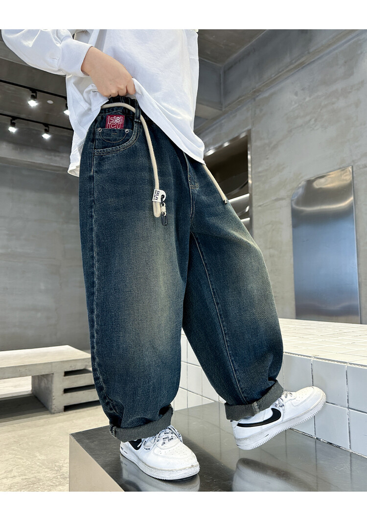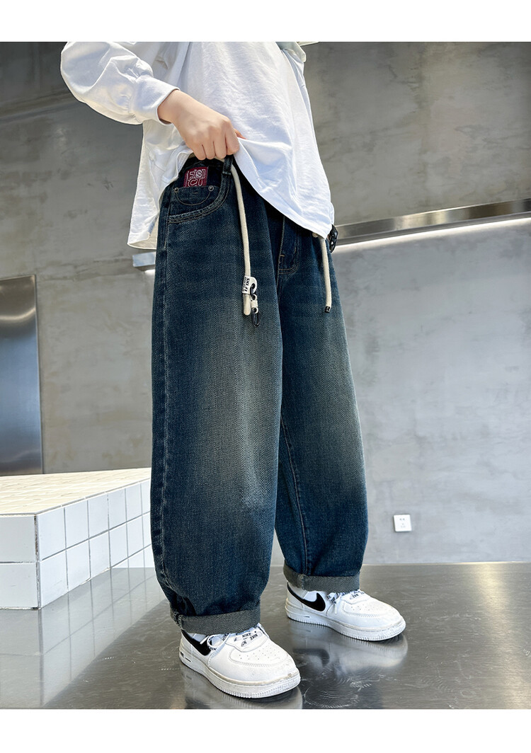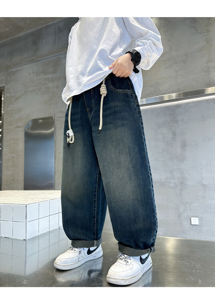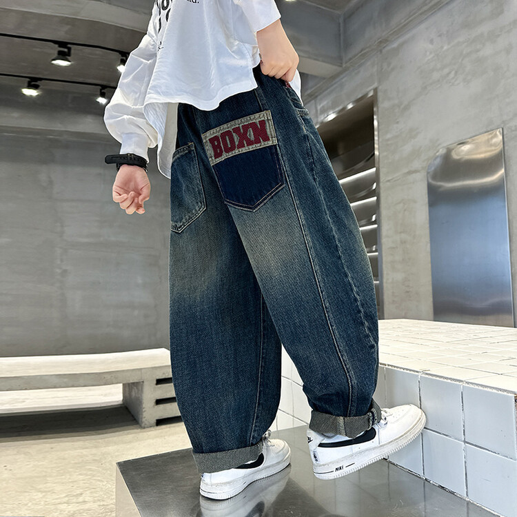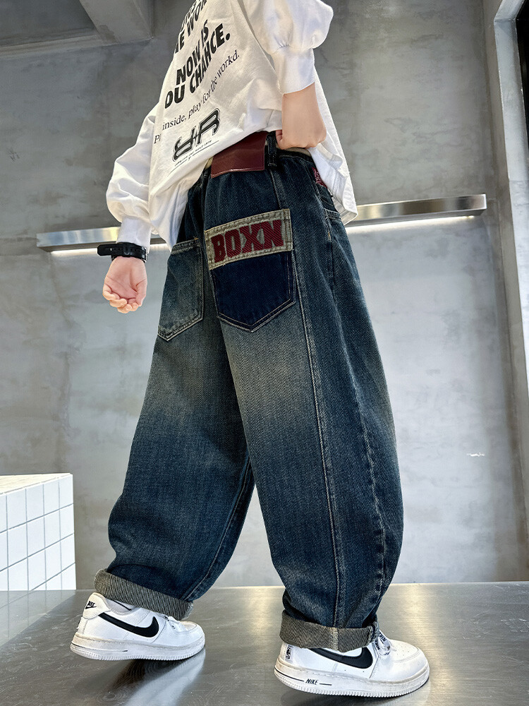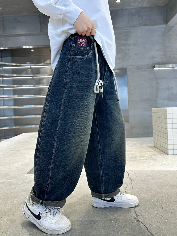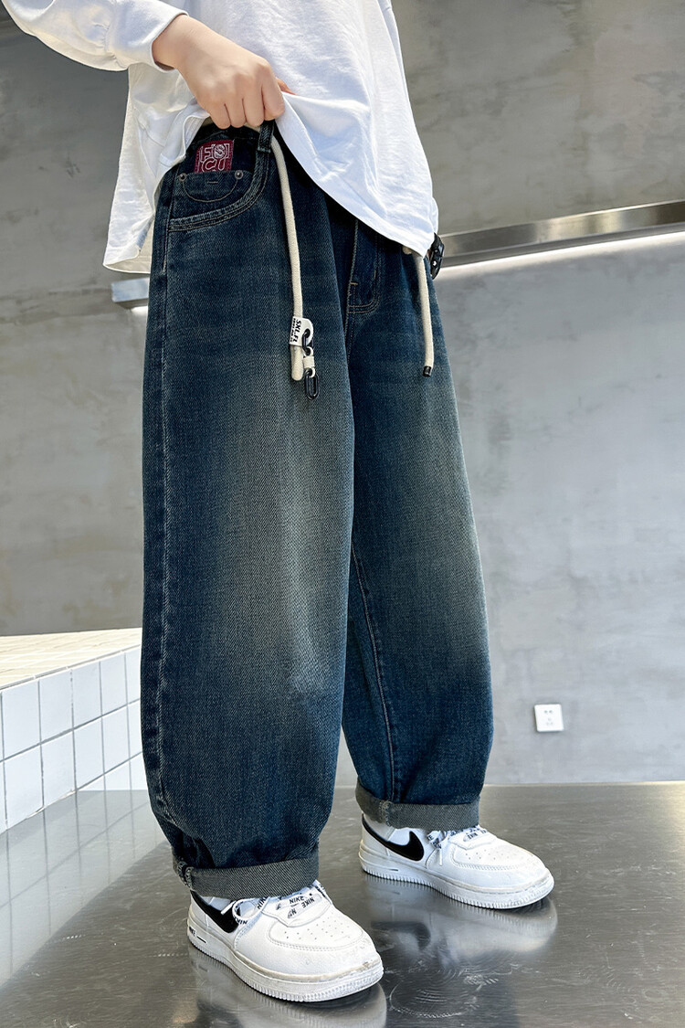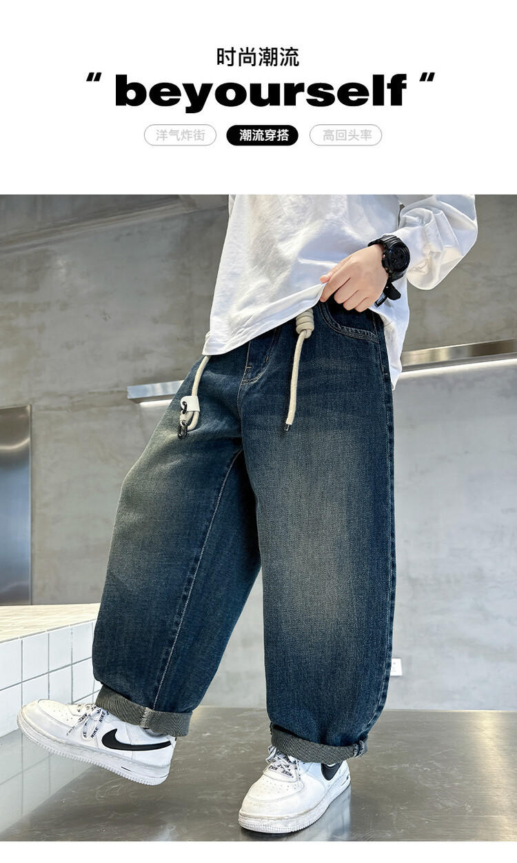 2024 년 가을 새 소년 바지 대형 소년 트렌디 한 청바지 느슨한 한국식 어린이 스트레이트 바지스토어 가기