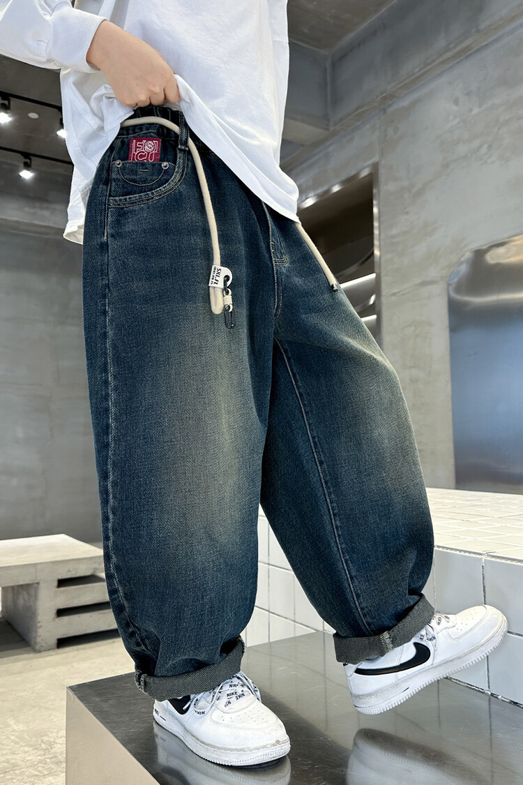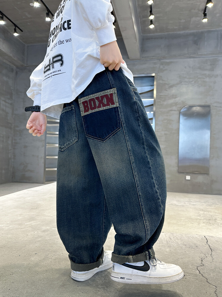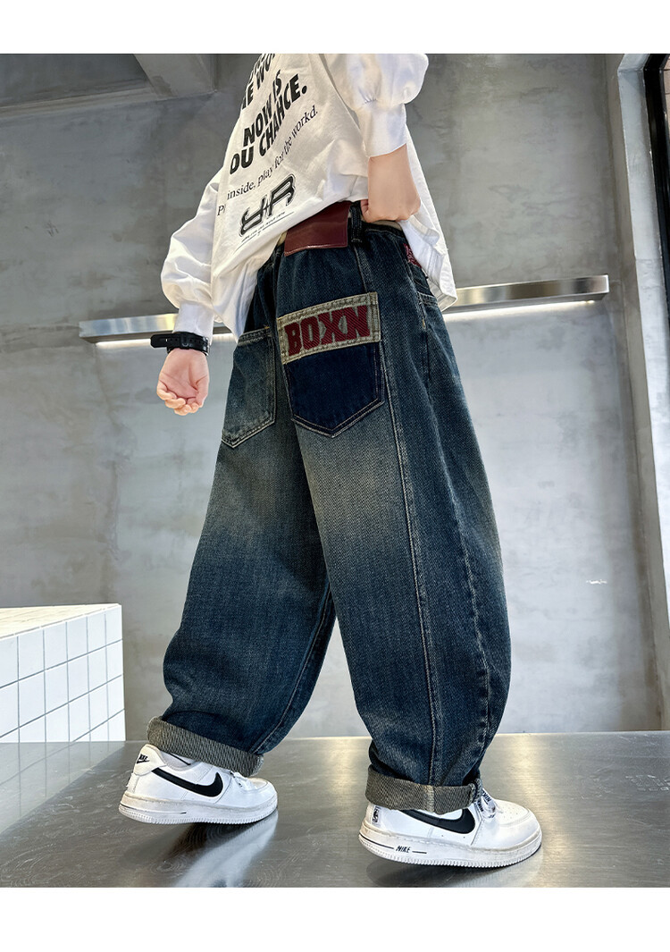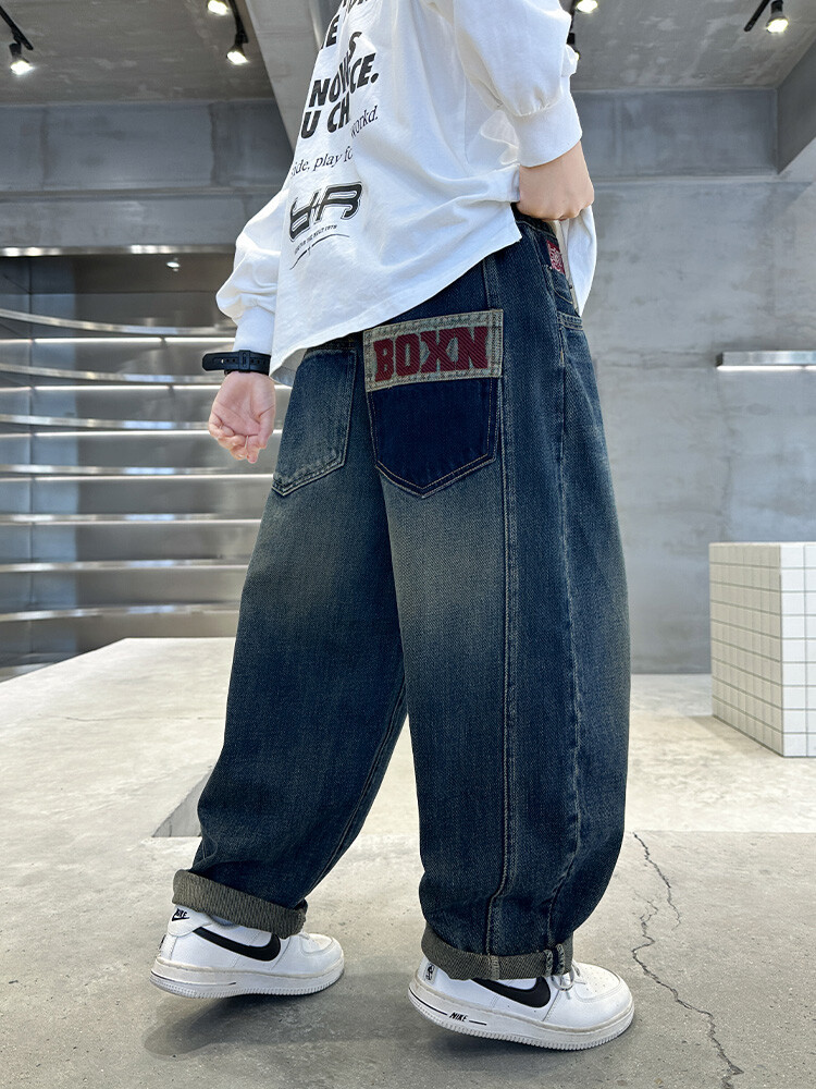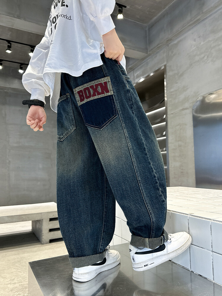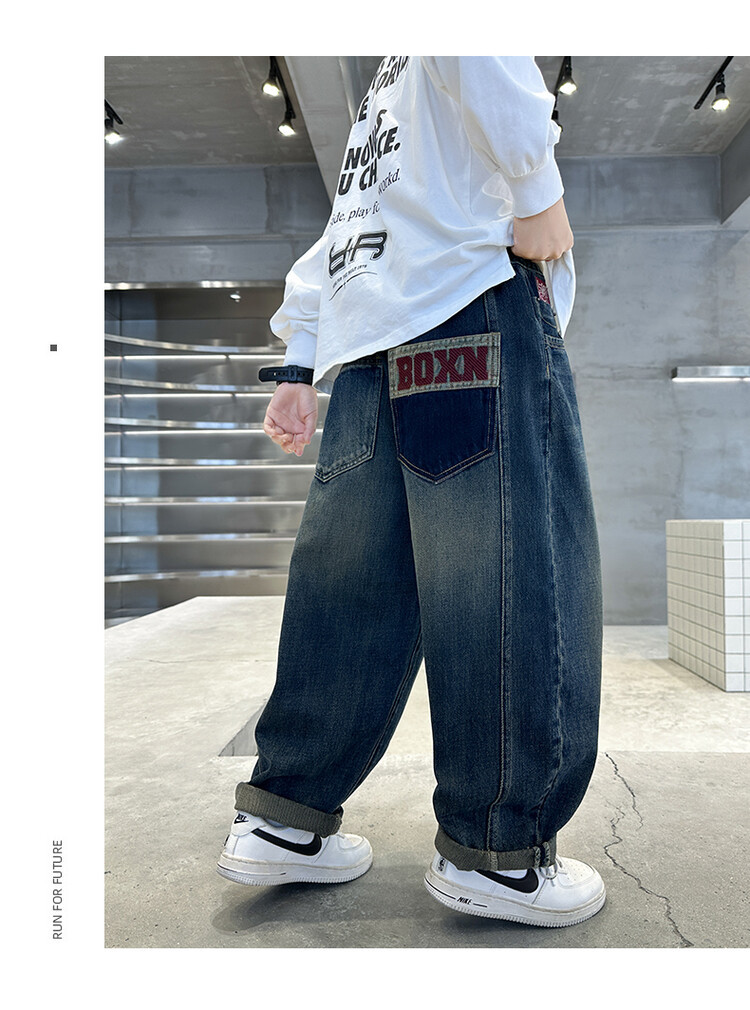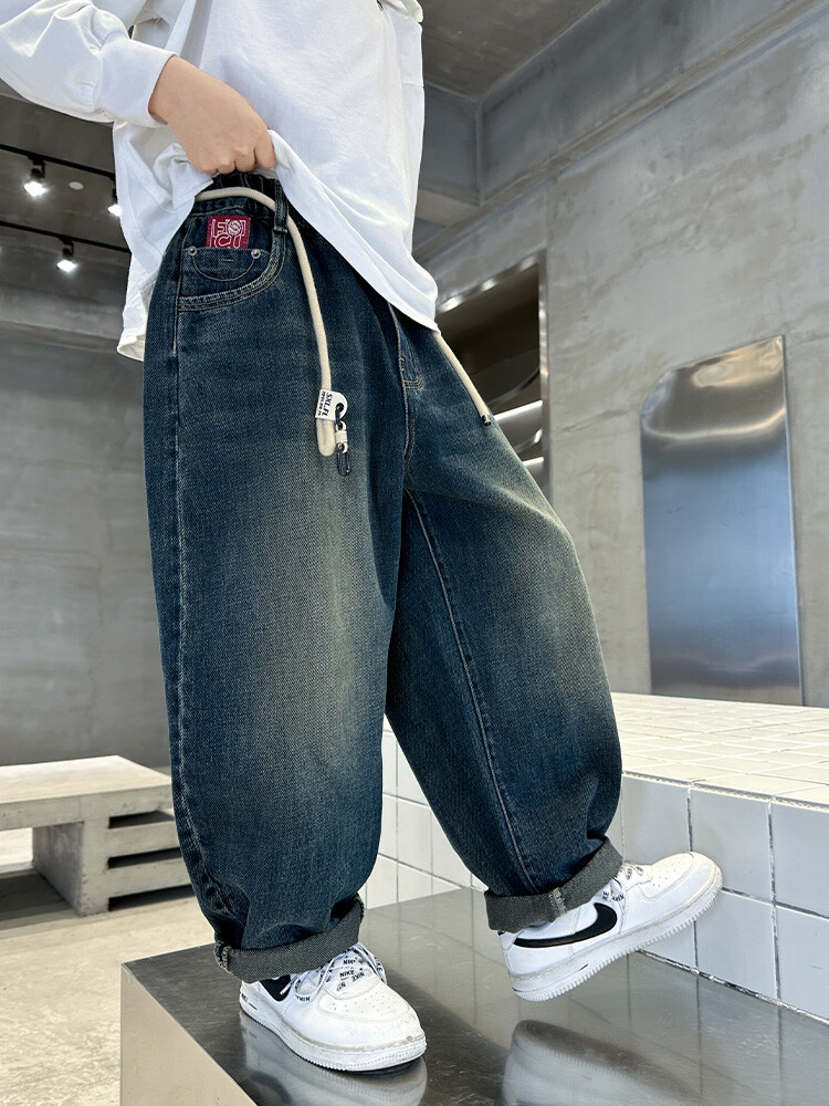 2024 년 가을 새 소년 바지 대형 소년 트렌디 한 청바지 느슨한 한국식 어린이 스트레이트 바지스토어 가기