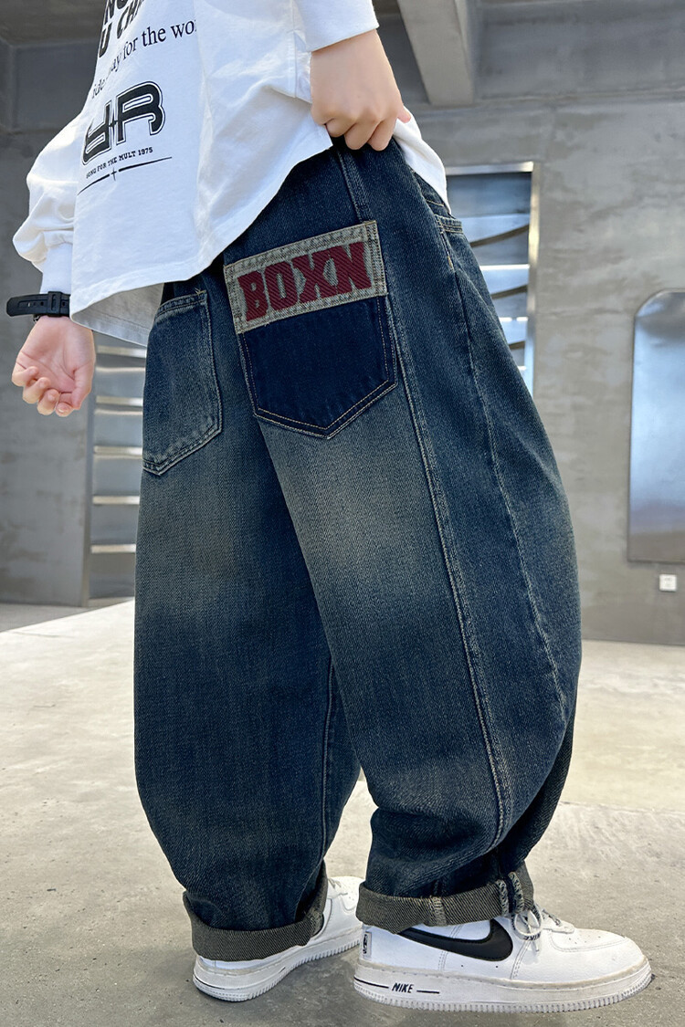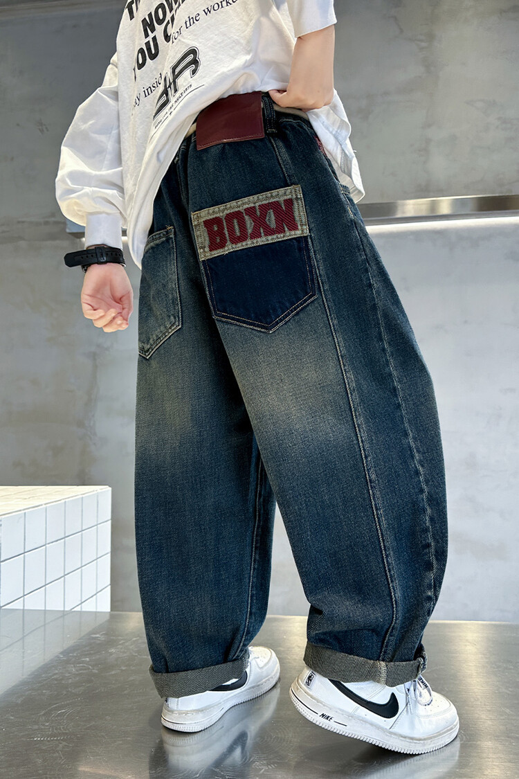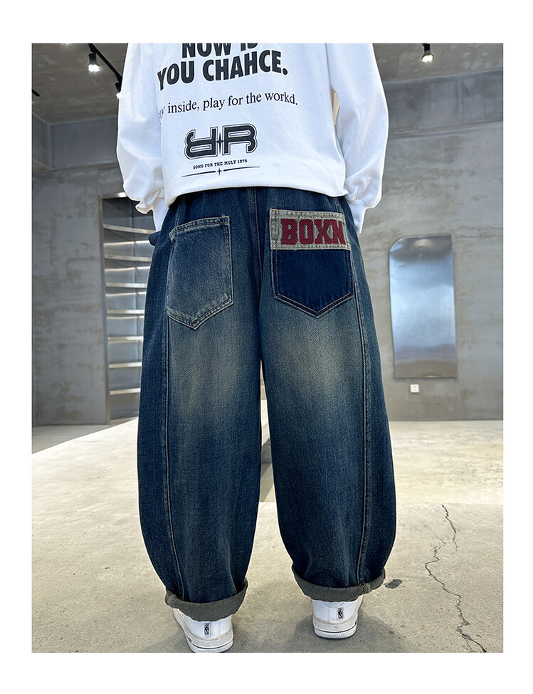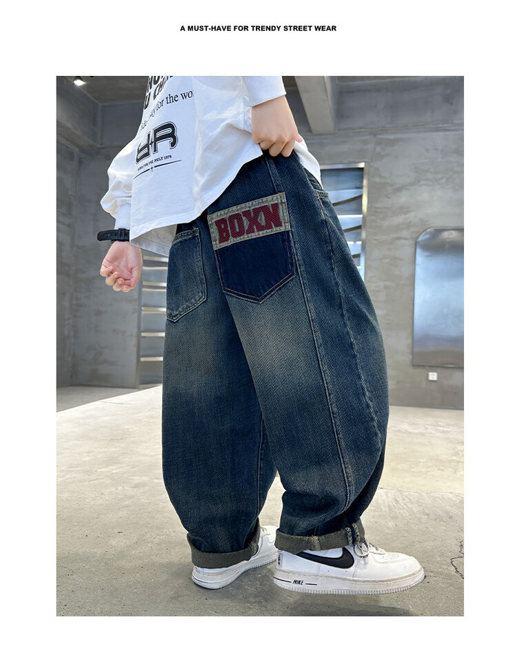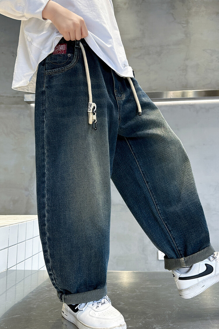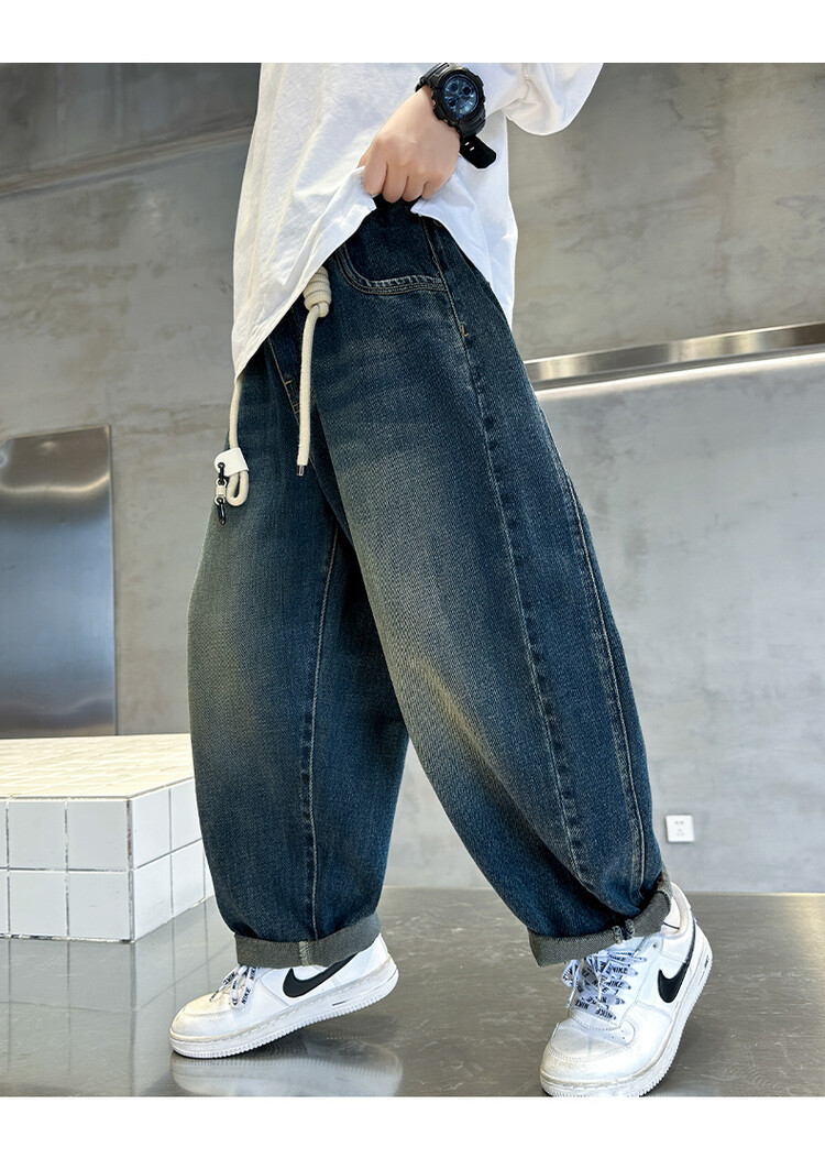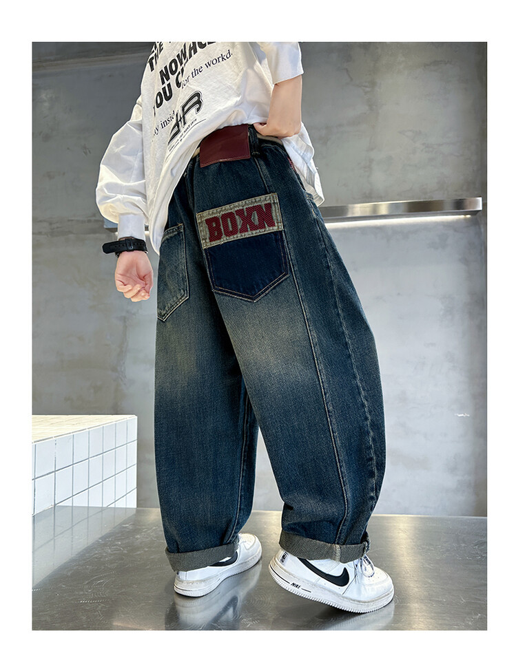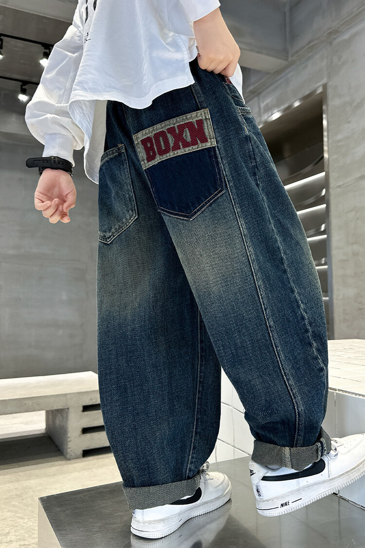 2024 년 가을 새 소년 바지 대형 소년 트렌디 한 청바지 느슨한 한국식 어린이 스트레이트 바지스토어 가기