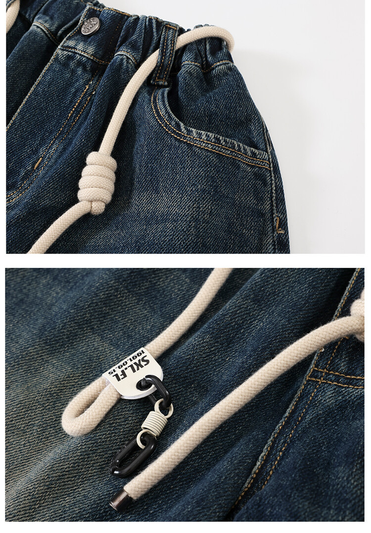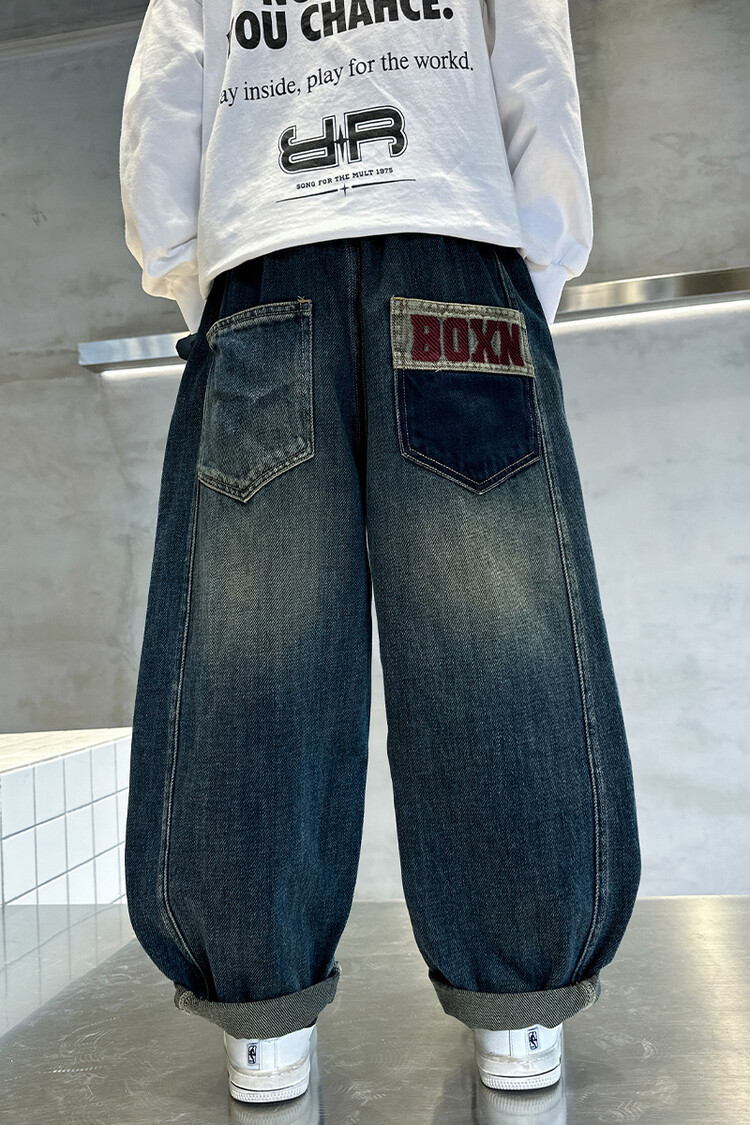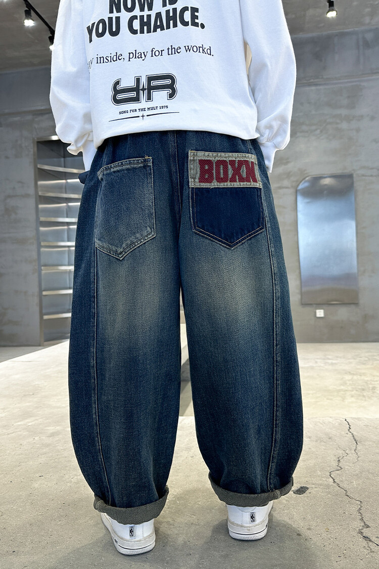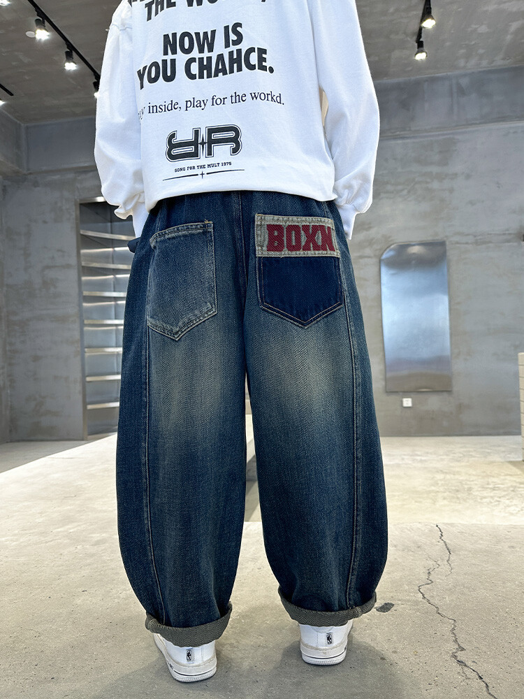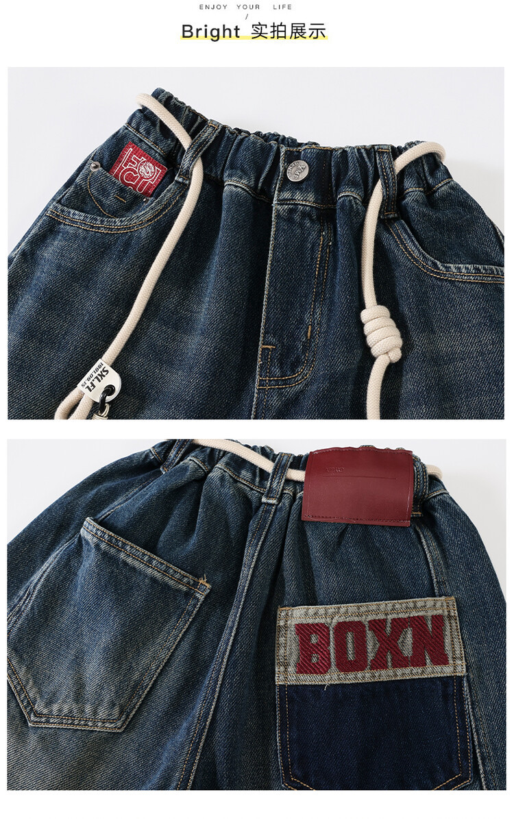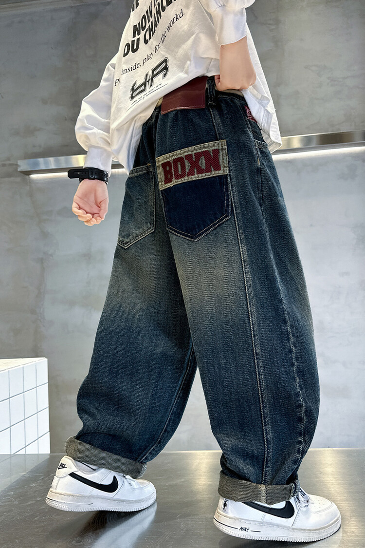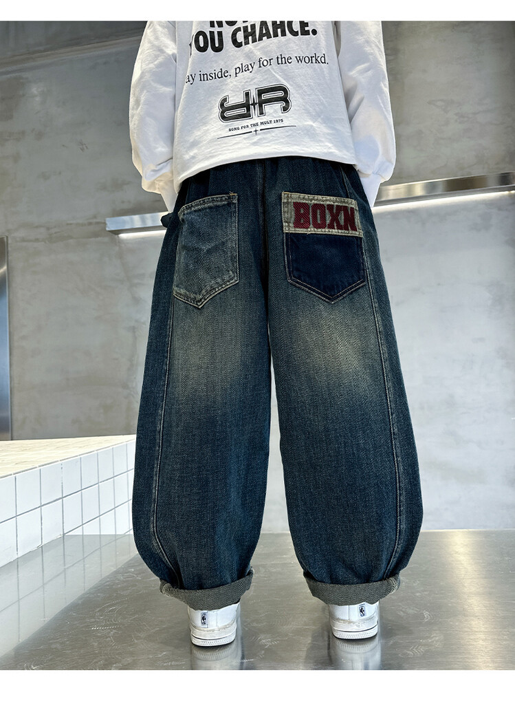 2024 년 가을 새 소년 바지 대형 소년 트렌디 한 청바지 느슨한 한국식 어린이 스트레이트 바지스토어 가기