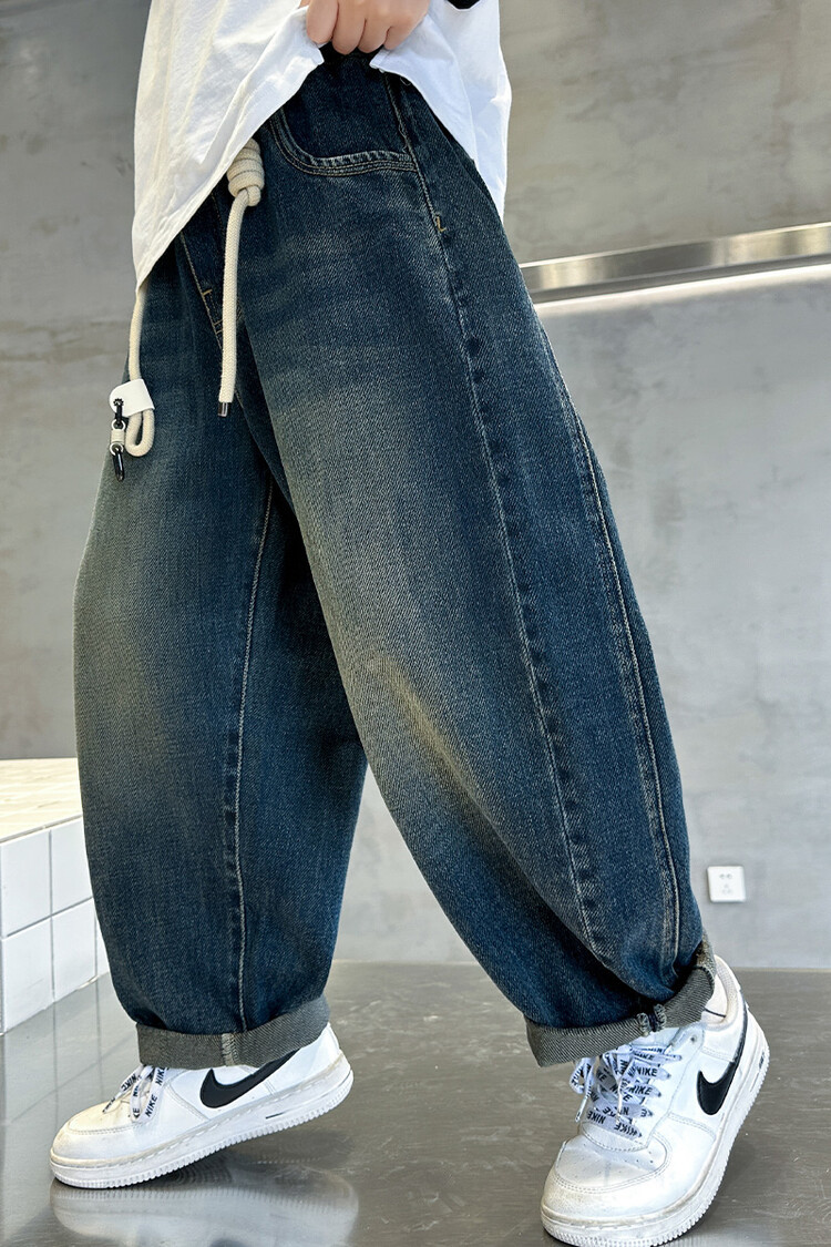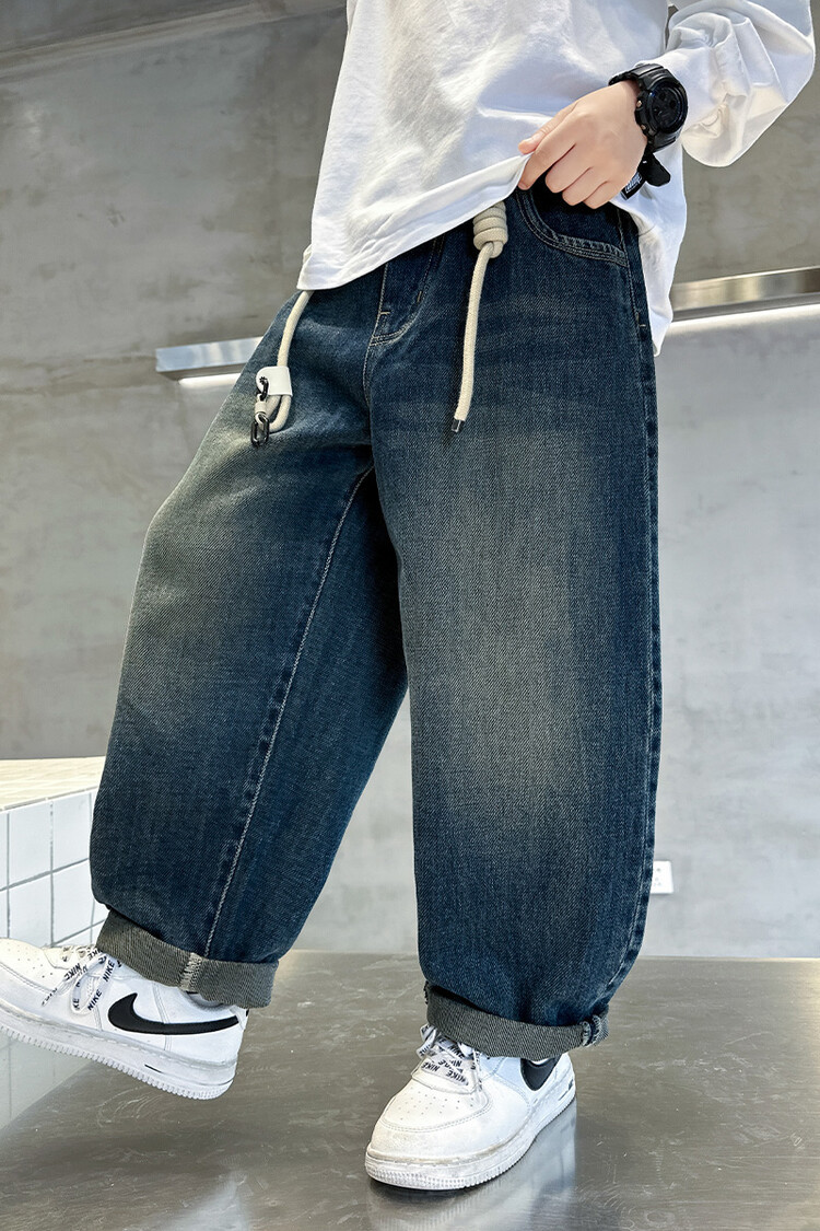 2024 년 가을 새 소년 바지 대형 소년 트렌디 한 청바지 느슨한 한국식 어린이 스트레이트 바지