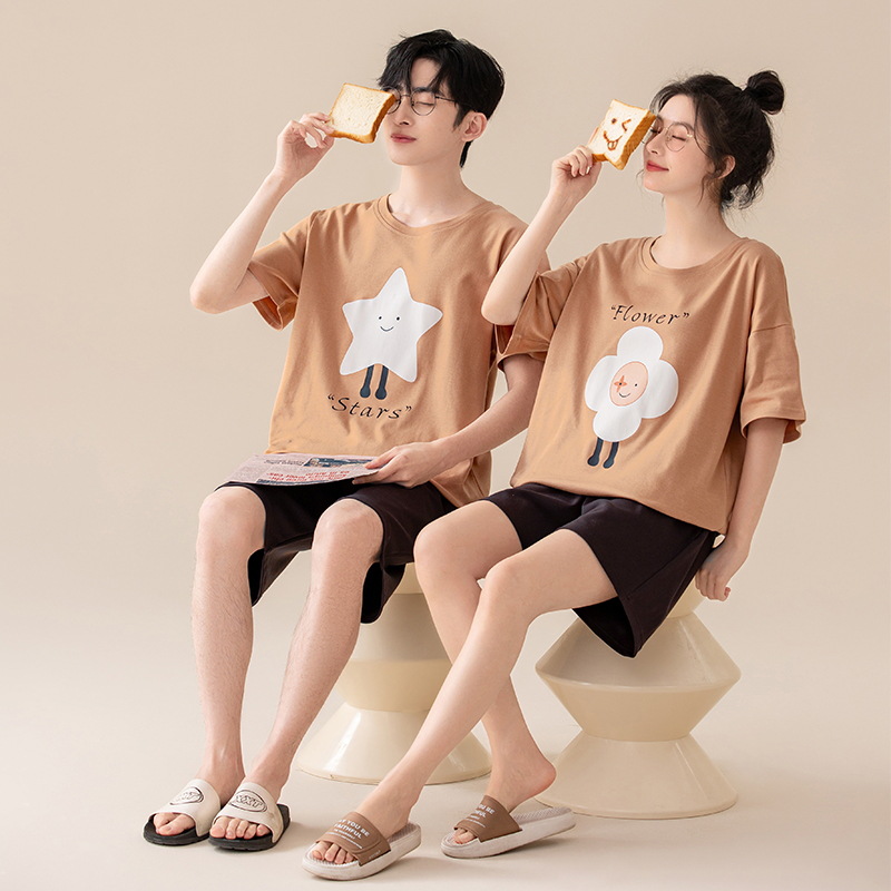 [애기코튼] A 급 세균성 커플 파자마 여름면 반팔 여름 여성면 홈웨어 남성용 세트스토어 가기