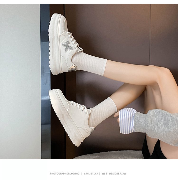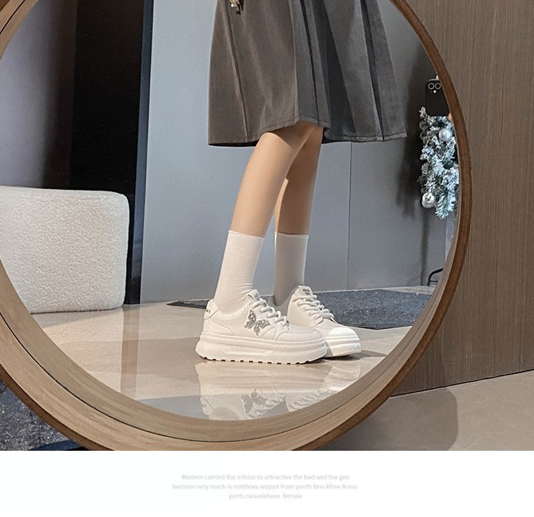 학생용 두꺼운 밑창 흰색 신발 2025 봄, 가을 신상 버터플라이 한국 스타일 가죽 캐주얼 신발 통기성 스포츠 여성 신발스토어 가기