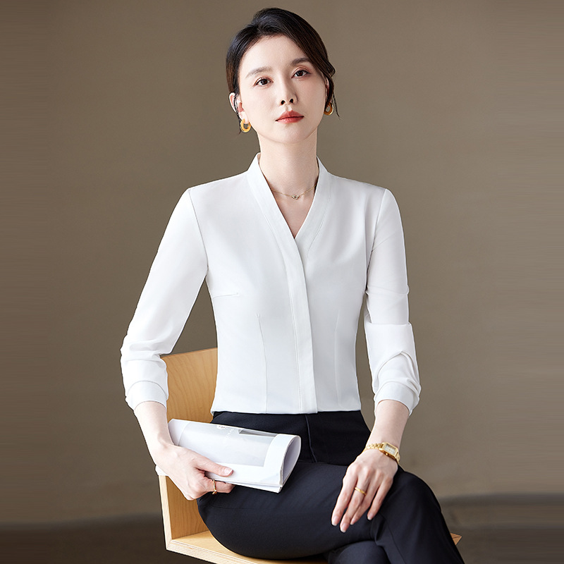 전문 셔츠 여성의 봄과 가을 세련된 패션 하이 엔드 센스 내면베이스 긴 소매 셔츠 통근 OL 원피스 작업복스토어 가기