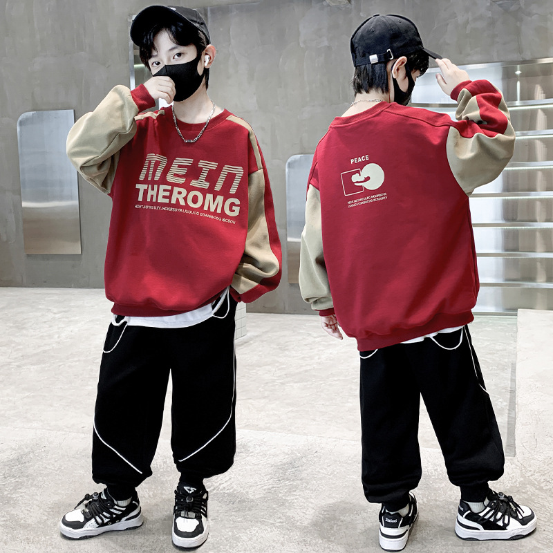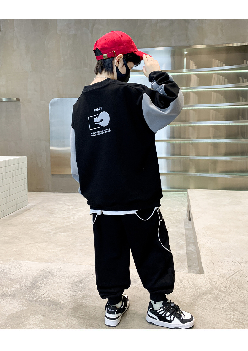 소년 가을 조끼 세트 2024 새로운 큰 어린이 가을 어린이 봄과 가을 소년 2 피스 아동복 도매스토어 가기