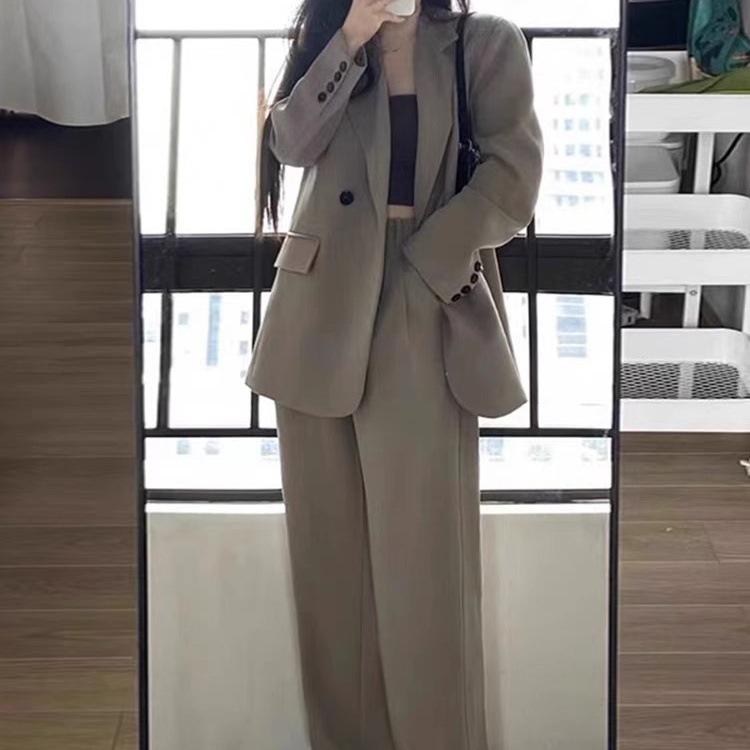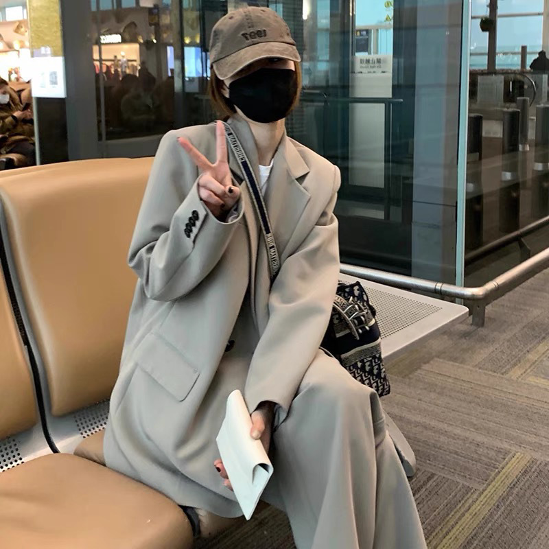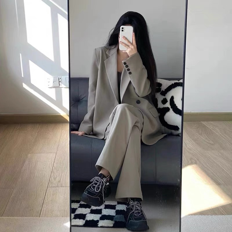 세트 재킷 여성의 느슨한 봄과 가을 새로운 틈새 캐주얼 느슨한 한국식 원 버튼 세트스토어 가기