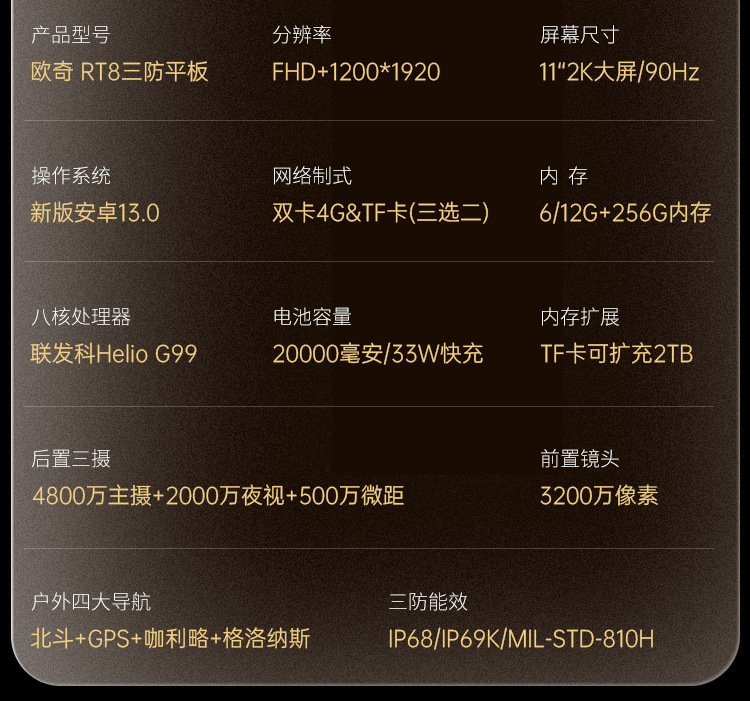 Ouqi RT8 Netcom 4G 3-증거 패 블릿 20000 mA 초대형 배터리 듀얼 카드 야외 방수 및 드롭 방지스토어 가기