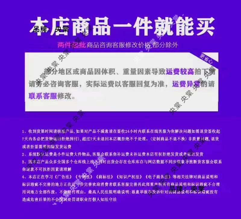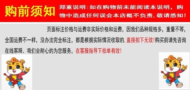 购物须知:本店商品标价,都是不包括税点,开票另加税点,详情咨询客服。 部分商品及偏远地区(例如:新疆、西藏、香港、澳门、台湾等地区)无法包邮,详情请询问客服修改运费,部分商品为预售款页面价格为预付定金,前请与客服联系确认,部分商品款式或与页面图片有些许不同,请您前与客服确定规格款式,以免给造成误会,给您带来的不便敬请谅解!本店商品各地,多仓库发货,如需退换货请联系客服,获取正确退换货地址,带来不便请谅解