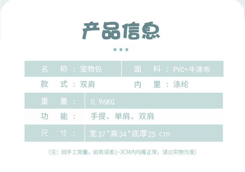 반려동물 가방 투명 휴대용 고양이 외출용 대용량 백팩 통기성 강아지 고양이 이동장 도매