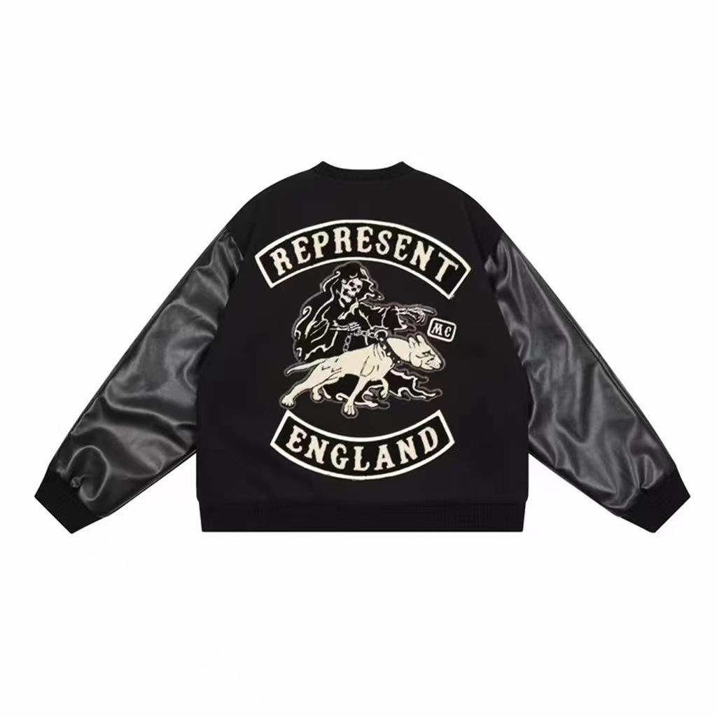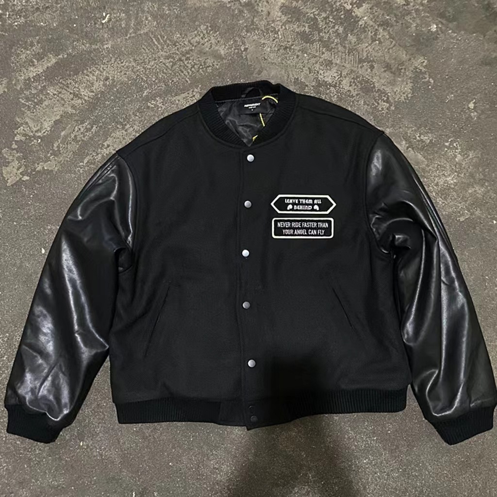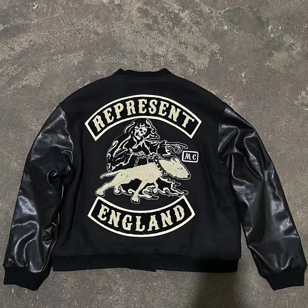 아메리칸 스타일 하이 스트리트 야구 세트 재킷 새로운 가을 악 개 자수 가죽 소매 유행 브랜드 루즈 바이커 재킷스토어 가기