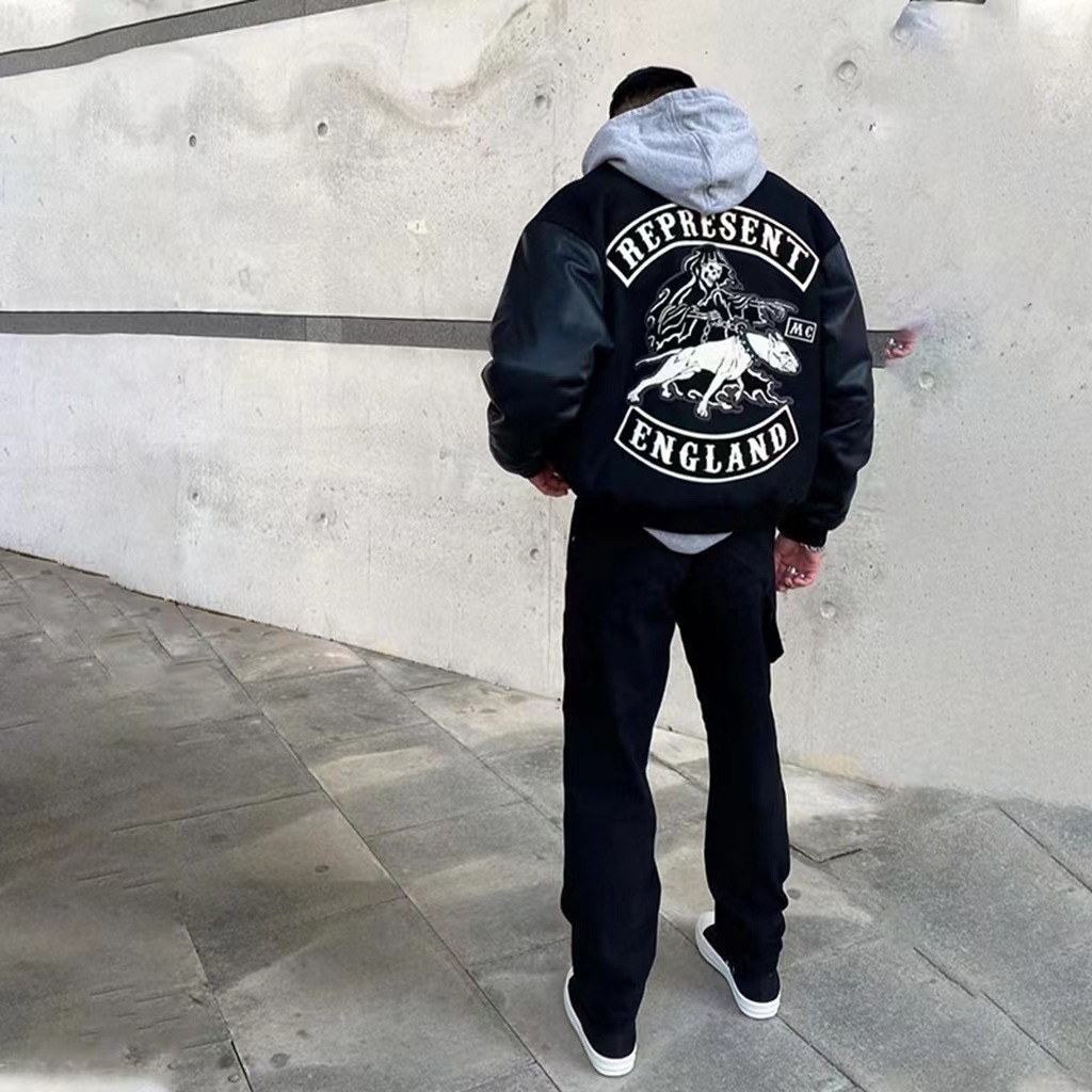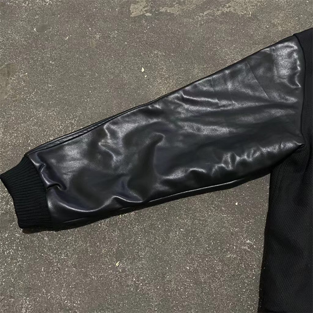 아메리칸 스타일 하이 스트리트 야구 세트 재킷 새로운 가을 악 개 자수 가죽 소매 유행 브랜드 루즈 바이커 재킷