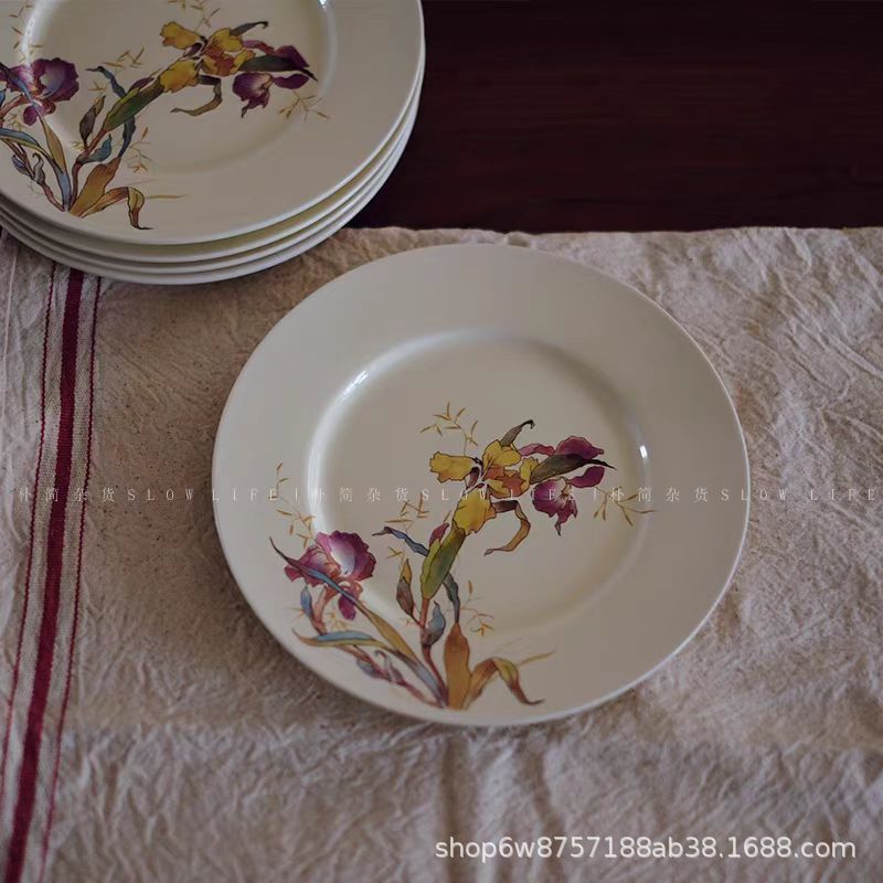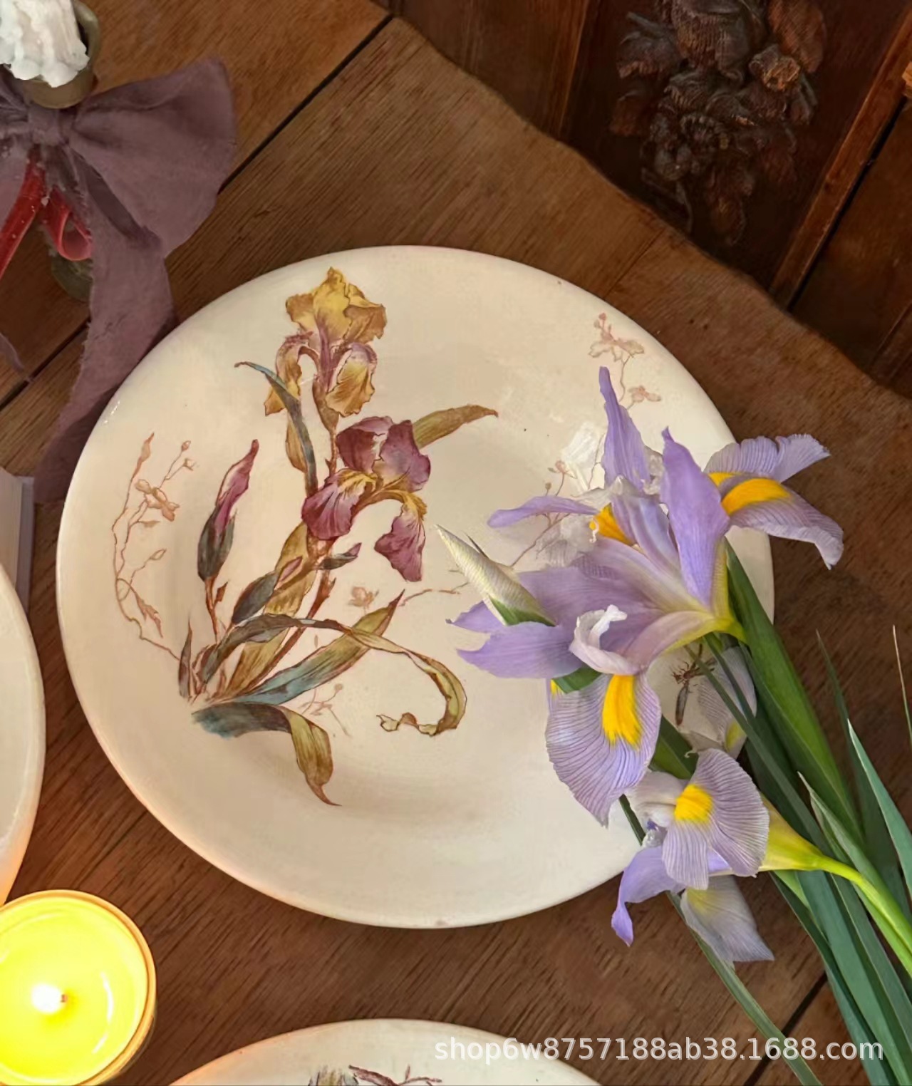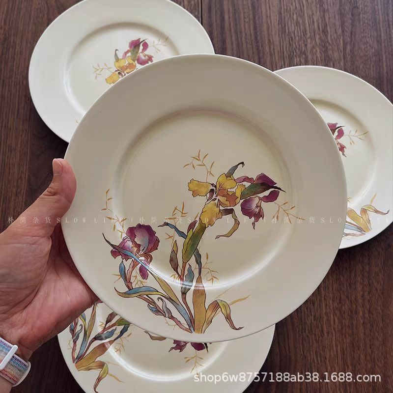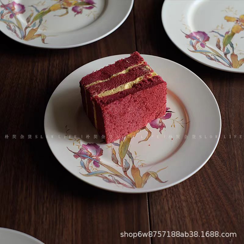 골동품 세라믹 서양 음식 접시 아침 식사 접시 디저트 플레이트 케이크 플레이트 프랑스 빈티지 패턴 플레이트스토어 가기
