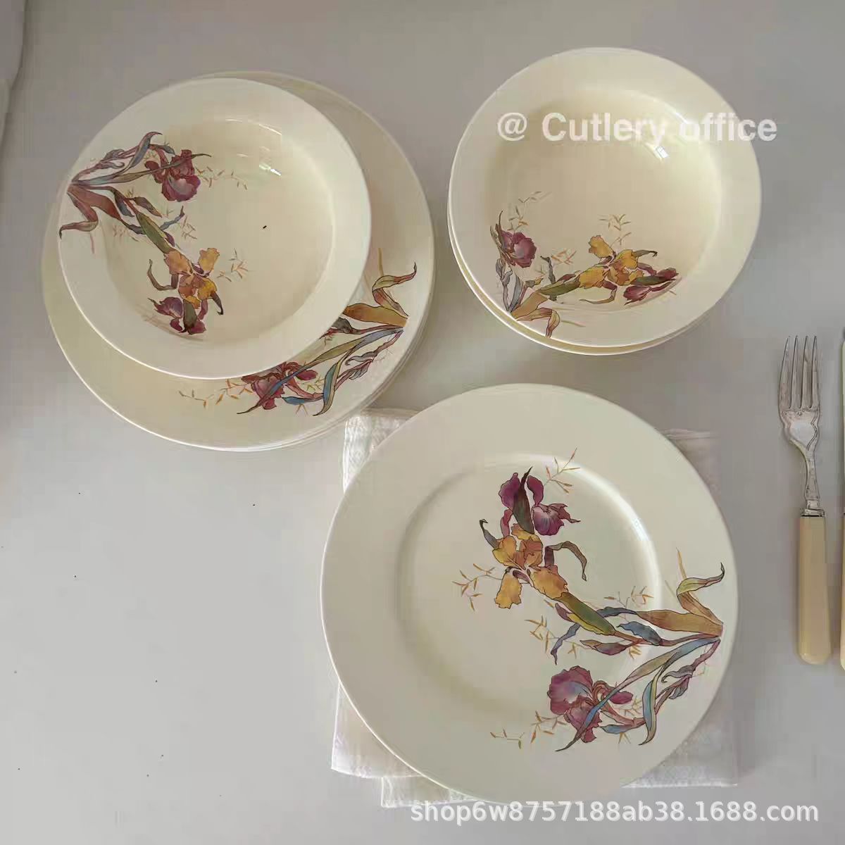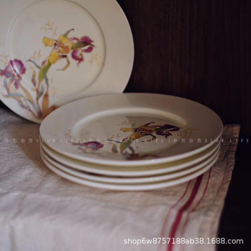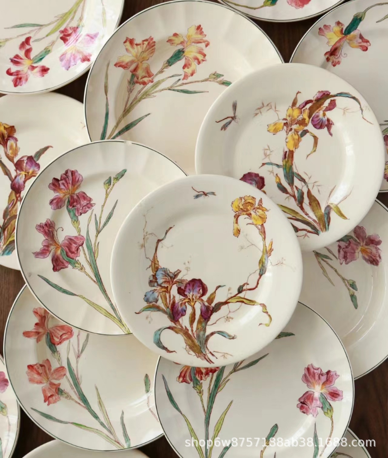 골동품 세라믹 서양 음식 접시 아침 식사 접시 디저트 플레이트 케이크 플레이트 프랑스 빈티지 패턴 플레이트
