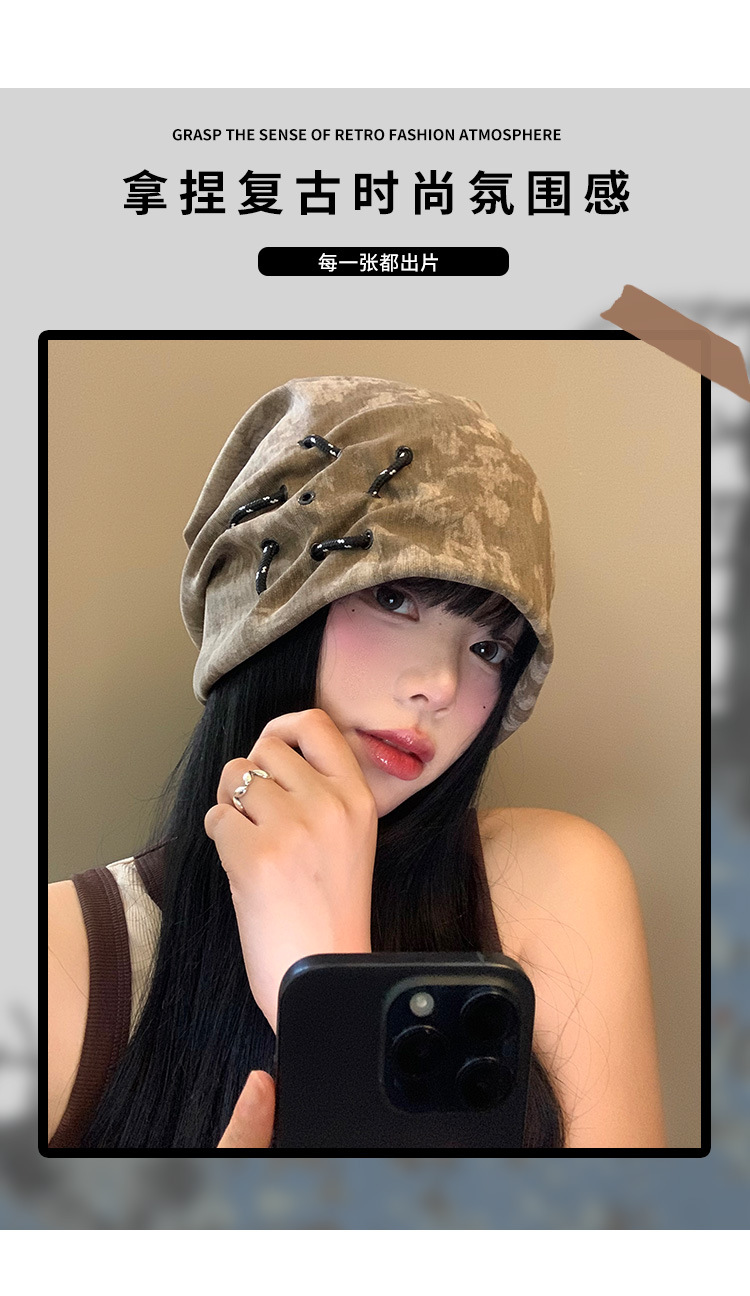 미국 스타일 빈티지 폐기물 토양 바람 힙 모자 여성의 봄과 가을 올 매치 얼굴 표시 작은 차가운 모자 큰 머리 둘레 느슨한 Baotou 모자스토어 가기