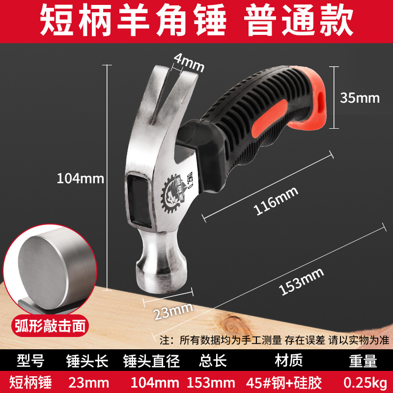 • [강력한 자석-미끄럼 방지 모델] 짧은 손잡이 클로 해머 250g