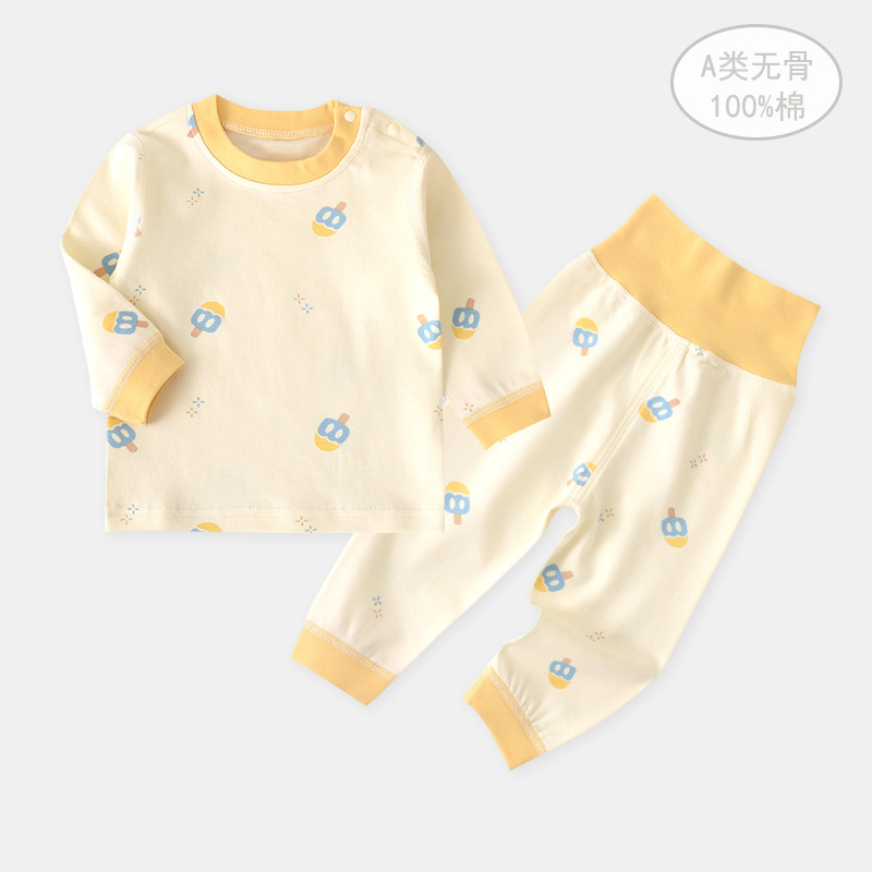 가을 새 어린이 속옷 세트 면 어깨 버클 아기의 가을 옷 가을 바지 남자 높은 허리 배 보호 여성 보투 잠옷