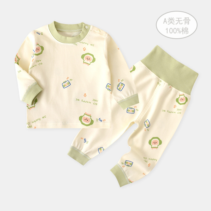 가을 새 어린이 속옷 세트 면 어깨 버클 아기의 가을 옷 가을 바지 남자 높은 허리 배 보호 여성 보투 잠옷스토어 가기