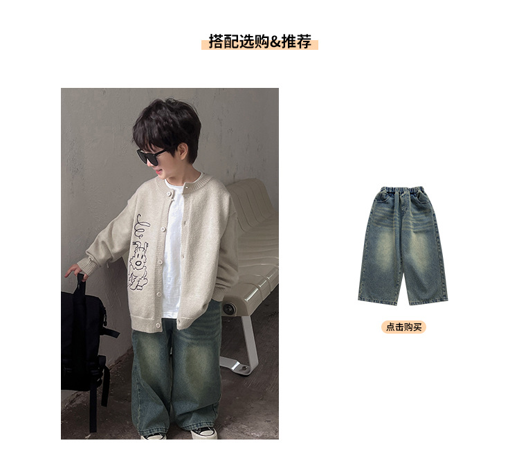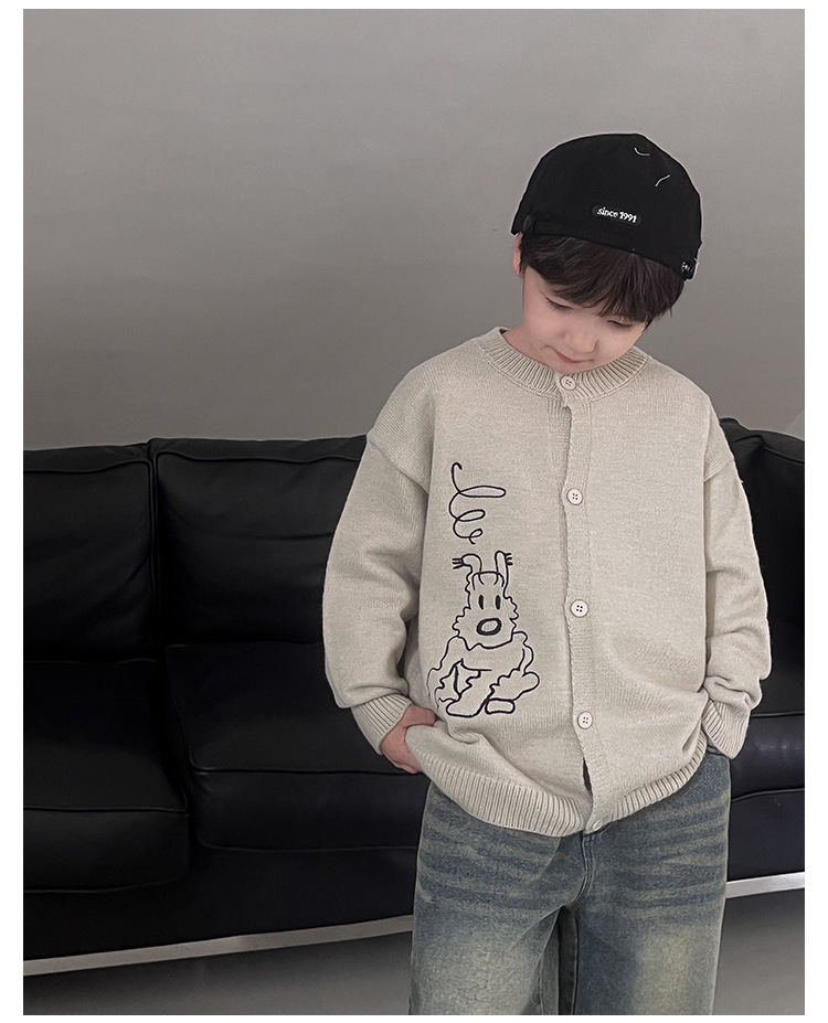 Tongku 2025 어린이 가을 모델 Huzhou Zhili 아동 의류 유행 아기 니트 카디건 강아지 자카드 소년 스웨터스토어 가기