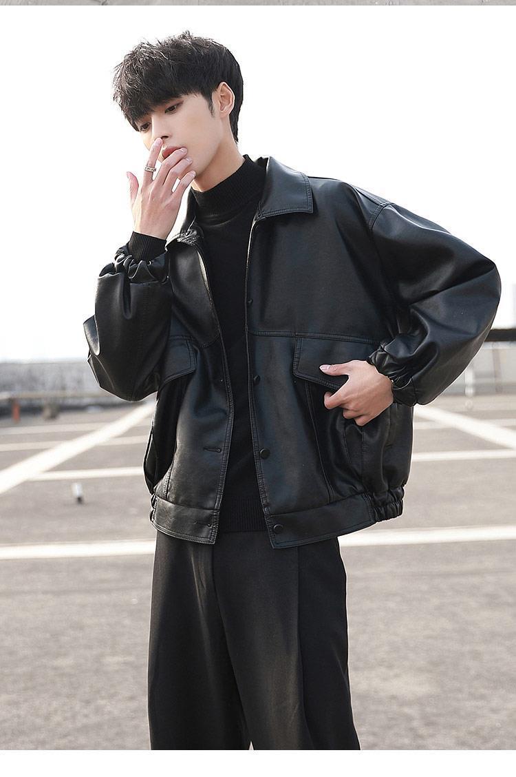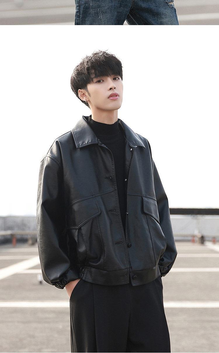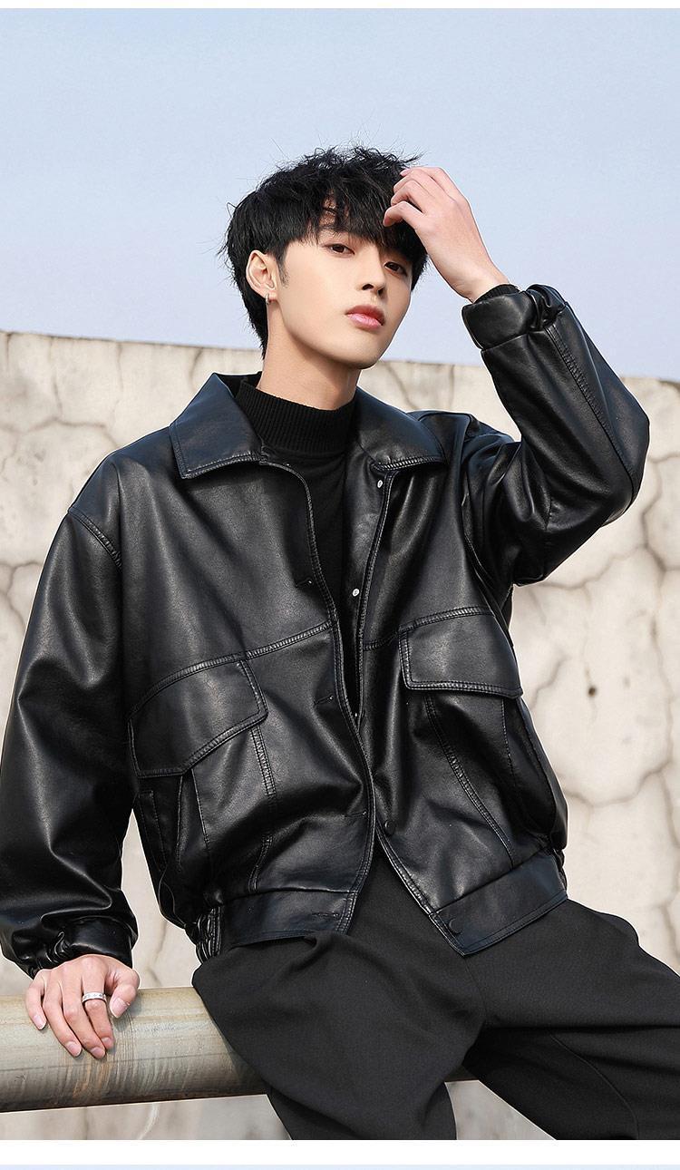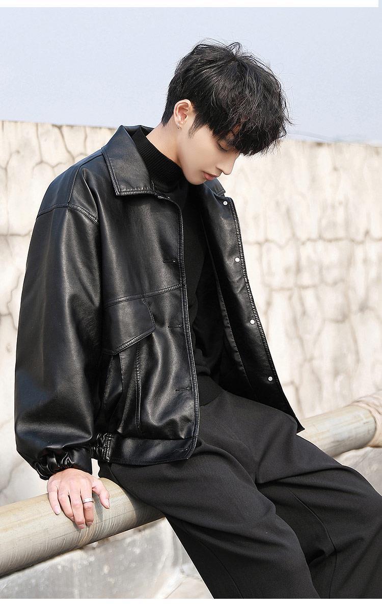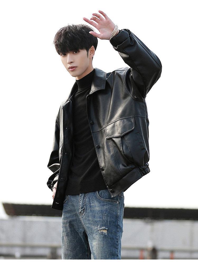한국 스타일 유행 잘 생긴 느슨한 가죽 자켓 남자 바이커 세트 비행사 가죽 자켓 봄과 가을 새로운 학생 코트 트렌디 브랜드스토어 가기