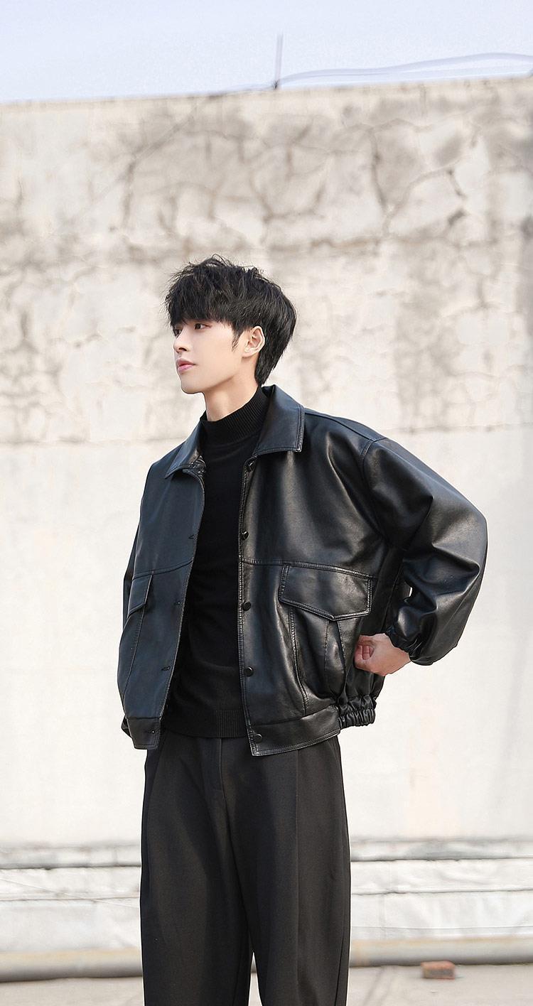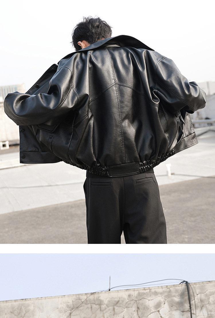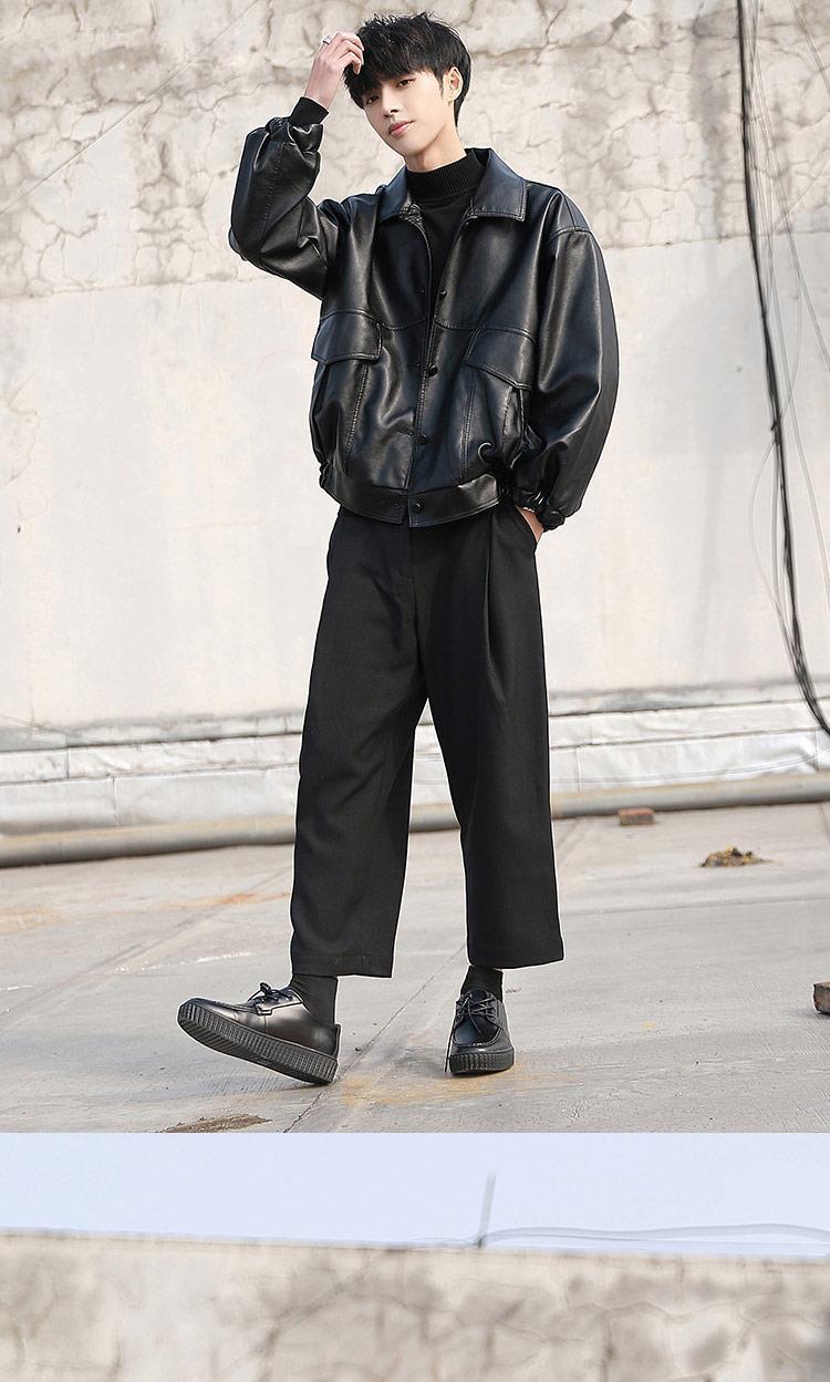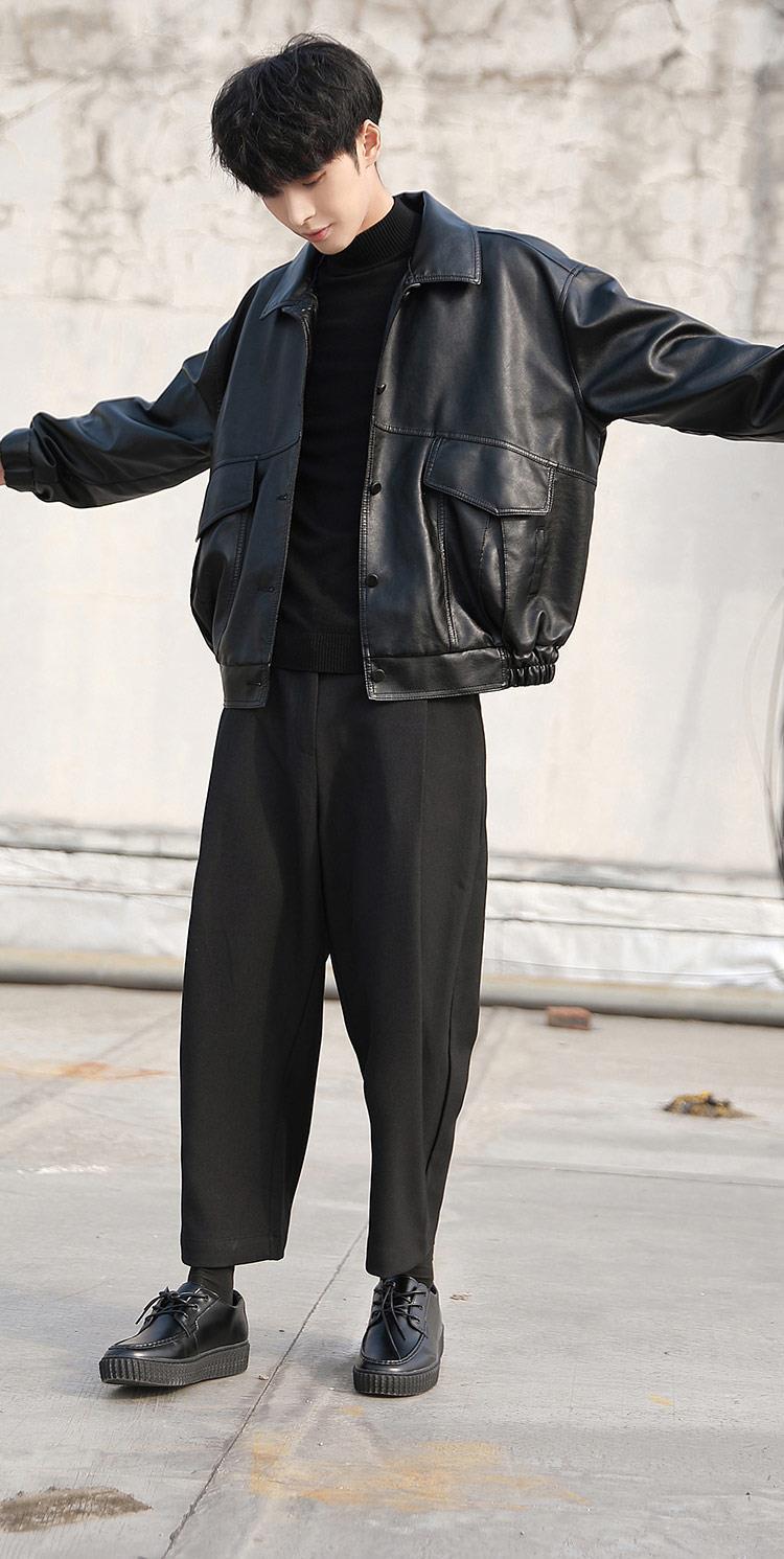 한국 스타일 유행 잘 생긴 느슨한 가죽 자켓 남자 바이커 세트 비행사 가죽 자켓 봄과 가을 새로운 학생 코트 트렌디 브랜드스토어 가기