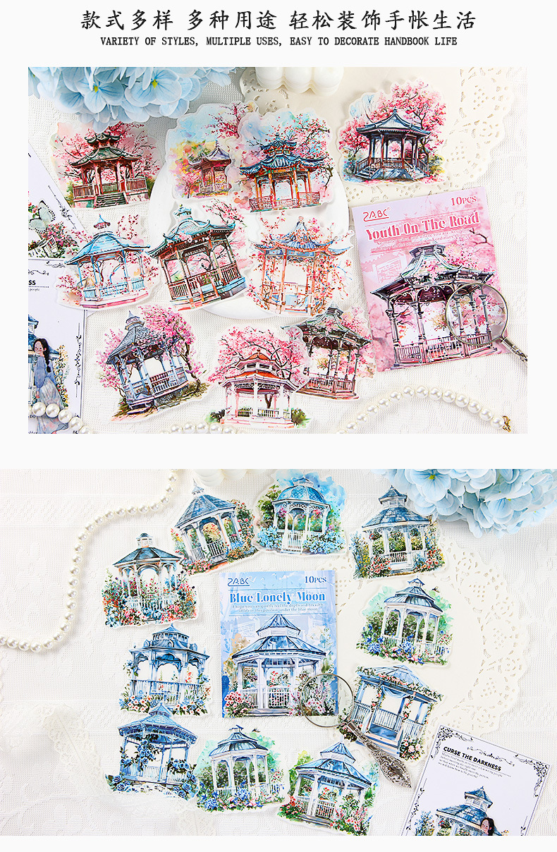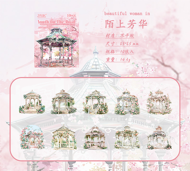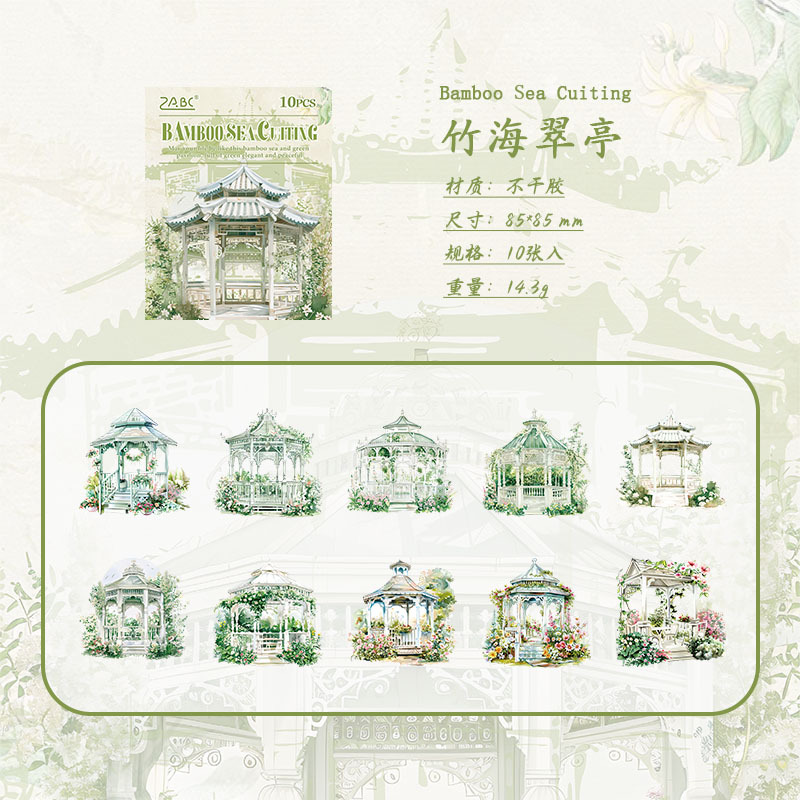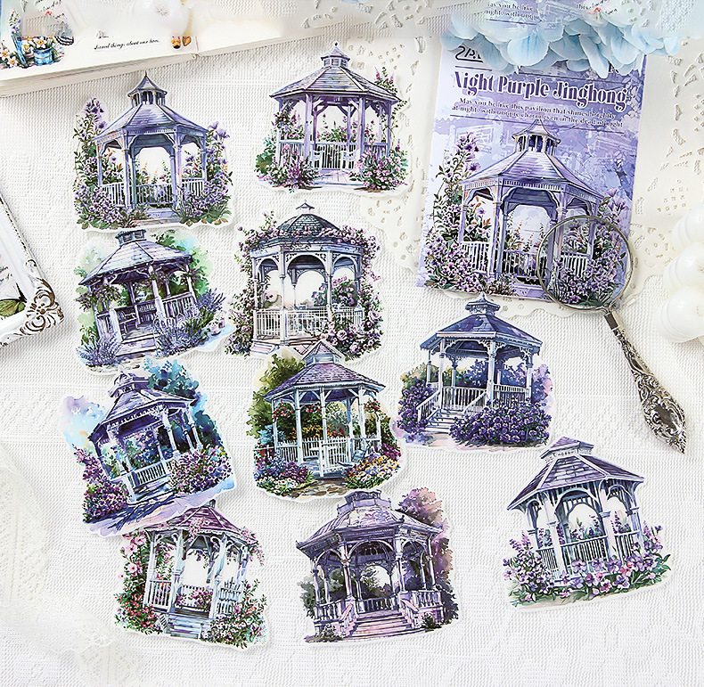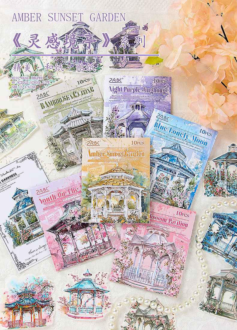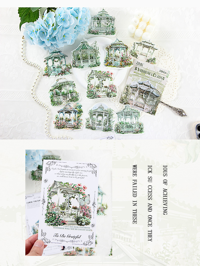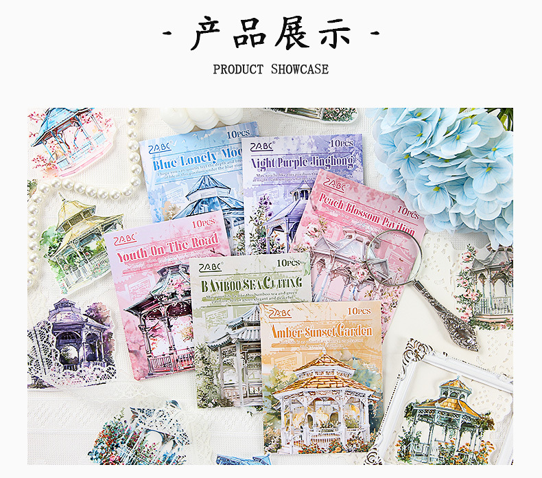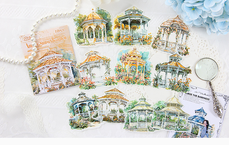 Jingting에서 영감을 얻은 특수 오일 및 종이 스티커 국경 유럽 건축 수첩 재료 스티커 풍경 및 종이 스티커