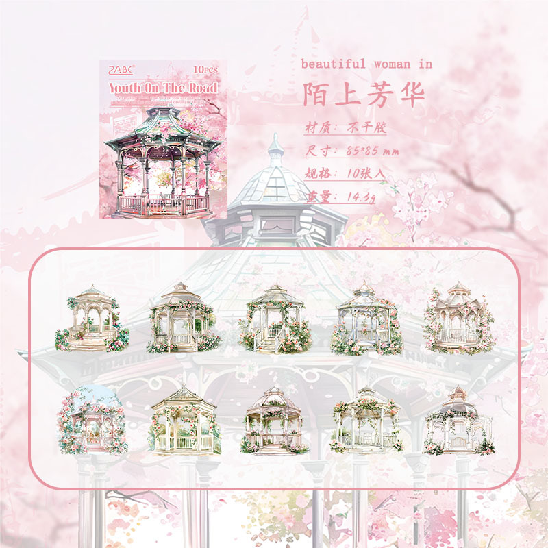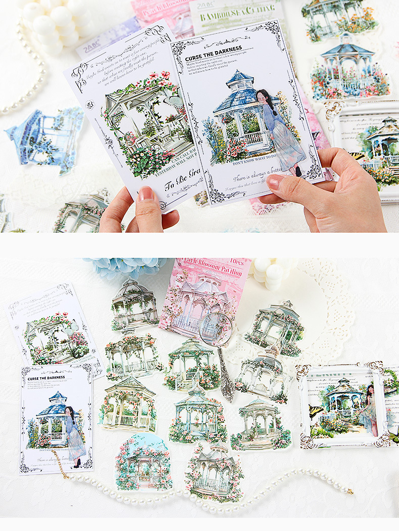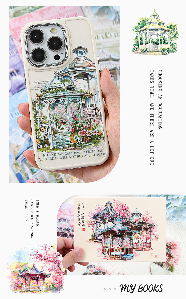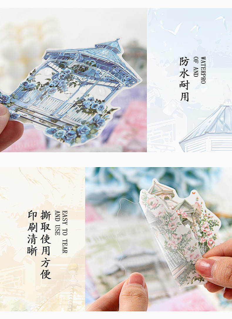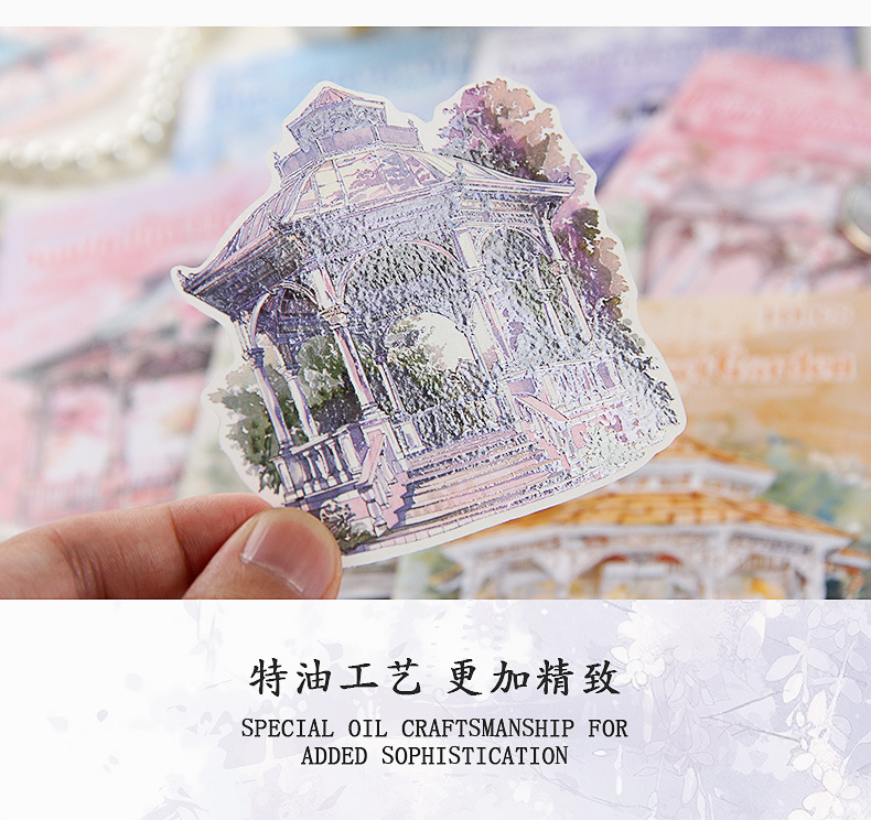 Jingting에서 영감을 얻은 특수 오일 및 종이 스티커 국경 유럽 건축 수첩 재료 스티커 풍경 및 종이 스티커스토어 가기