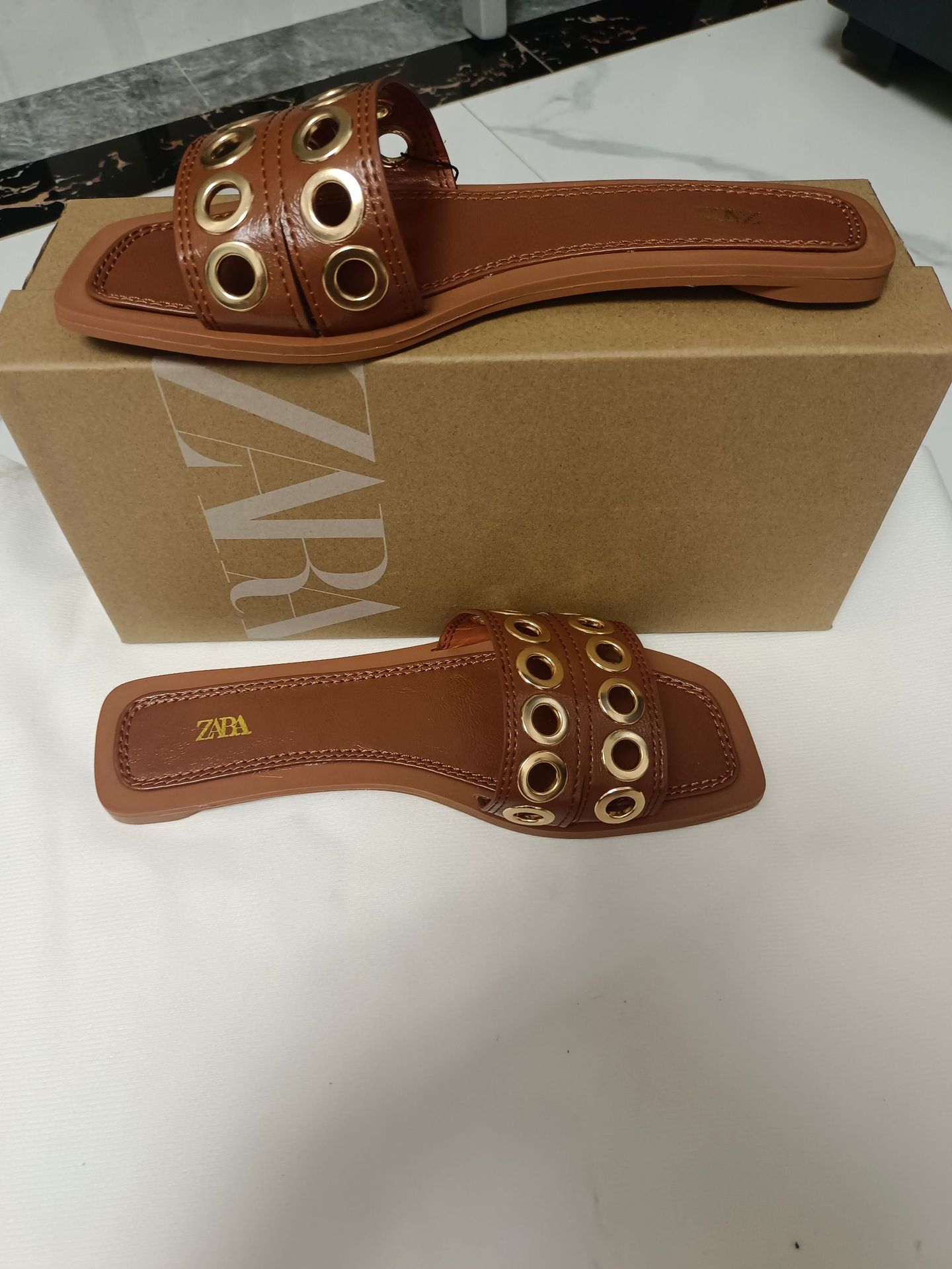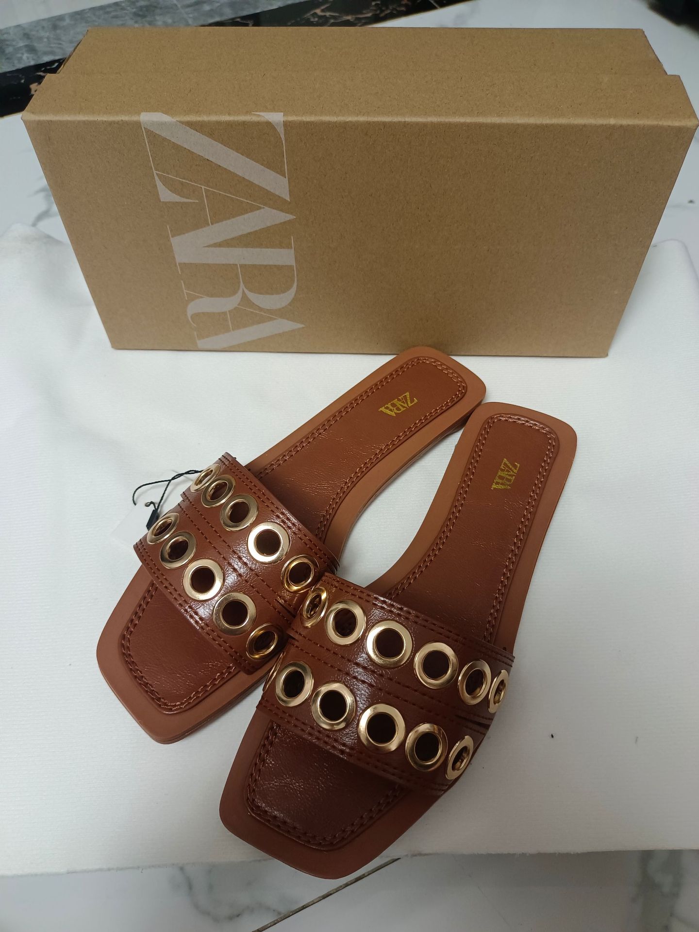 ZA2024 봄과 여름 새로운 여성 플랫 신발 버클 통기성 라운드 메탈 버클 패션 플랫 샌들스토어 가기