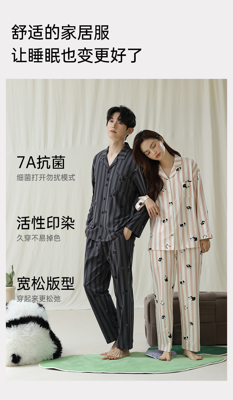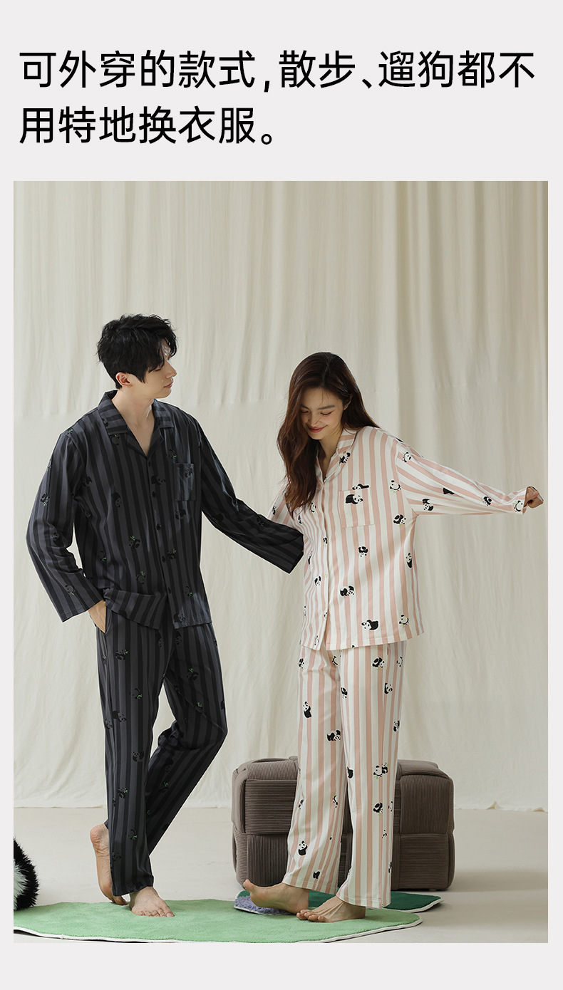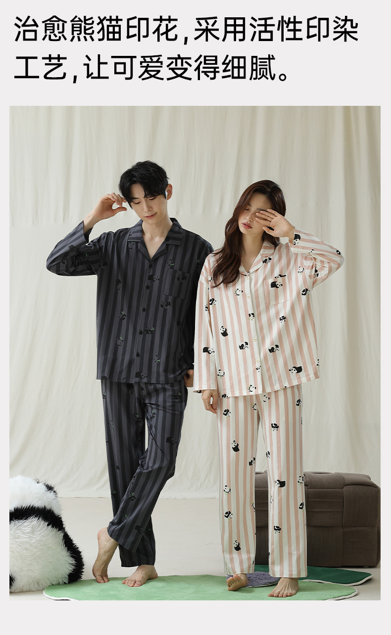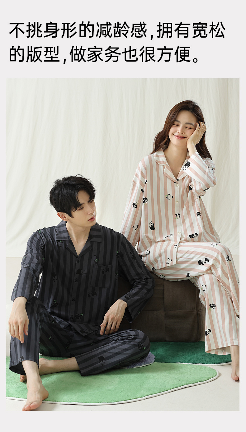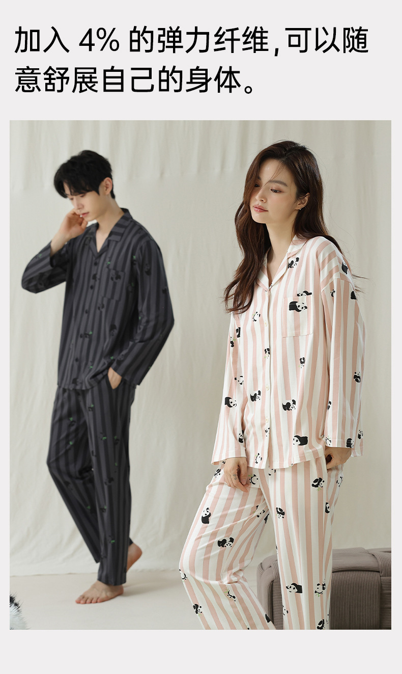[항균성 신장면] 가을 긴소매 면화 커플 잠옷 여성 봄 · 가을 줄무늬 판다 남성 잠옷 홈옷