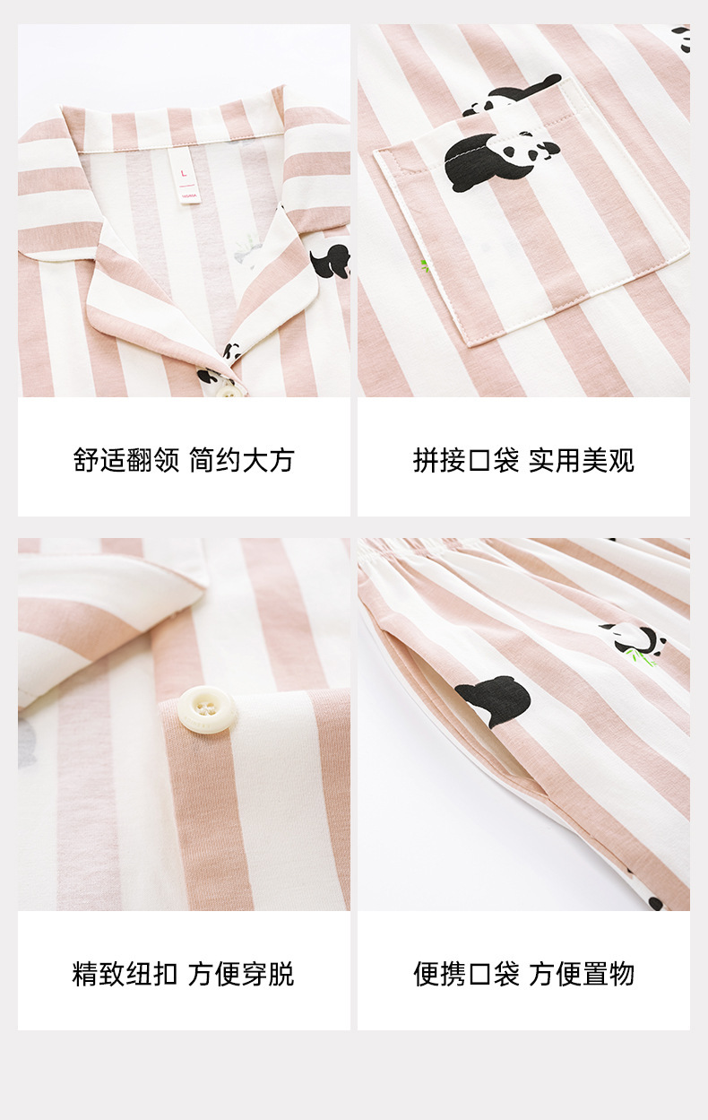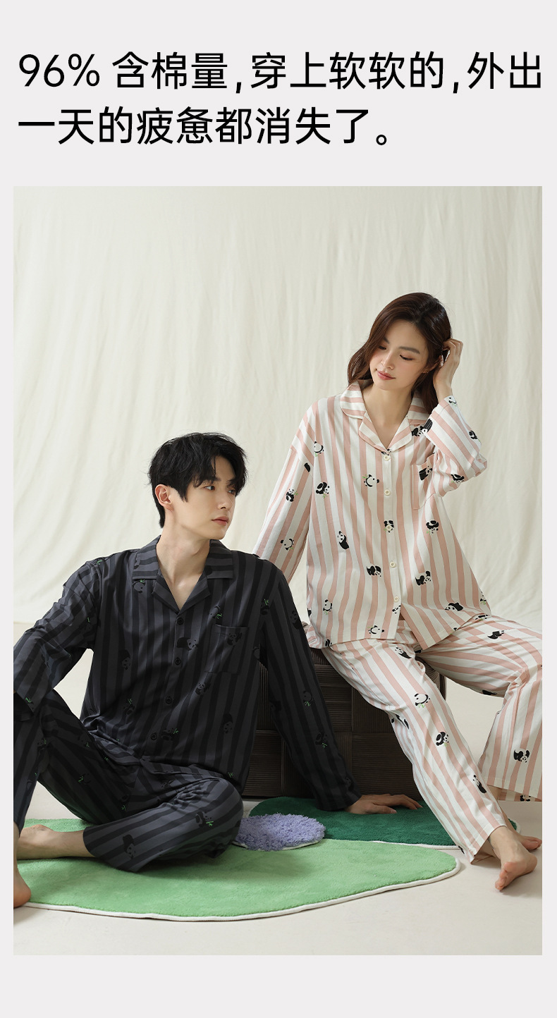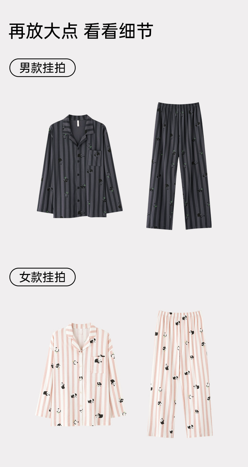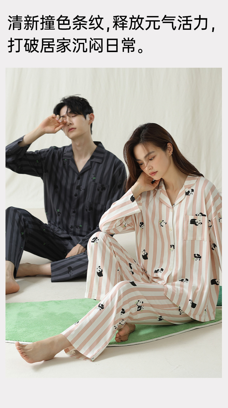 [항균성 신장면] 가을 긴소매 면화 커플 잠옷 여성 봄 · 가을 줄무늬 판다 남성 잠옷 홈옷