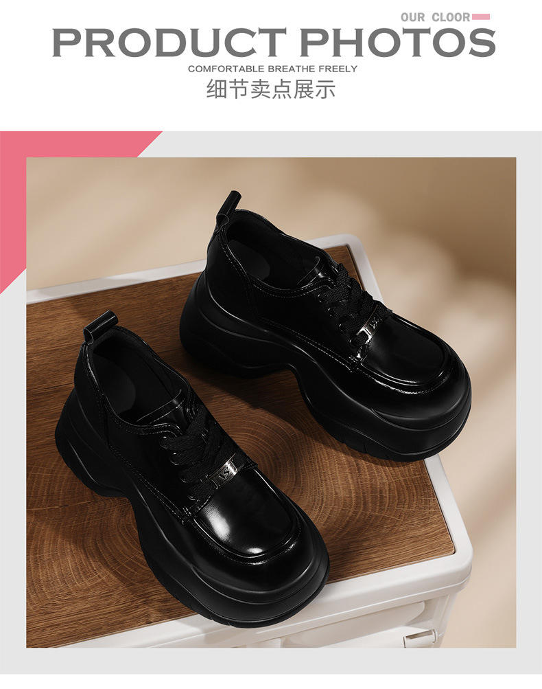 여성용 두꺼운 밑창 로퍼, 페이턴트 가죽, 2025 봄 가을 신상 하이힐, 영국 스타일 싱글 슈즈, 블랙 여름 소형 가죽 슈즈, 플랫폼 슈즈