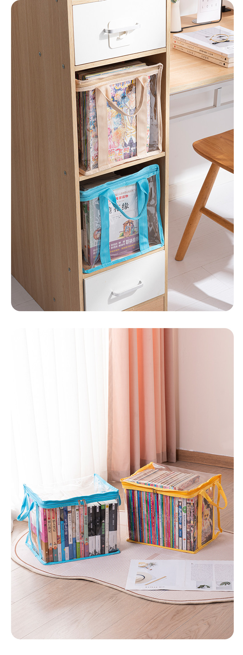책 저장 상자 책 상자 학생 책 저장 가방 접이식 투명 방진 저장 상자 책 보관 상자