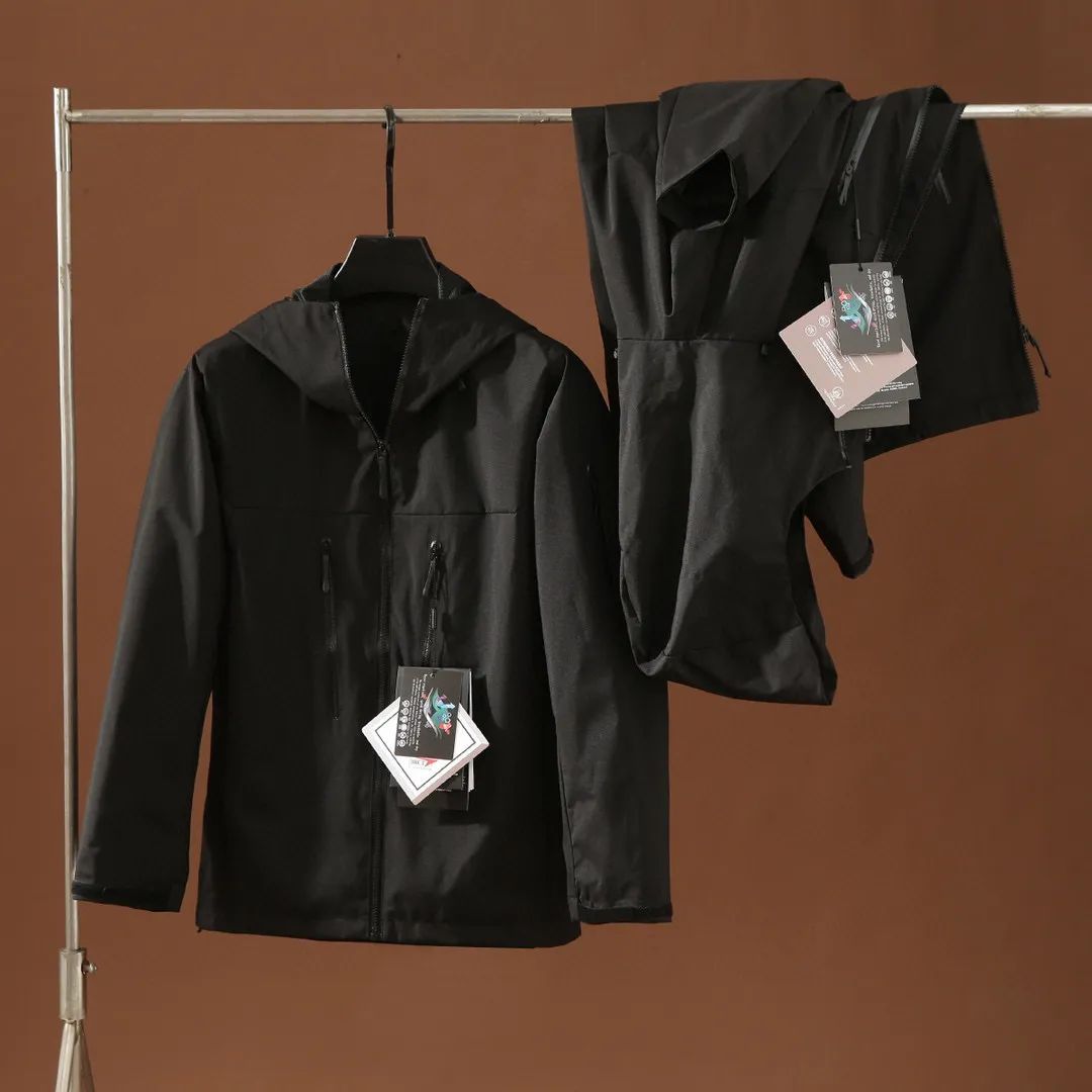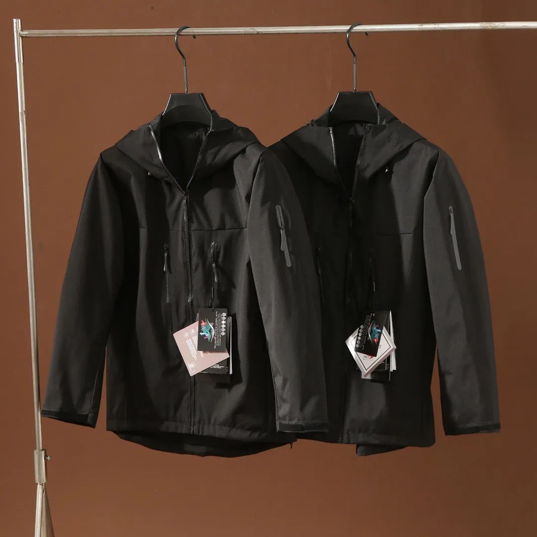 컬. 홈 야외 높은. 커플의 소프트 쉘 재킷 하이 스트리트 봄과 가을 후드 블랙 재킷 트렌디